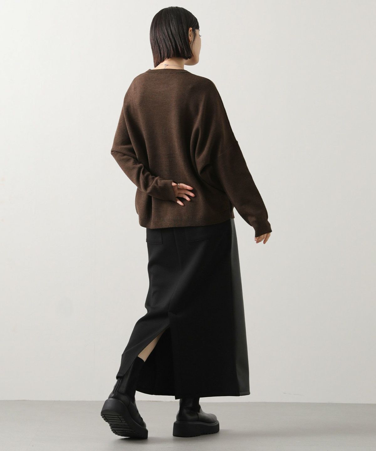シャツドッキングクルーネックニット