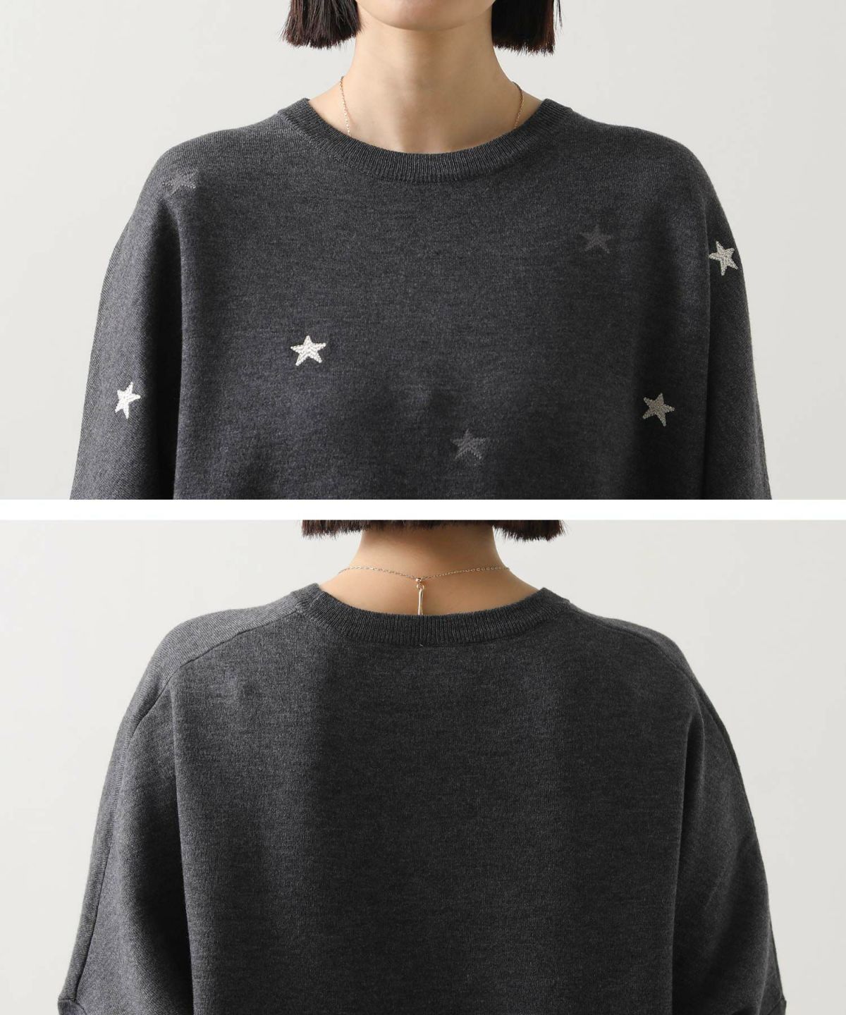 星刺繍スムースクルーネックプルオーバー