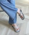 交差することでホールド感と歩きやすさを実現します。かかとは踏める仕様でサンダル感覚でも着用可能。安定感のある丸ヒールはデザインポイントだけでなく機能性も◎