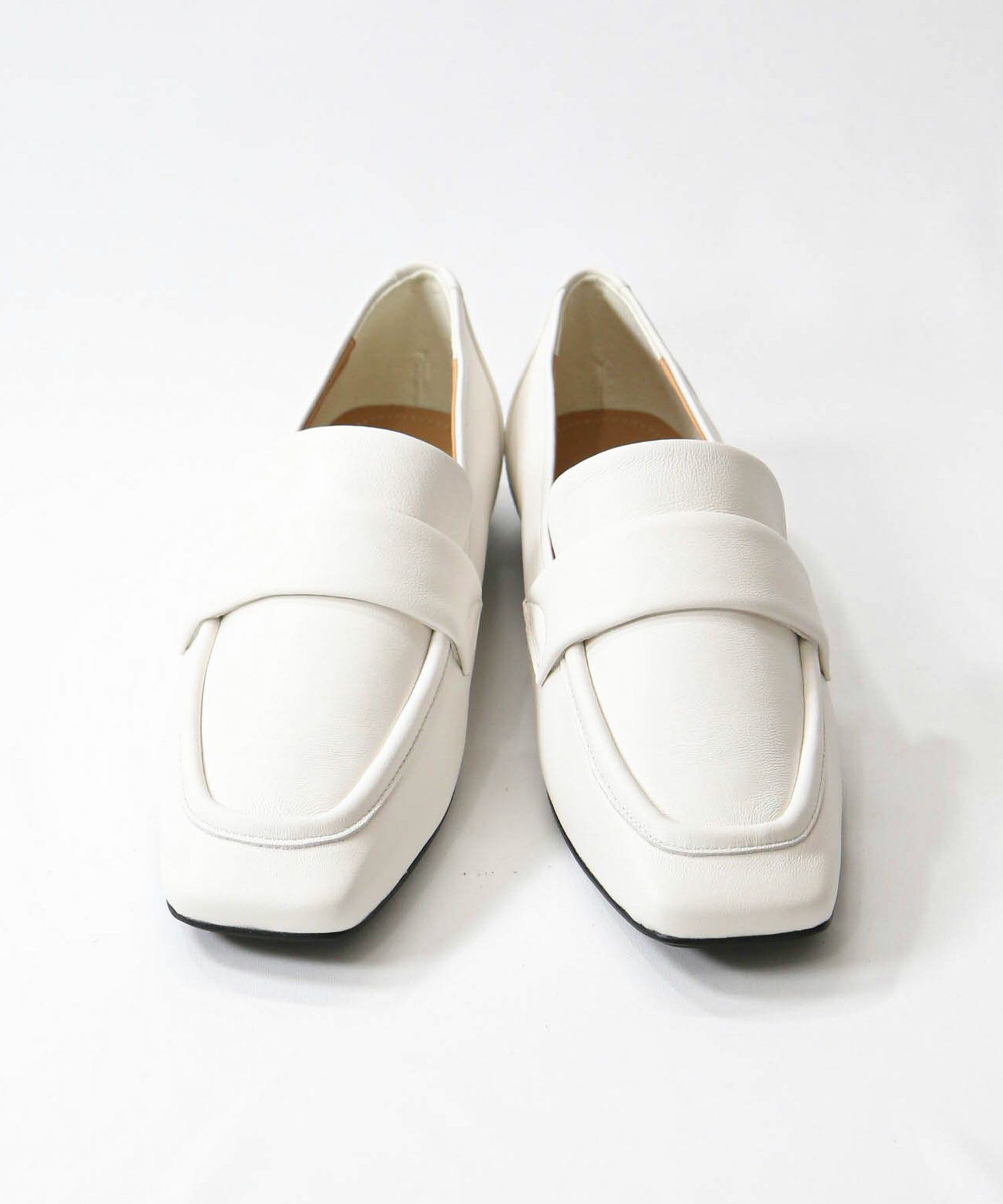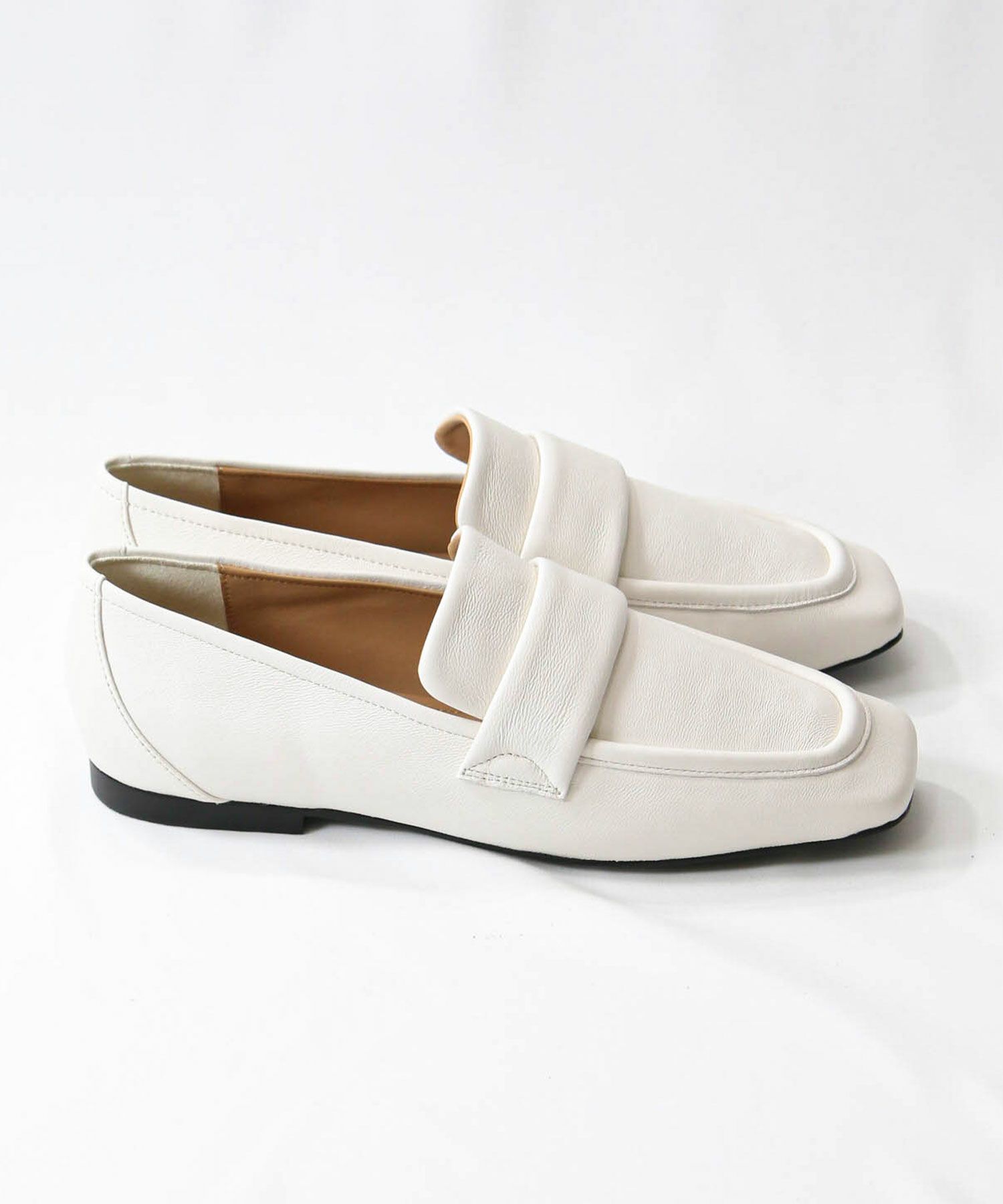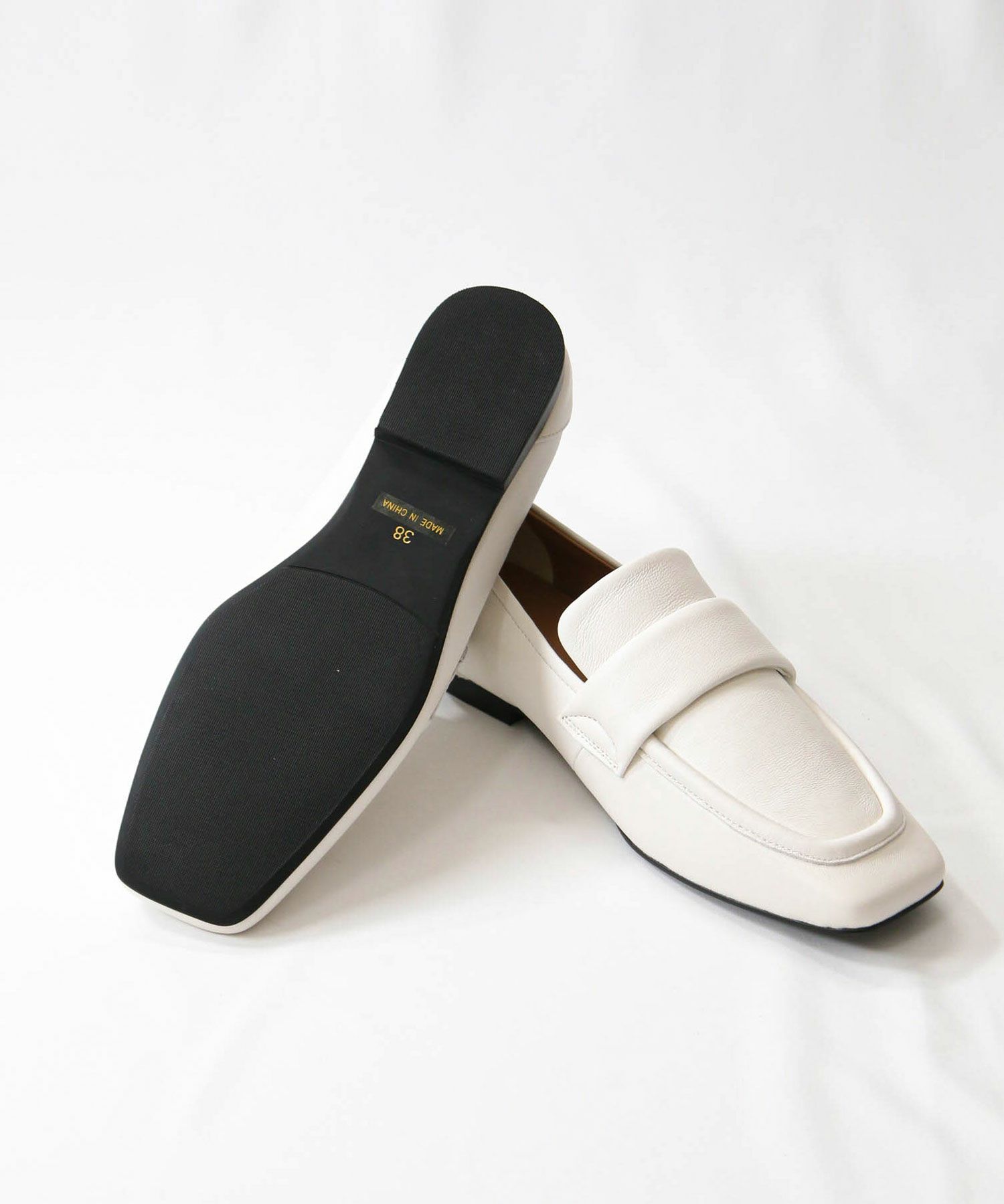 洗練されたシンプルなデザインが目を惹くフラットローファー。