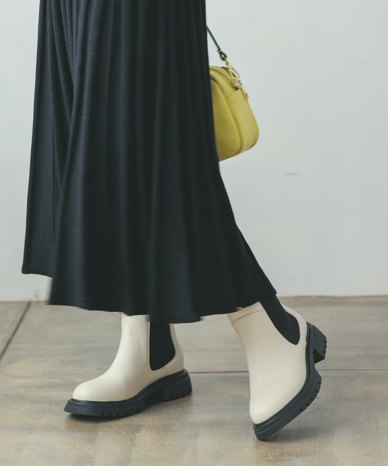 今シーズンも注目のサイドゴアブーツ。定番のブラックと新トレンド感のあるアイボリーの2色展開です。