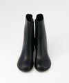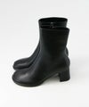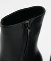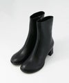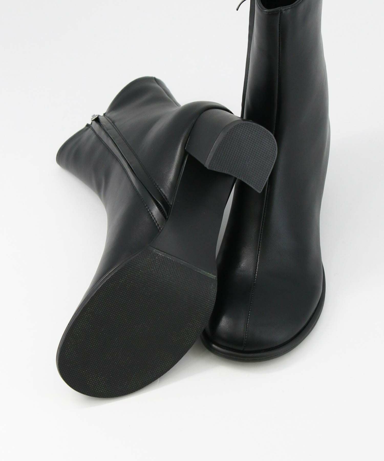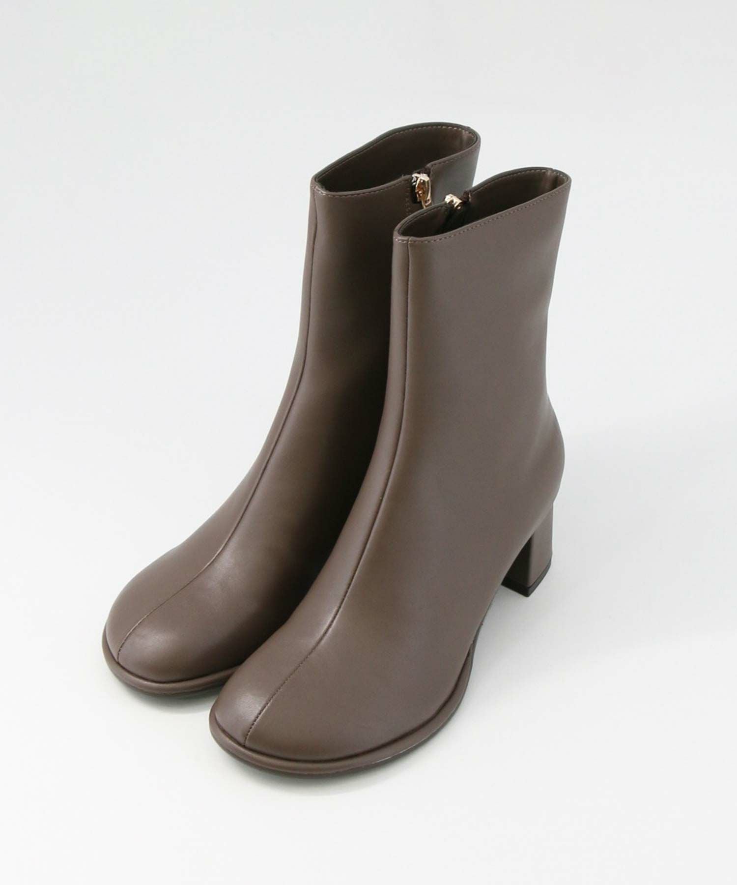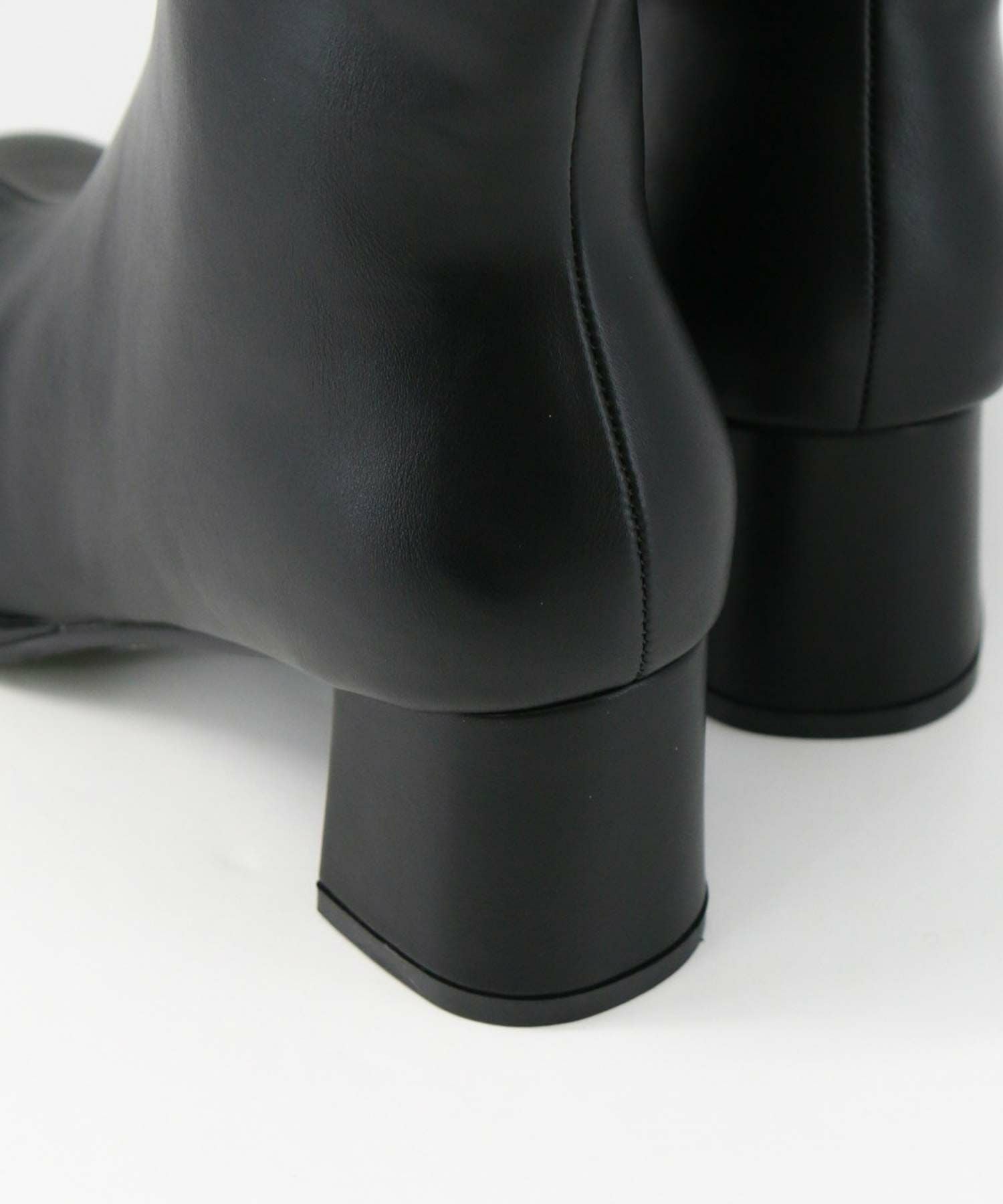 ピース付きのデザインが可愛いオブリークトゥショートブーツ。