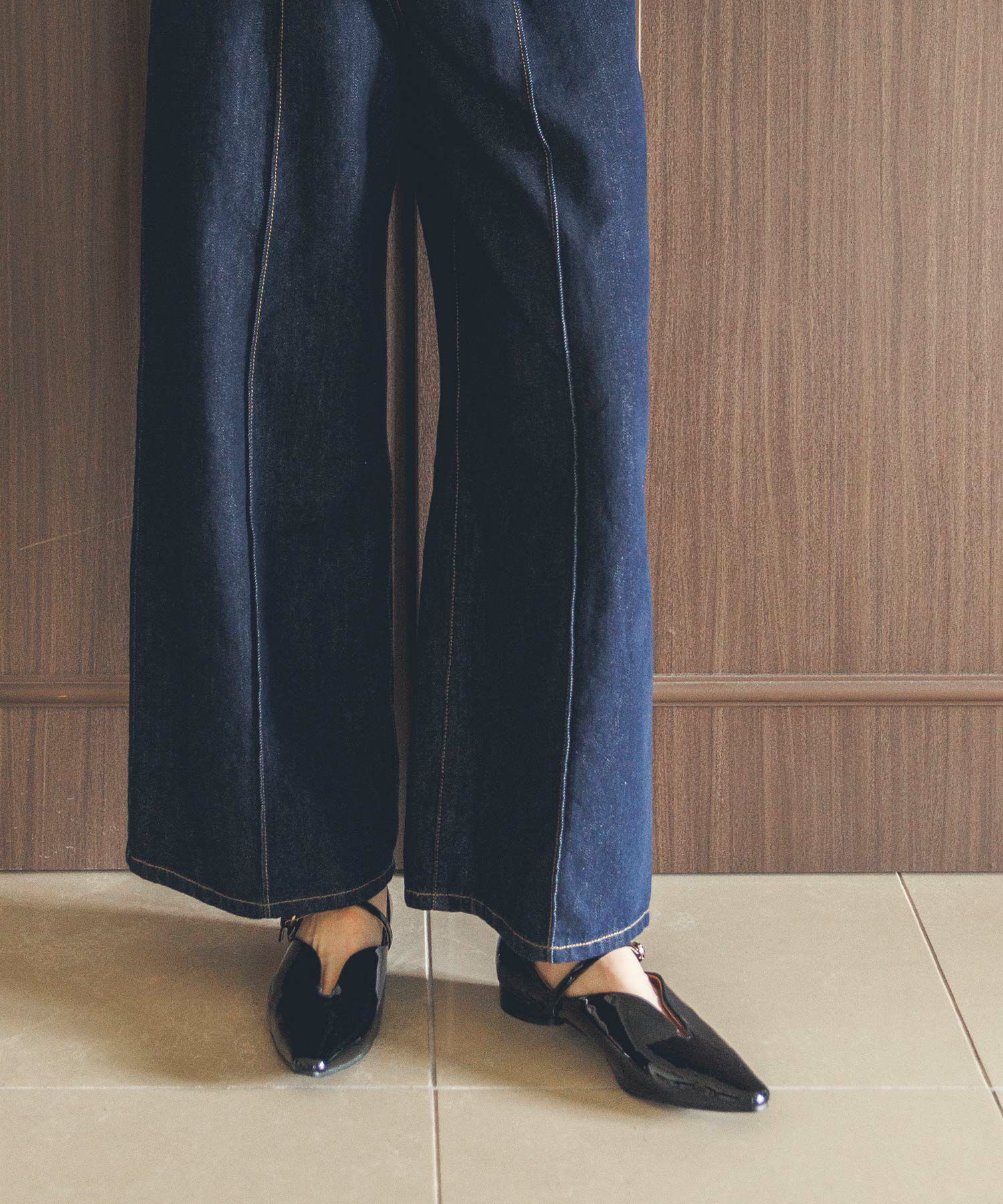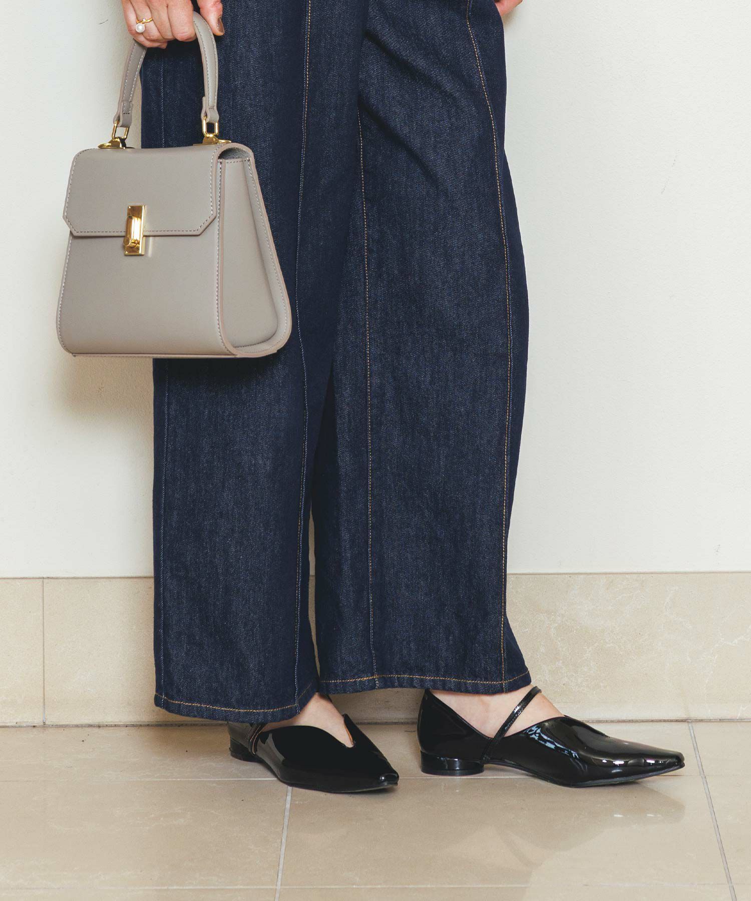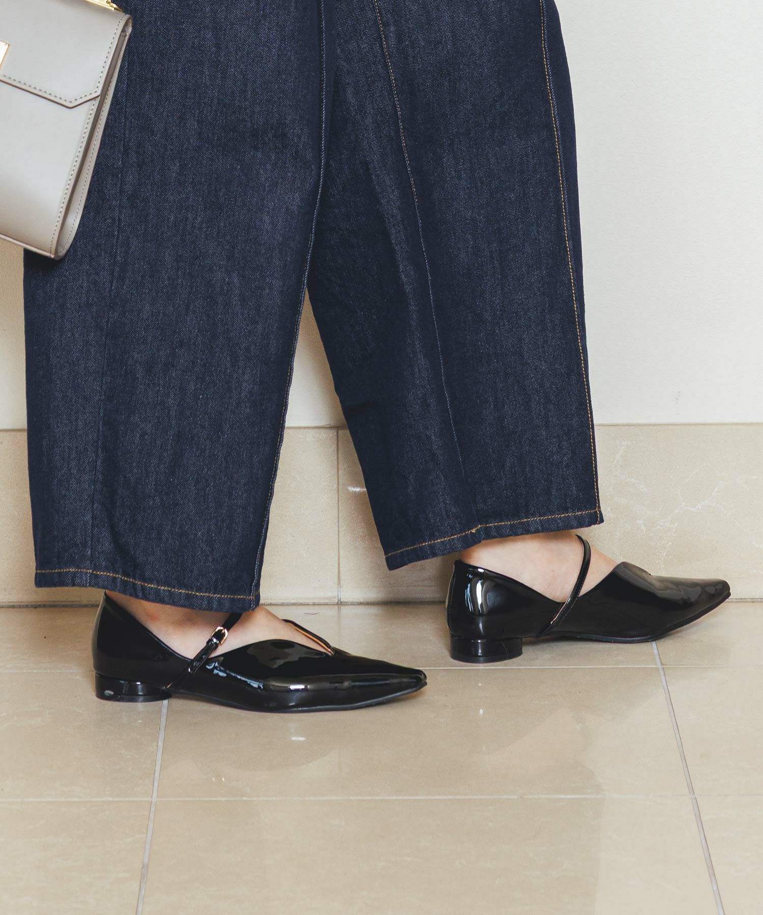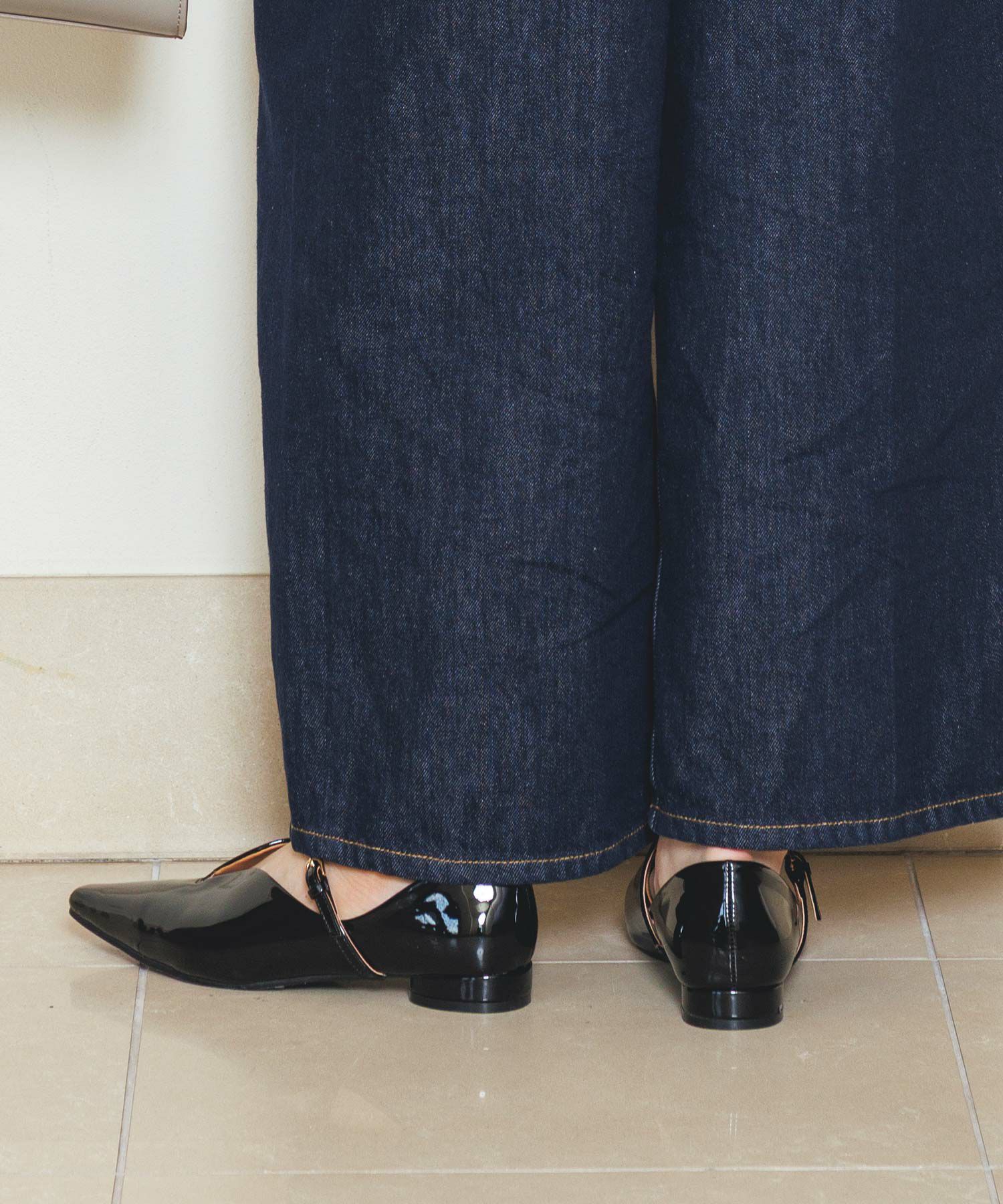 トゥが細めなのでフラットでもすっきりしたバランスになります。