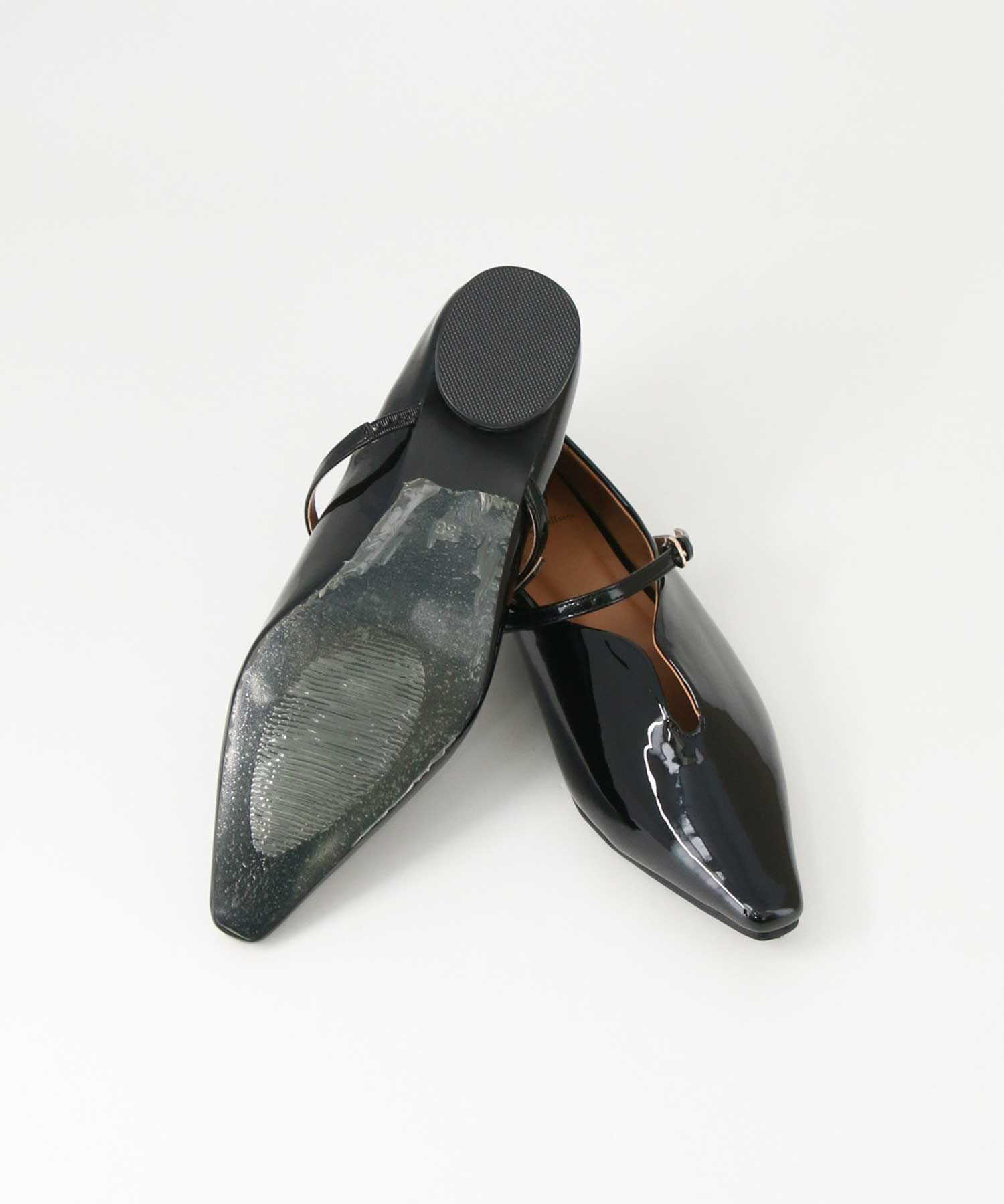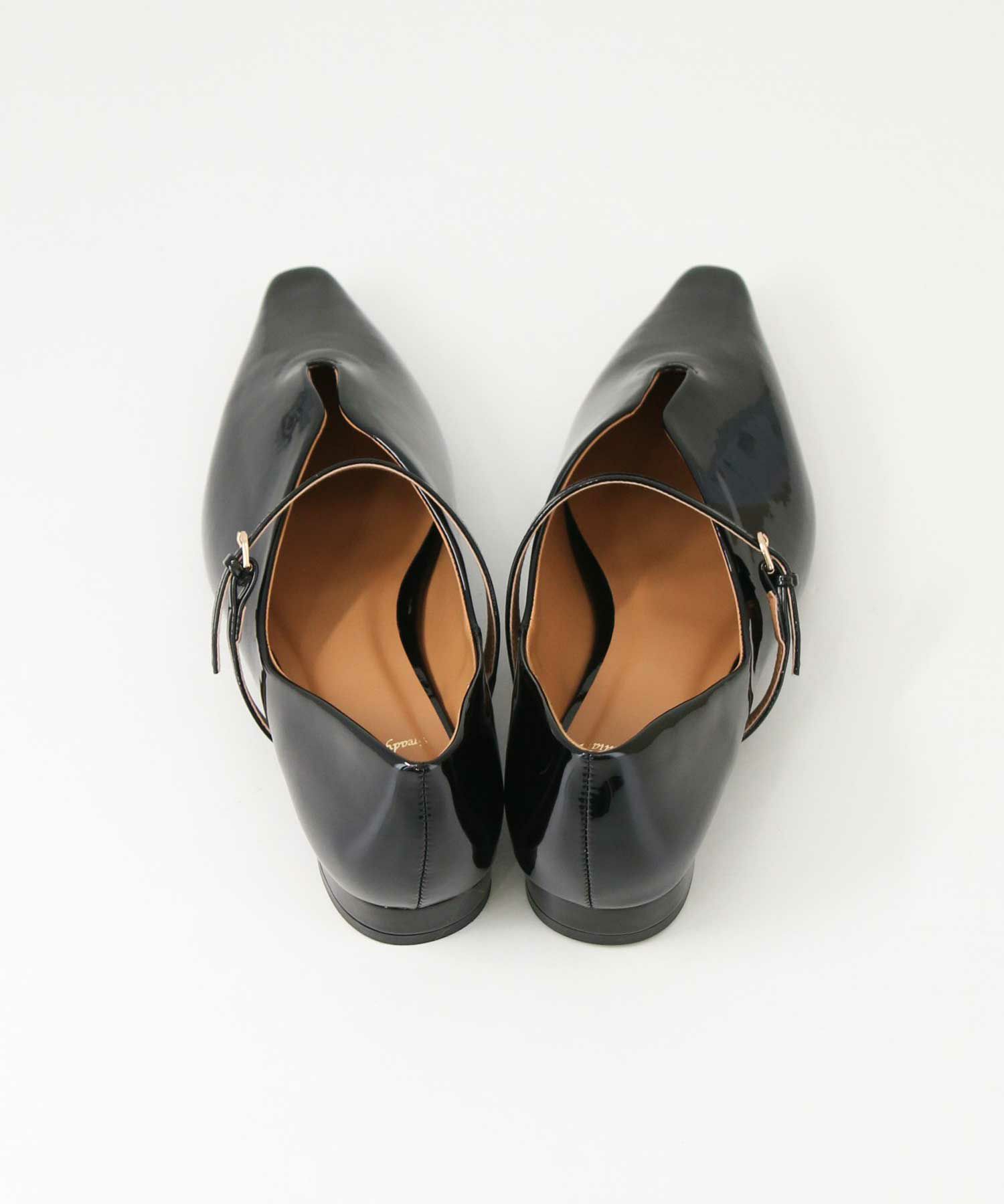 エナメル素材に、甲のカッティングが足をすっきりキレイに見せてくれるパンプス。