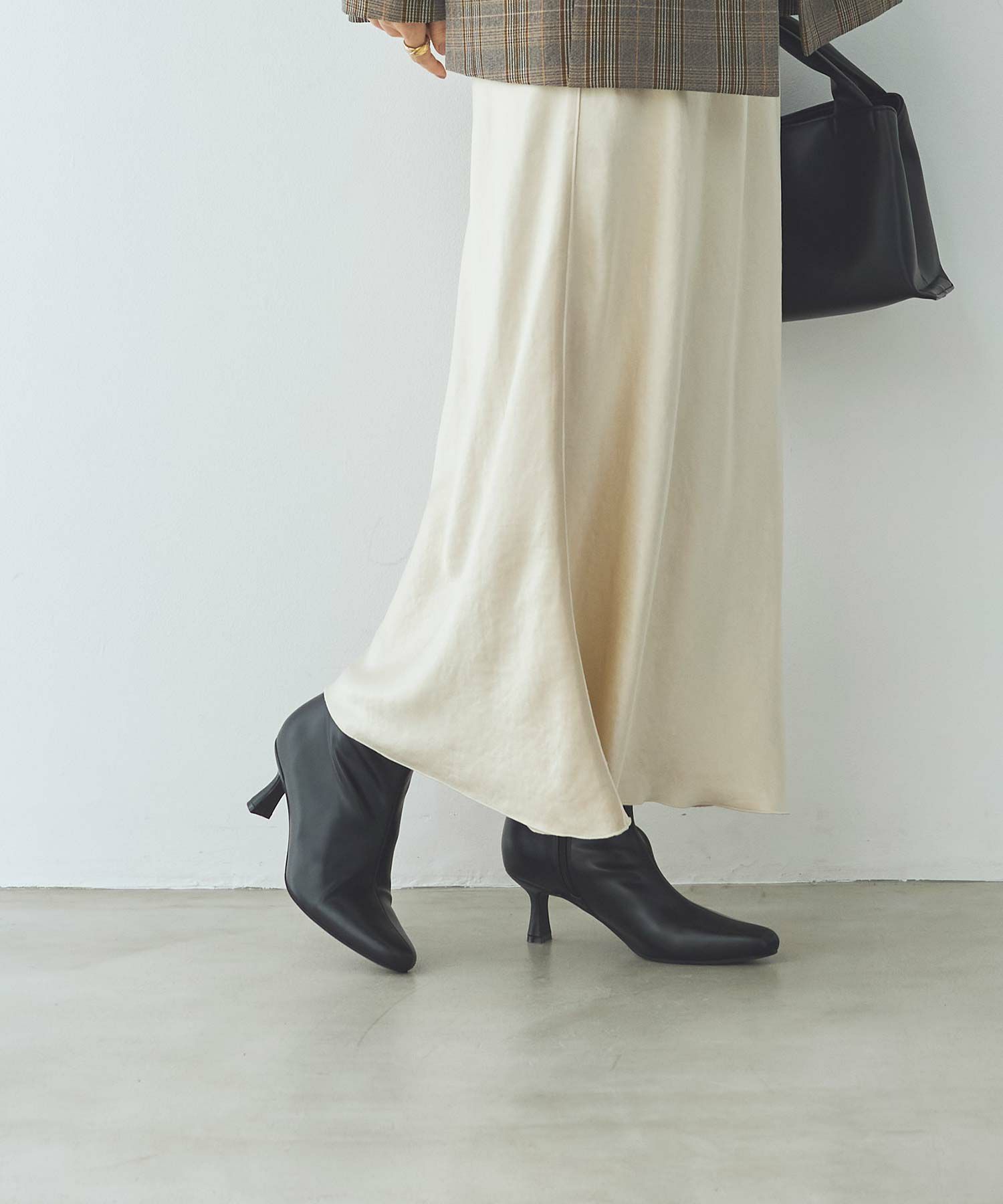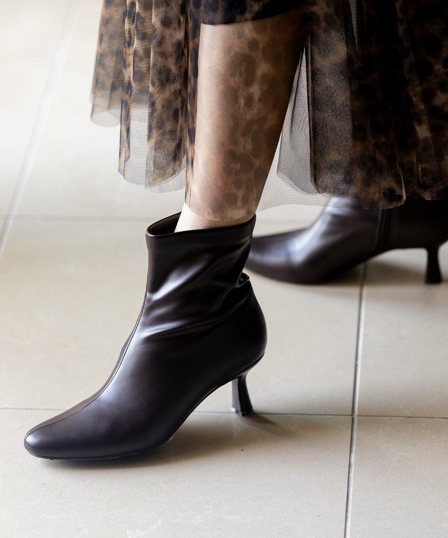 すっきりとしたトゥのラインと、細身の筒がエレガントな印象のショートブーツ。