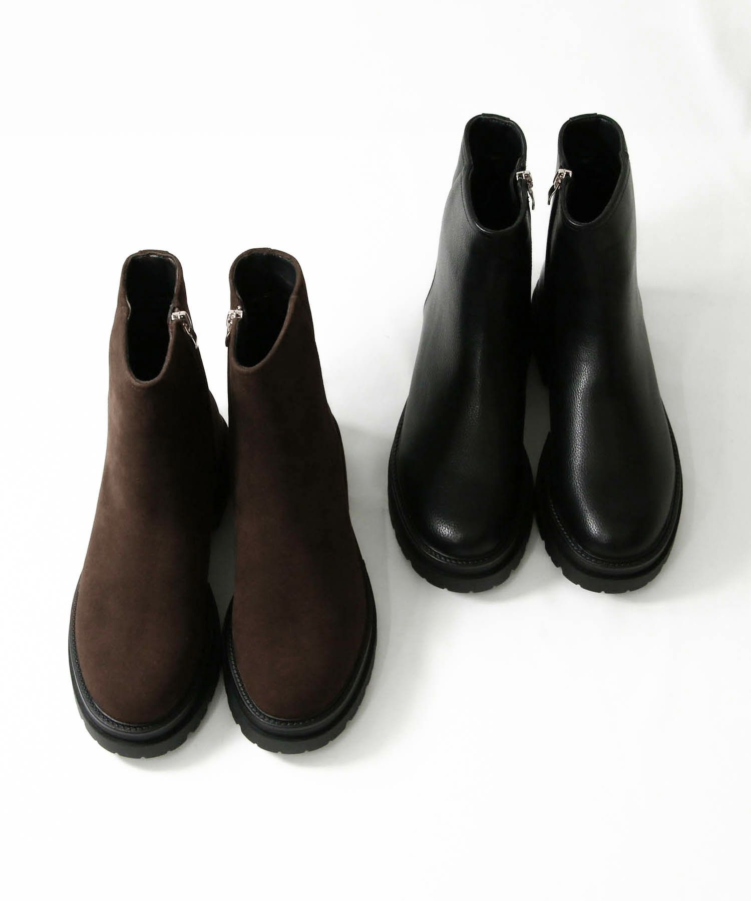 厚みを持たせたトラックソールデザインで、今年らしいボリューム感のある見た目のショートブーツ。