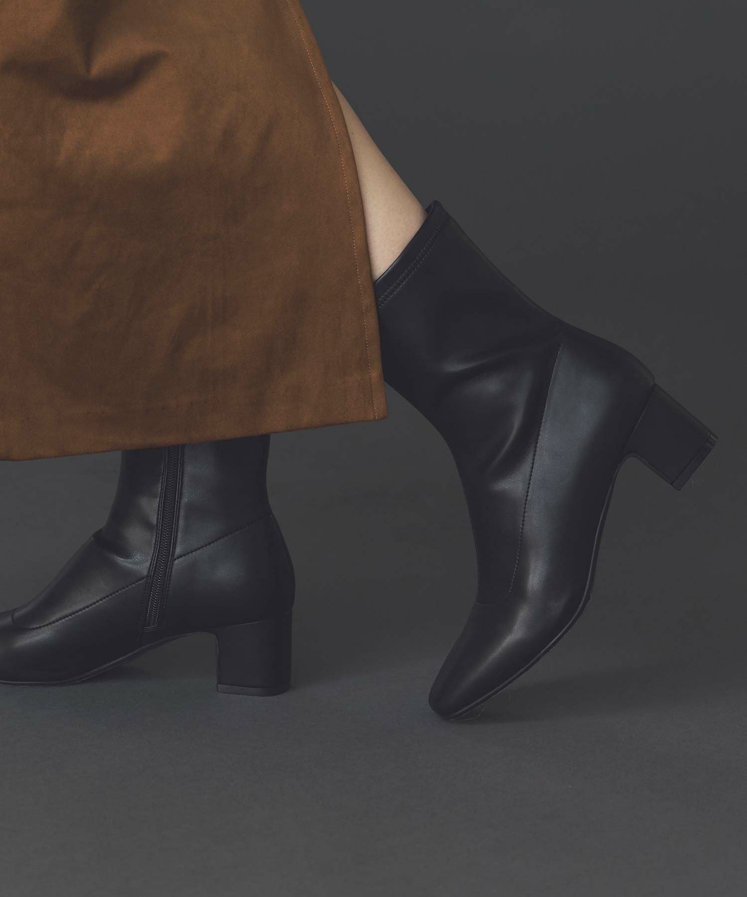 程よいボリュームのチャンキーヒールとストレッチを効かせたフィット感のある細身の筒周りが、合わせやすさと履きやすさを両立したショートブーツ。