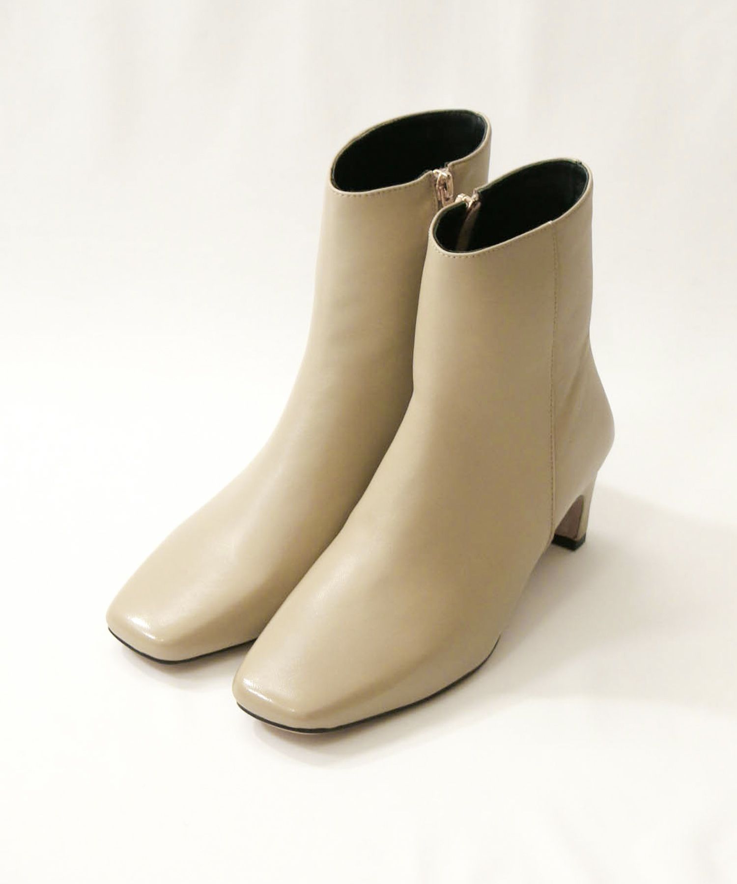 スクエアトゥと細めの筒回りがすっきりとしたバランスで、女性らしい足元が叶います。