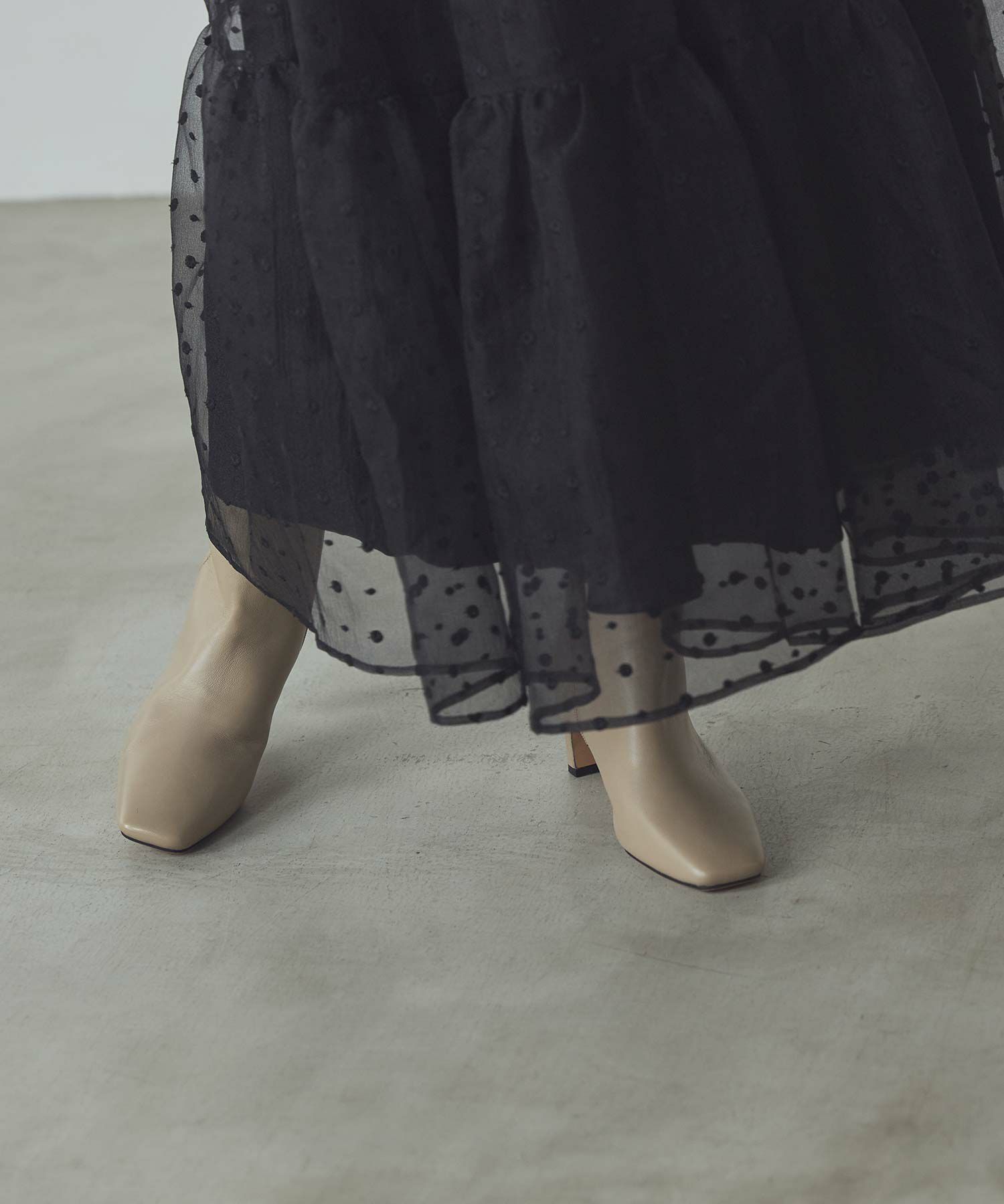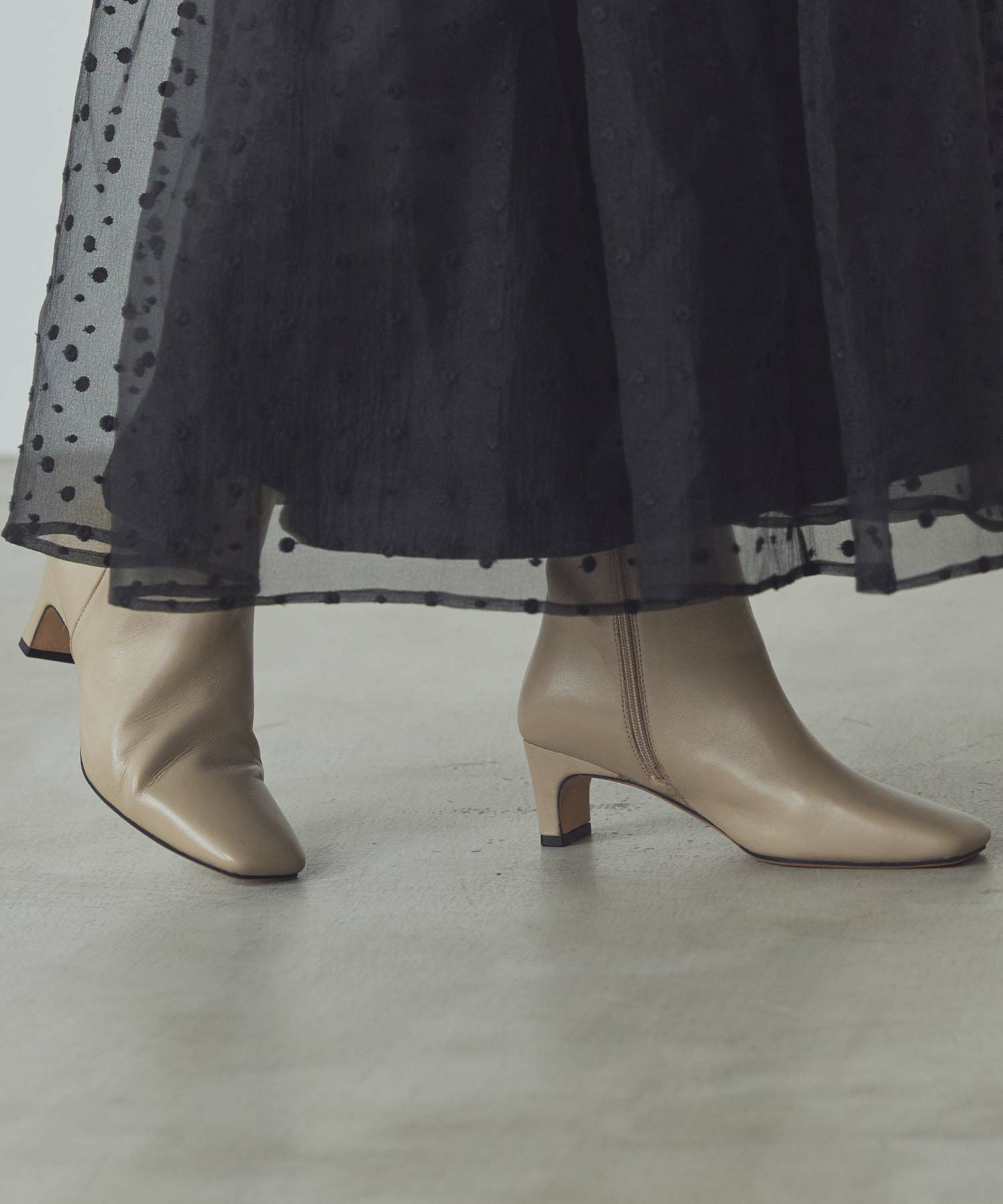 スクエアトゥと細めの筒回りがすっきりとしたバランスで、女性らしい足元が叶います。