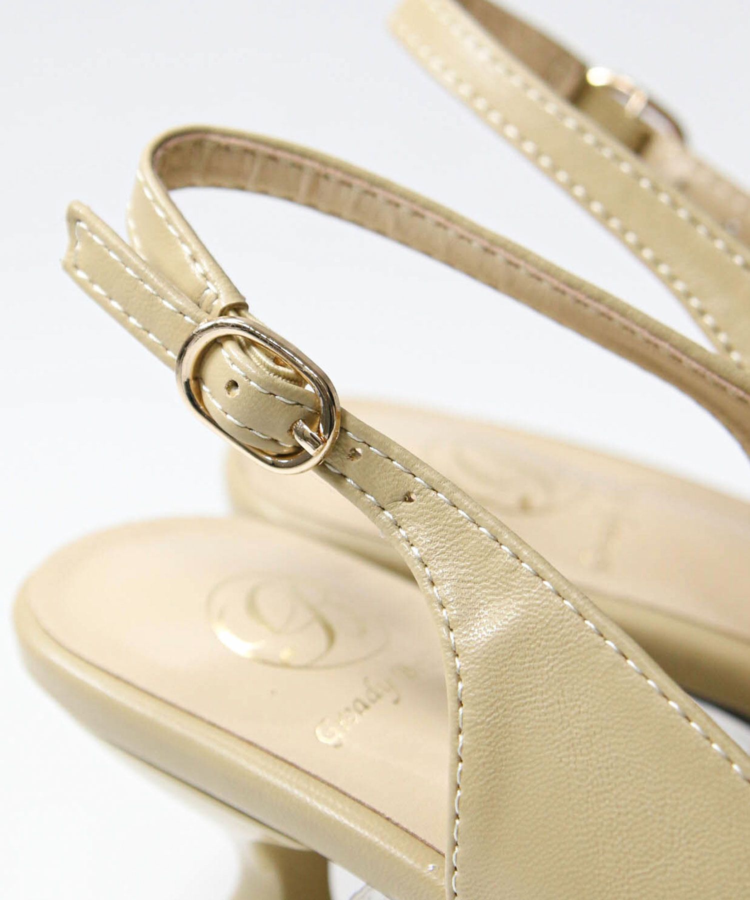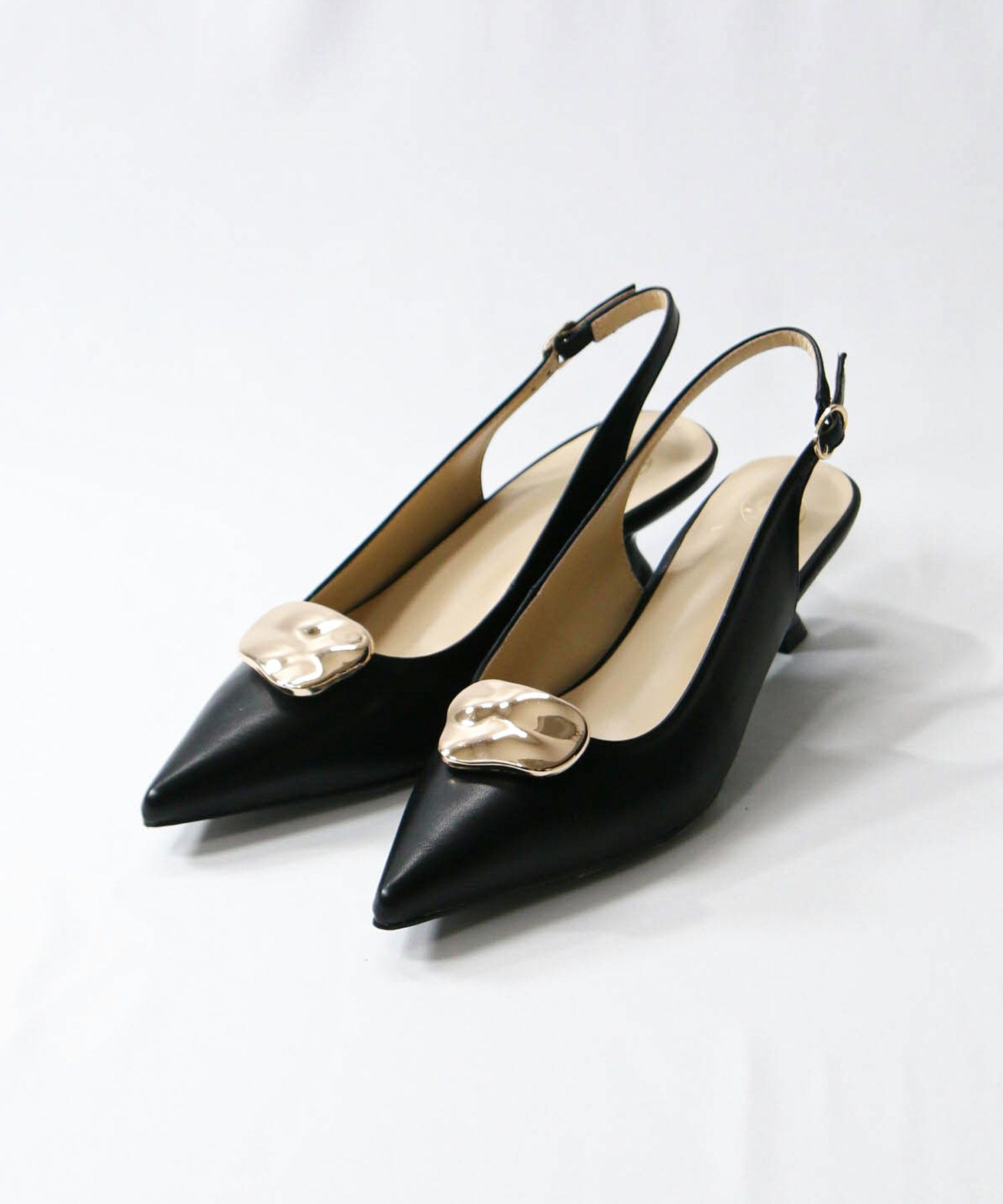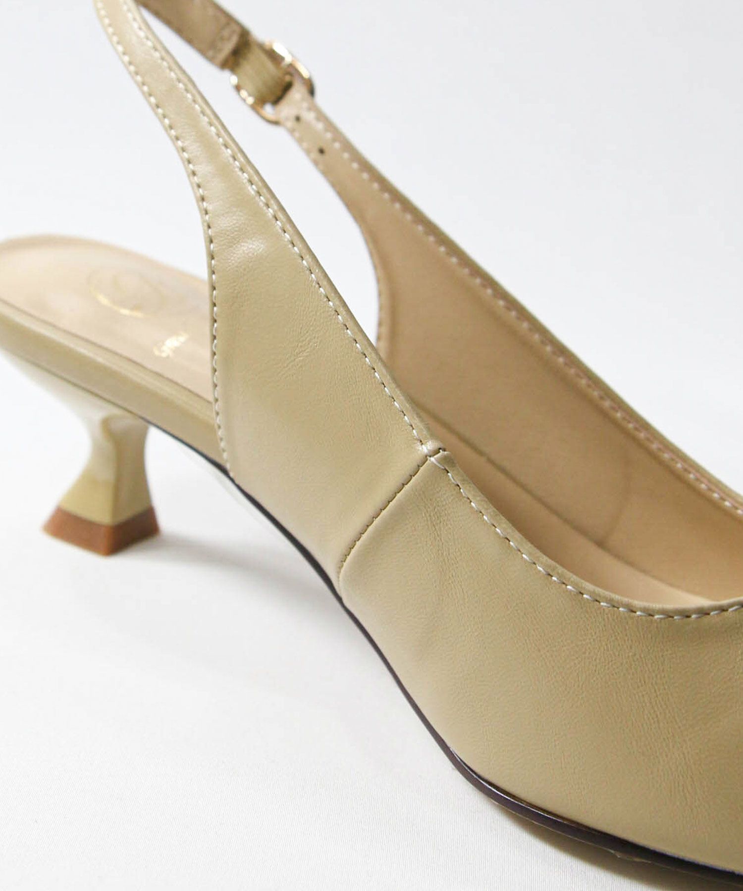 オフィスやオケージョンシーンに使いやすい、バックストラップのパンプス。