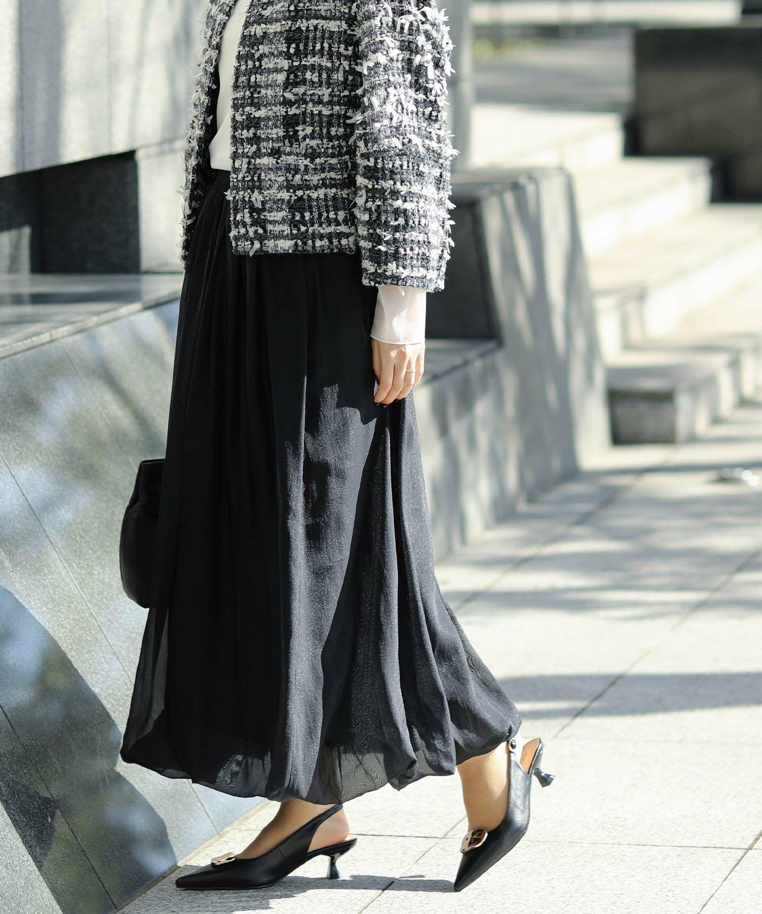細身のポインテッドトゥは、足を華奢に品よく見せてくれます。