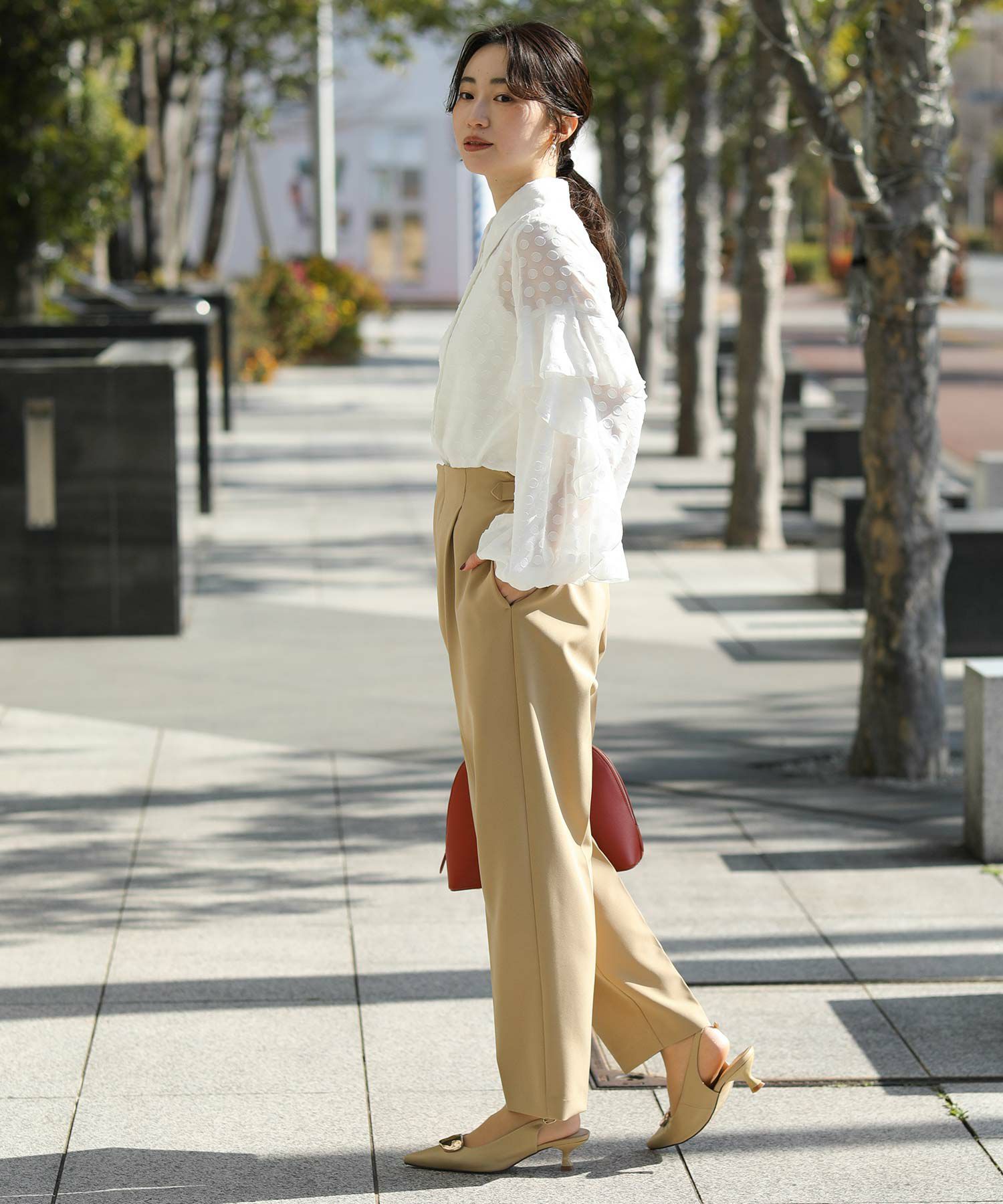 細身のポインテッドトゥは、足を華奢に品よく見せてくれます。