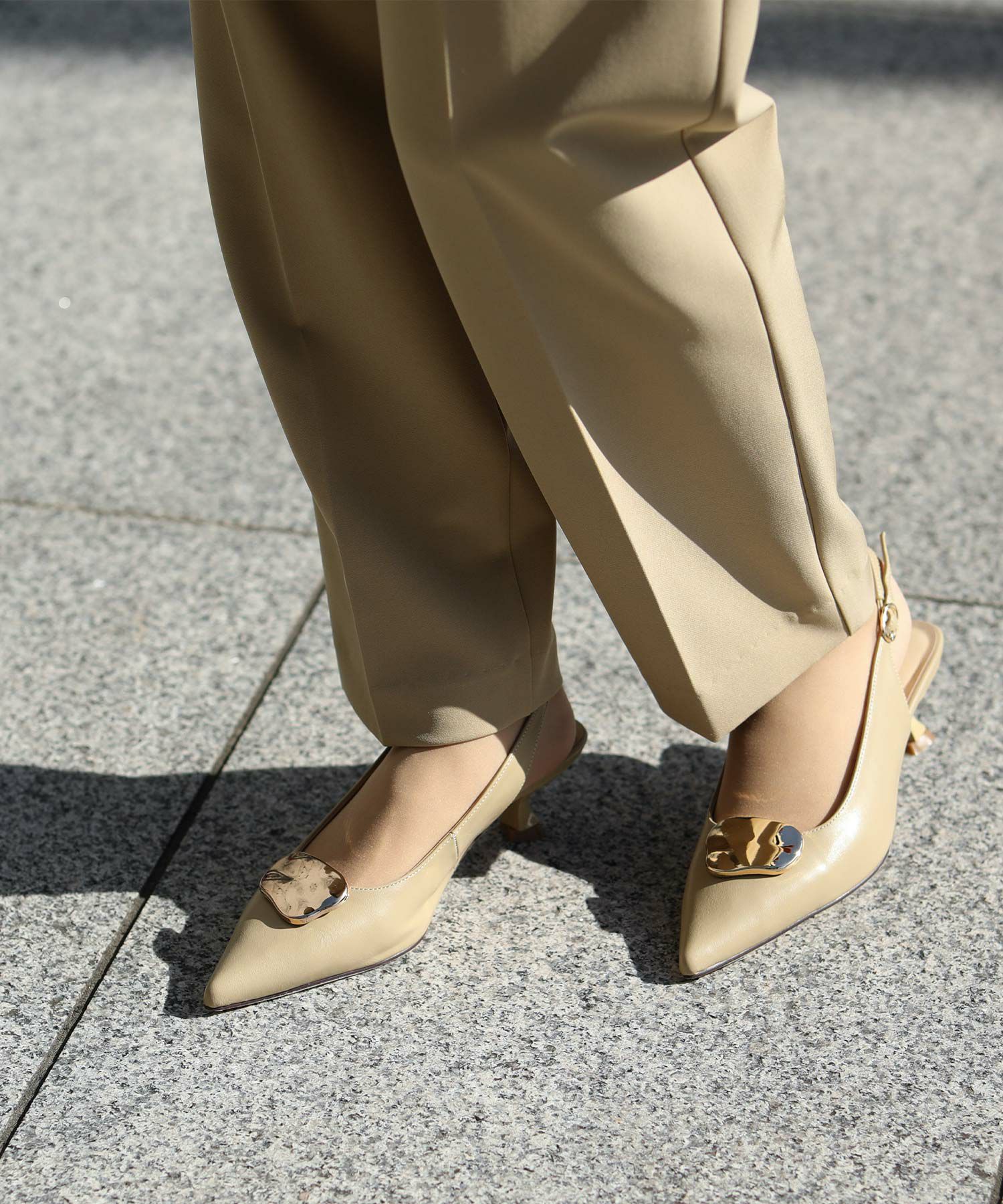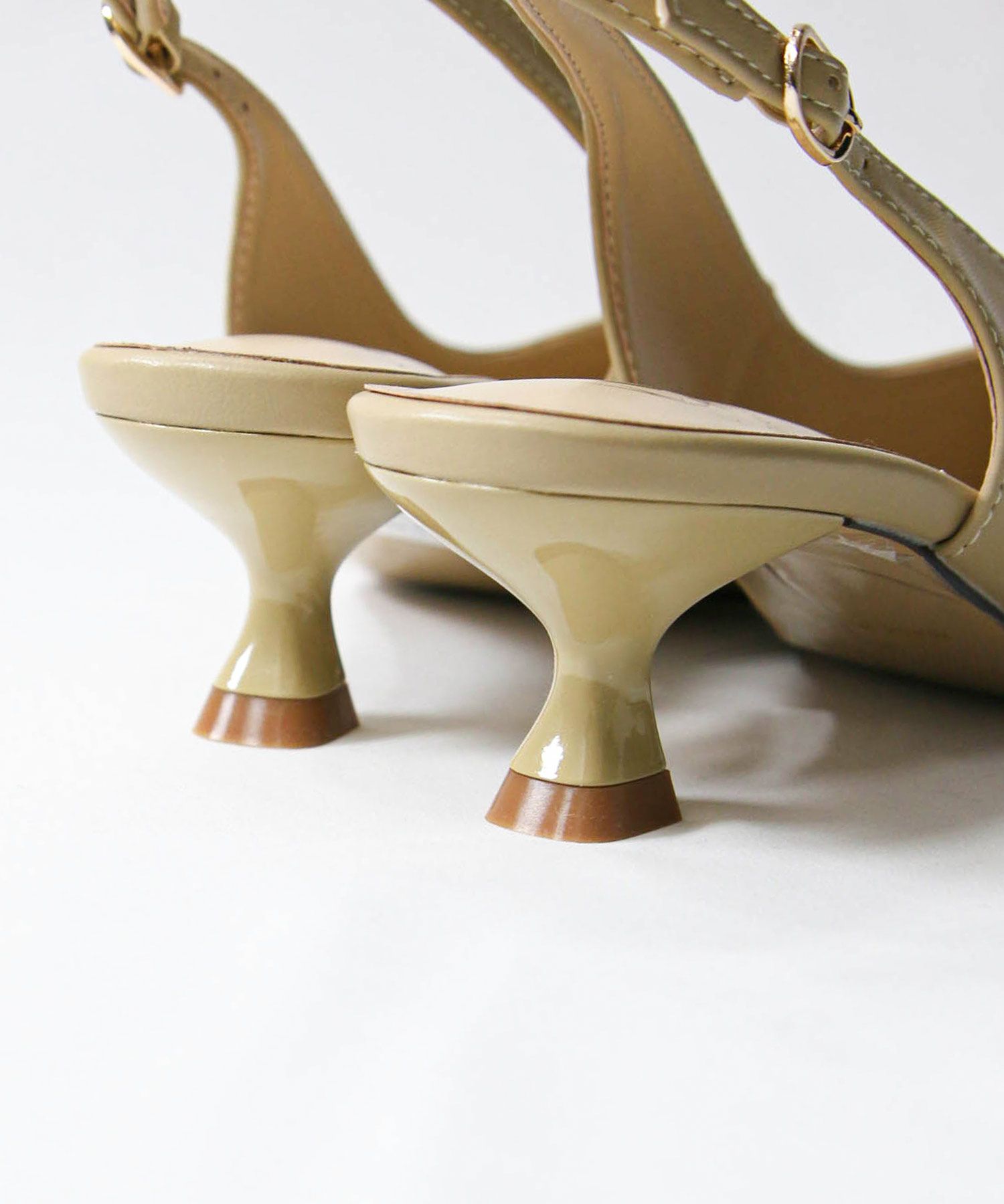 オフィスやオケージョンシーンに使いやすい、バックストラップのパンプス。