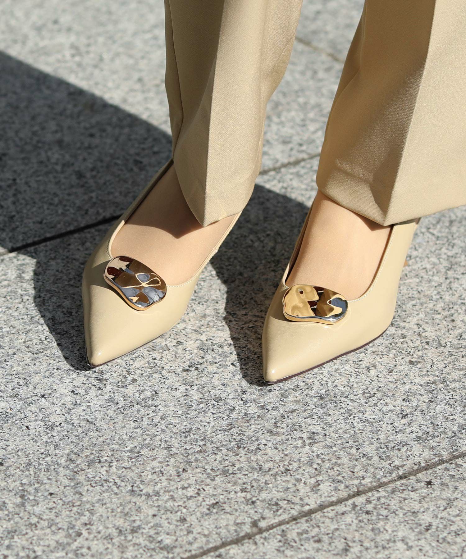 細身のポインテッドトゥは、足を華奢に品よく見せてくれます。