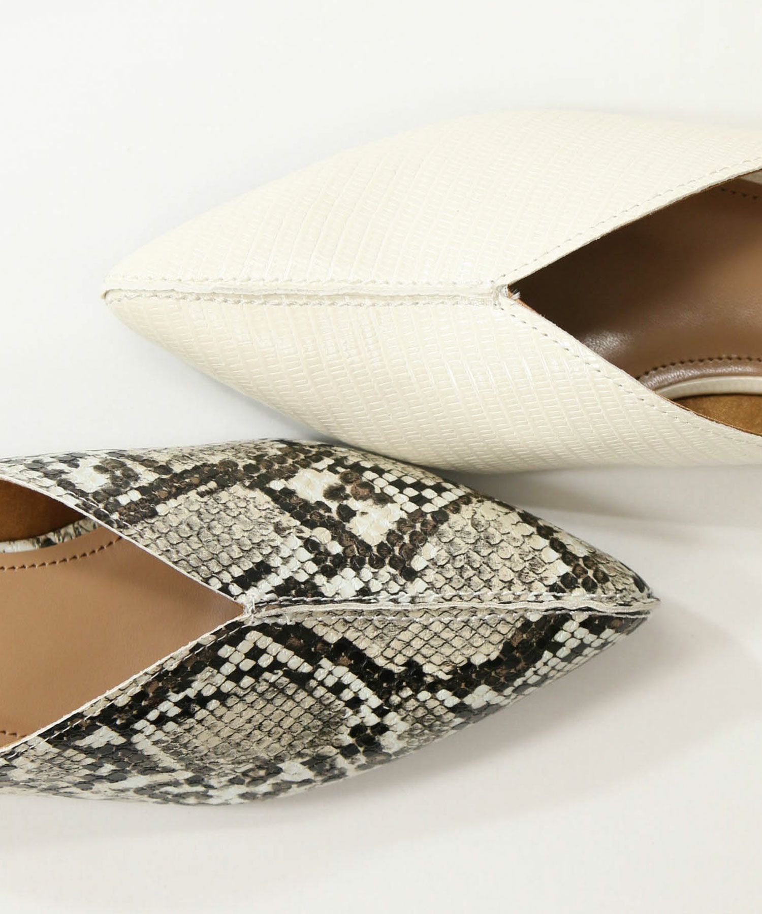 ポインテッドトゥとV字に空いた甲のデザインが足をキレイに見せてくれます。