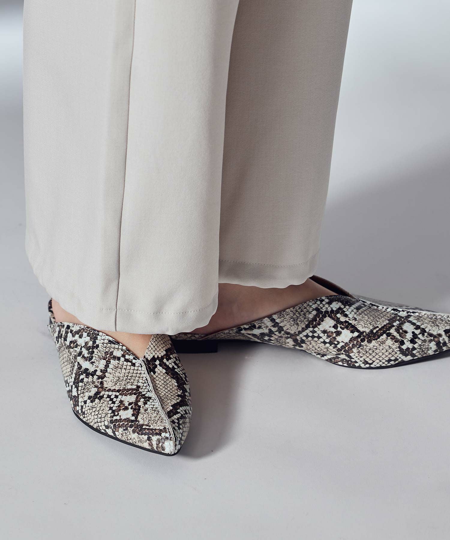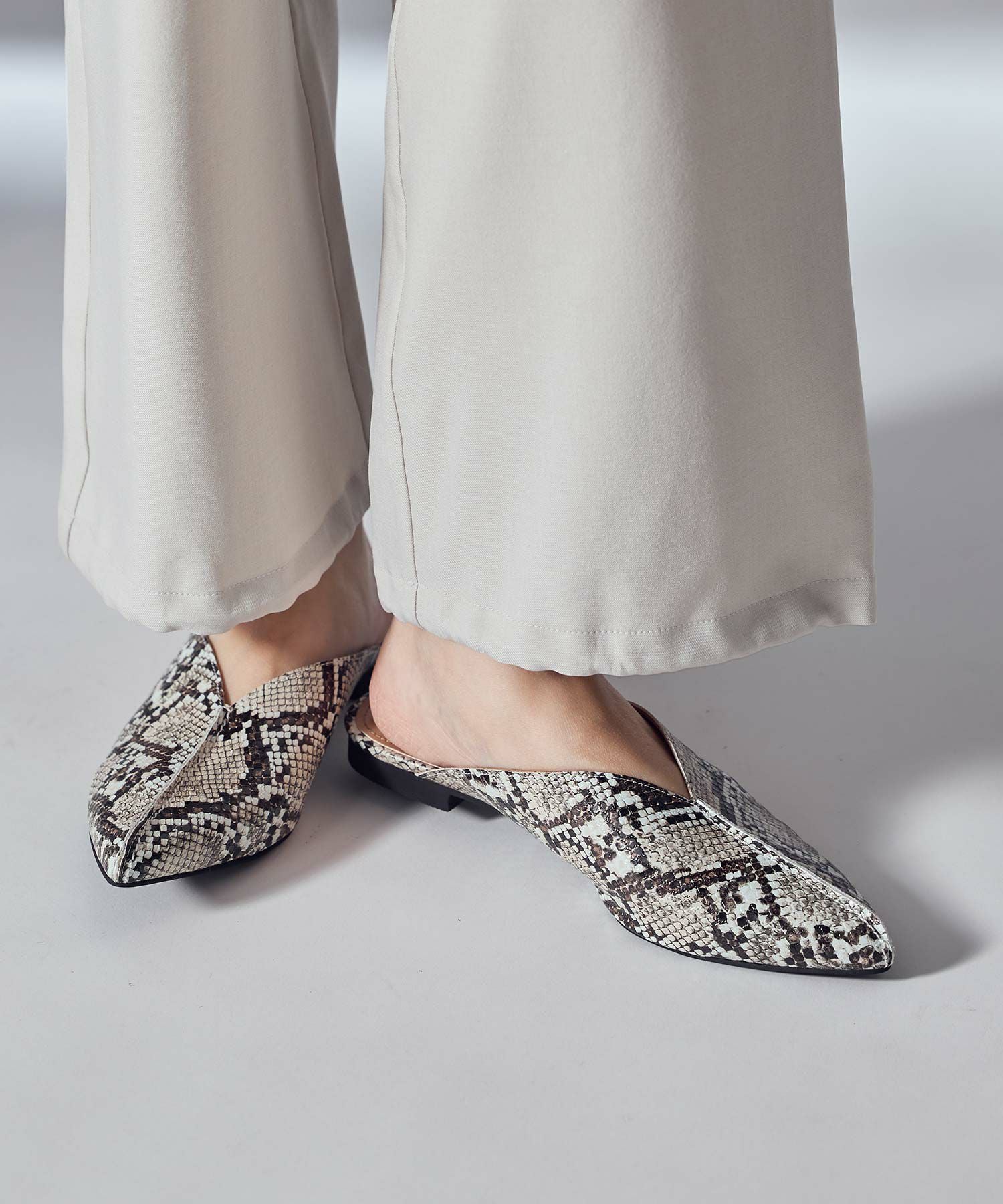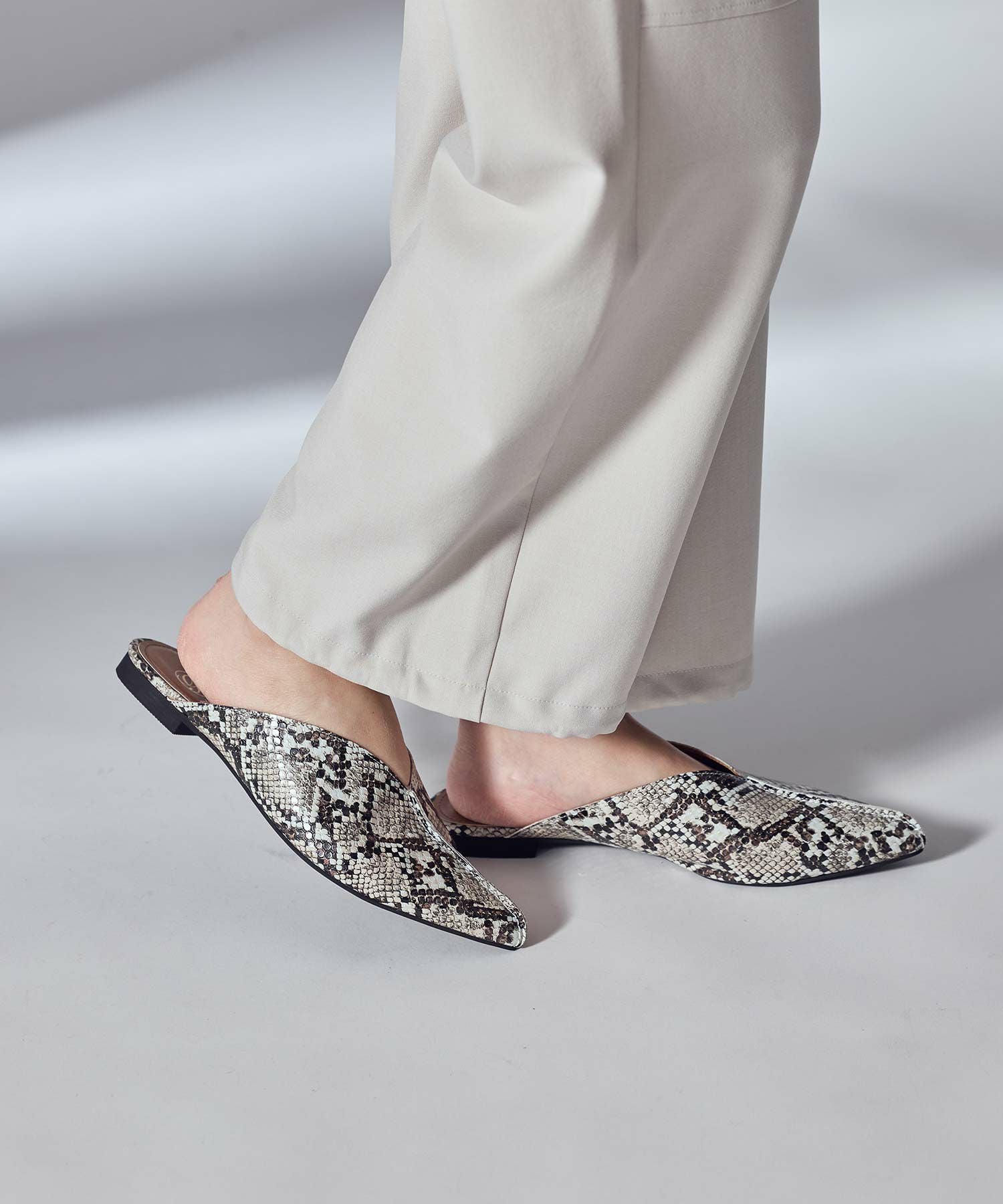 ラクチンに大人っぽく、デイリー使いに活躍してくれるフラットミュール。
