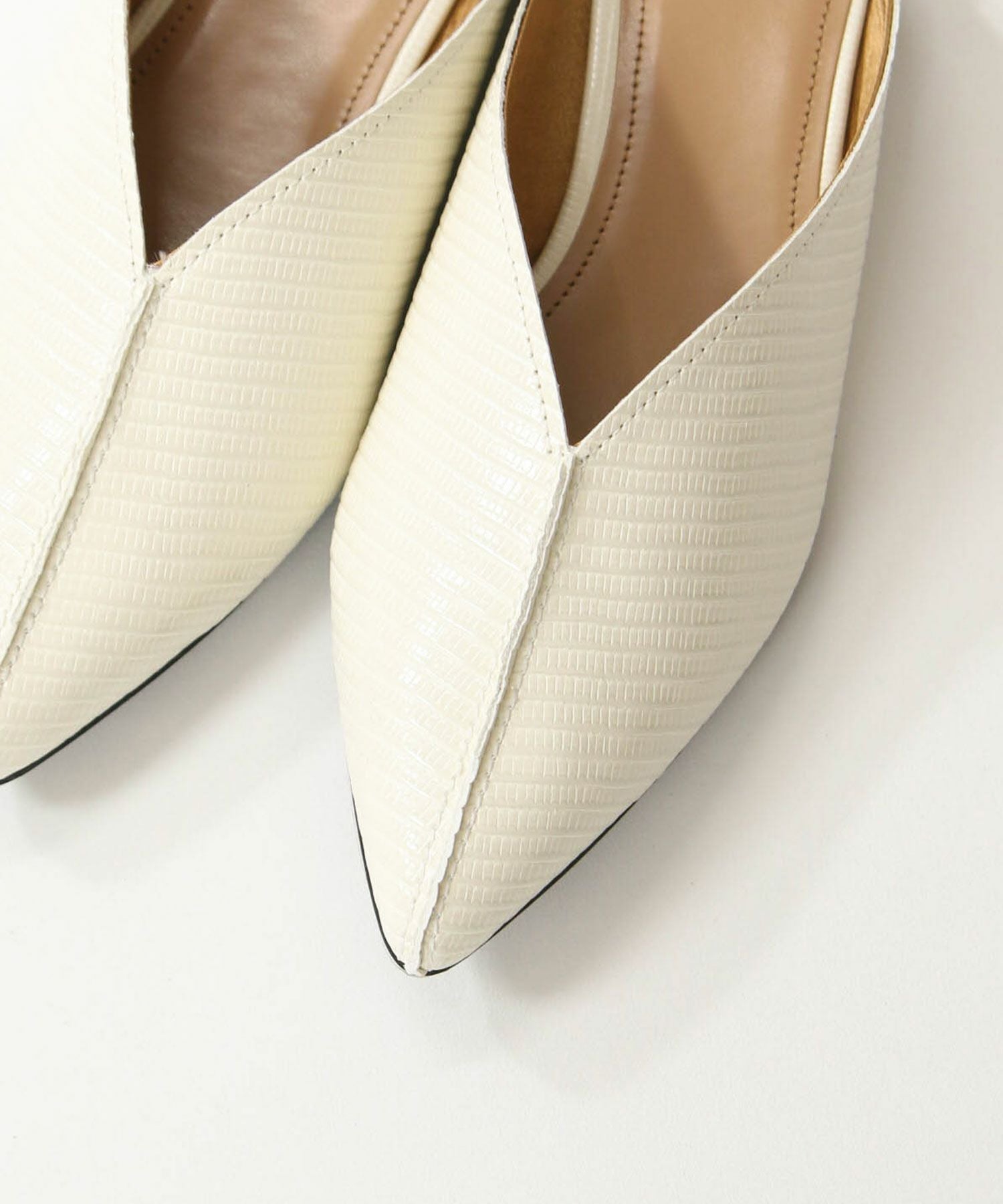 ポインテッドトゥとV字に空いた甲のデザインが足をキレイに見せてくれます。