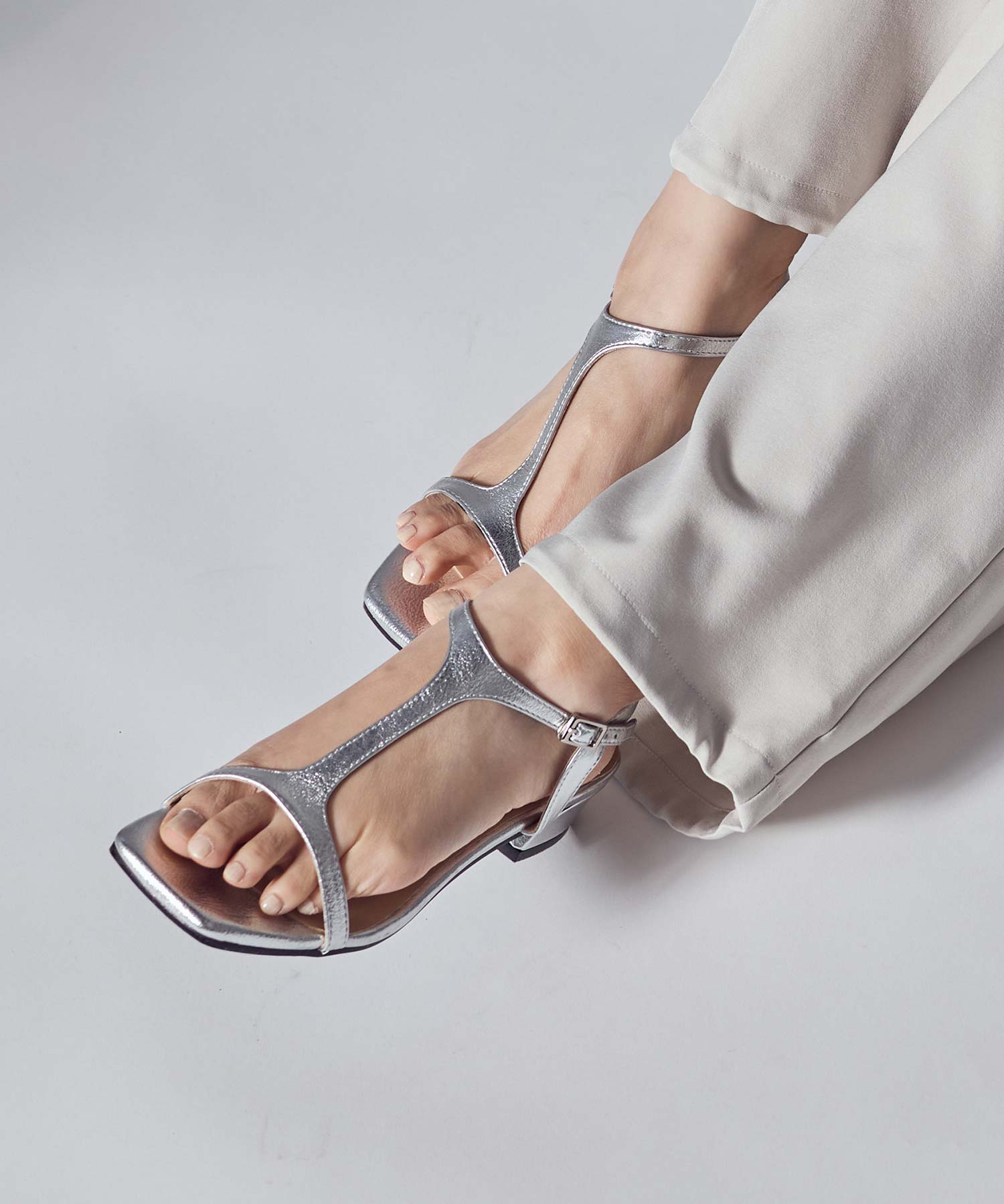 甲にかかる華奢なTストラップは足をきれいに魅せてくれます。