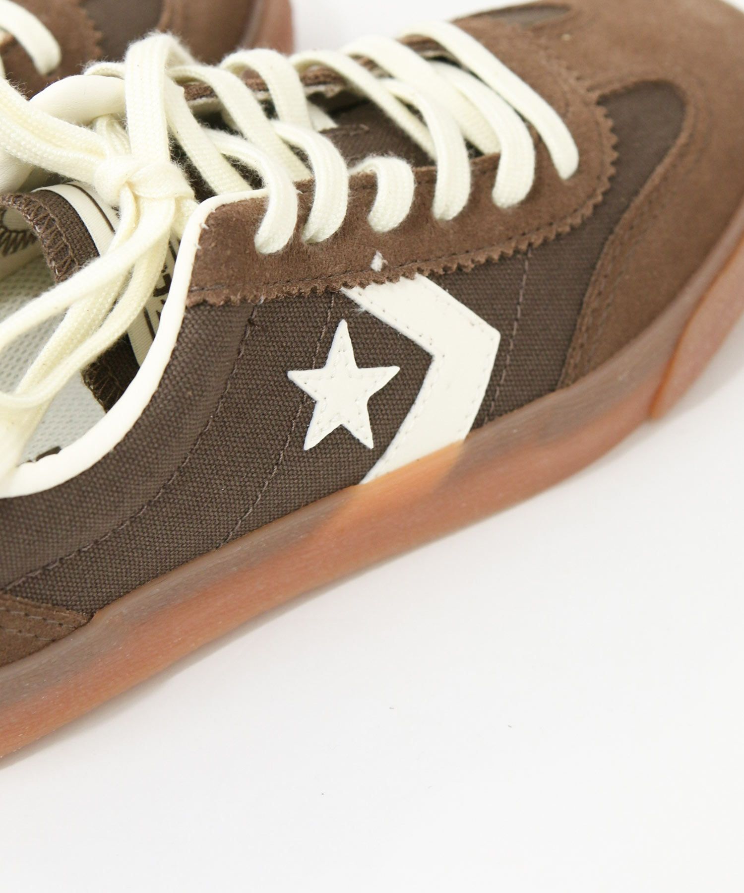 キャンバス素材のアッパーに、トウと踵にスエードを採用することで耐久性を向上。