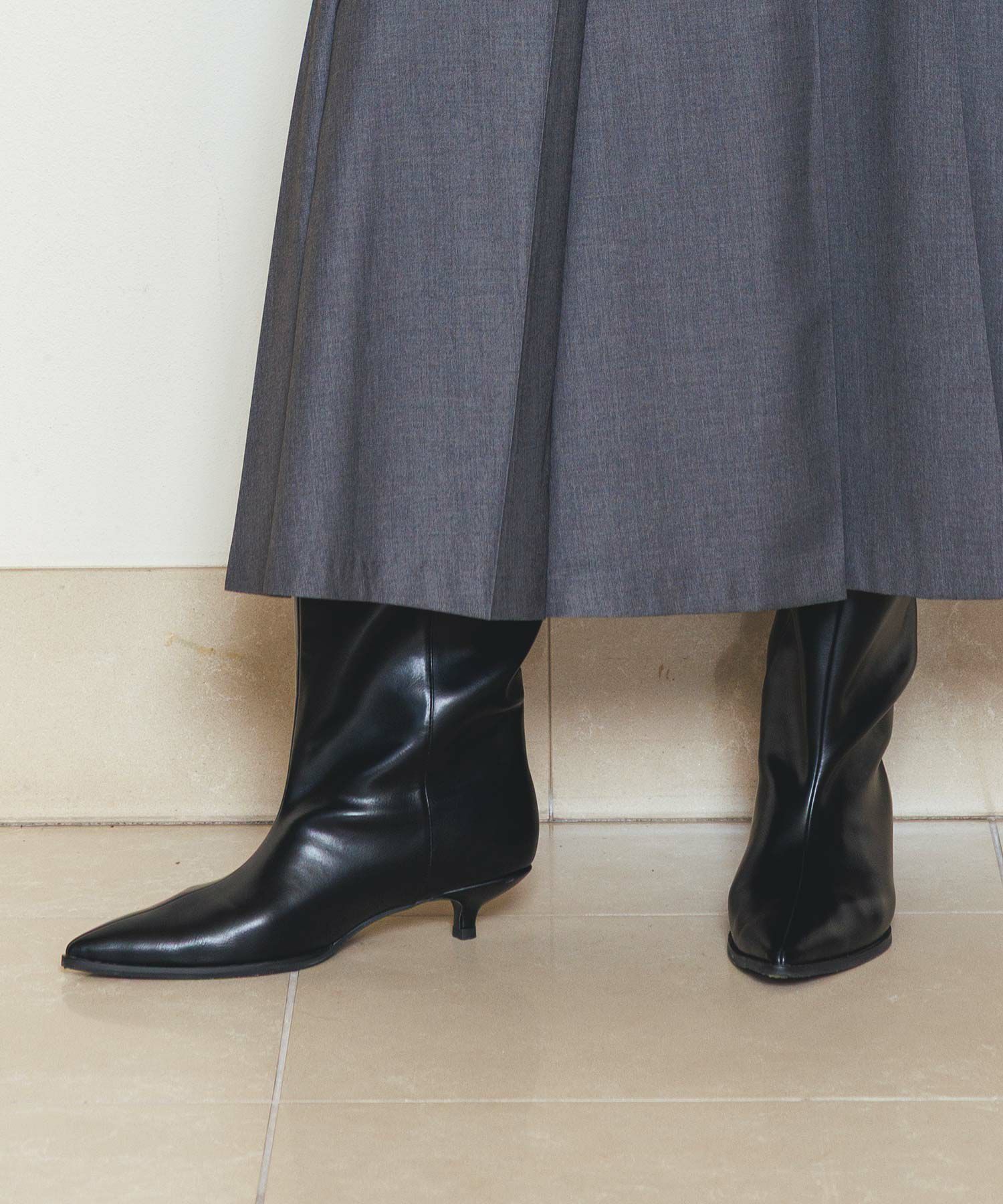 アトリエブルージュより、シャープなトゥが女性らしいロングブーツをセレクト。