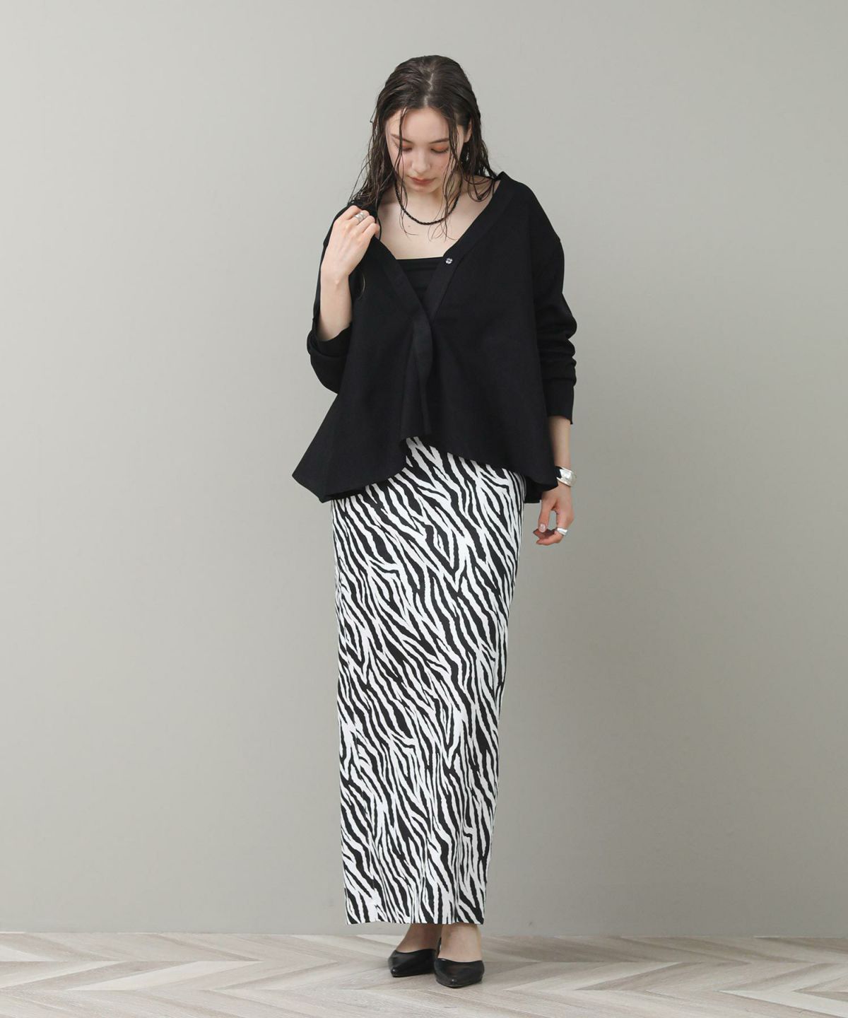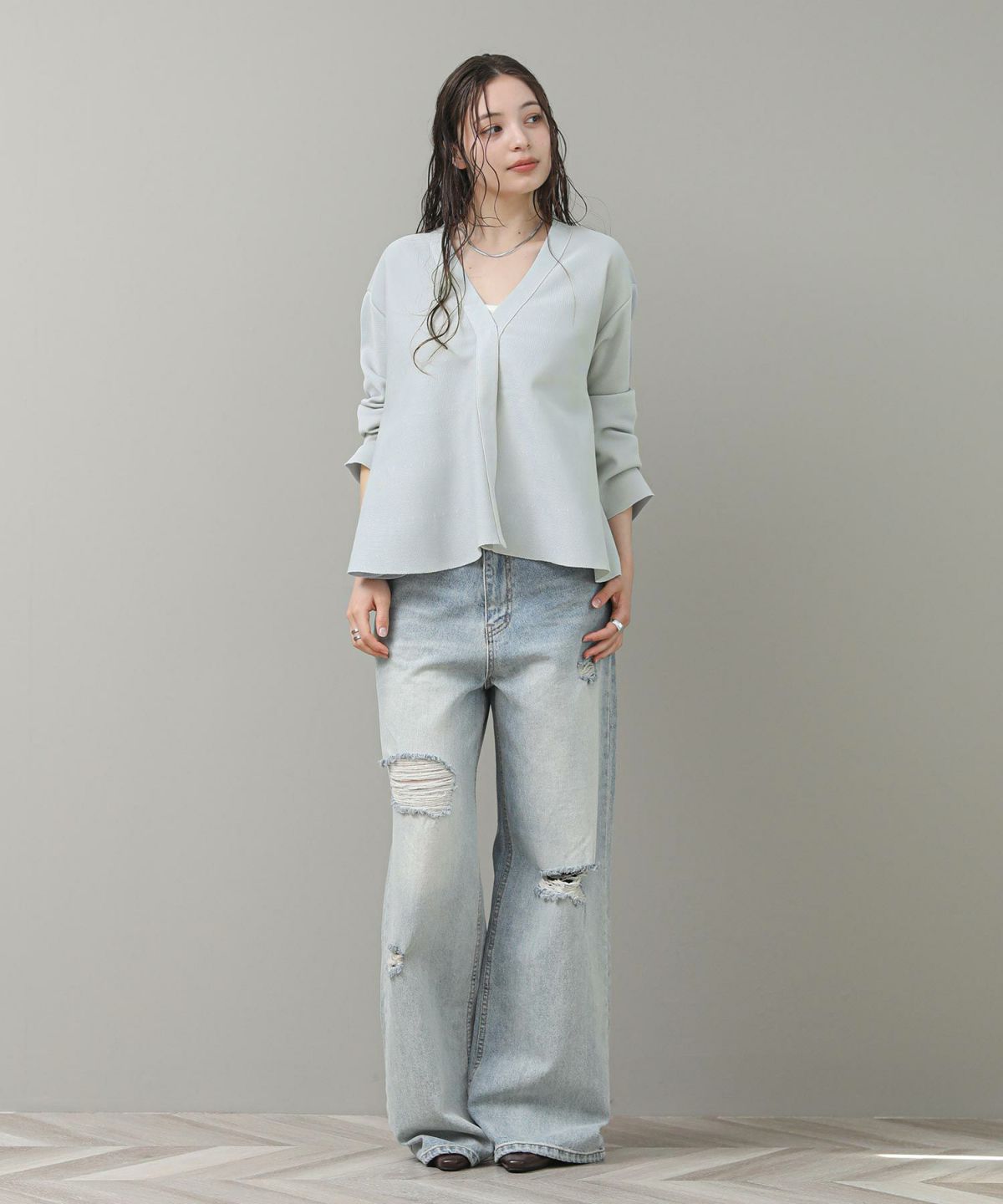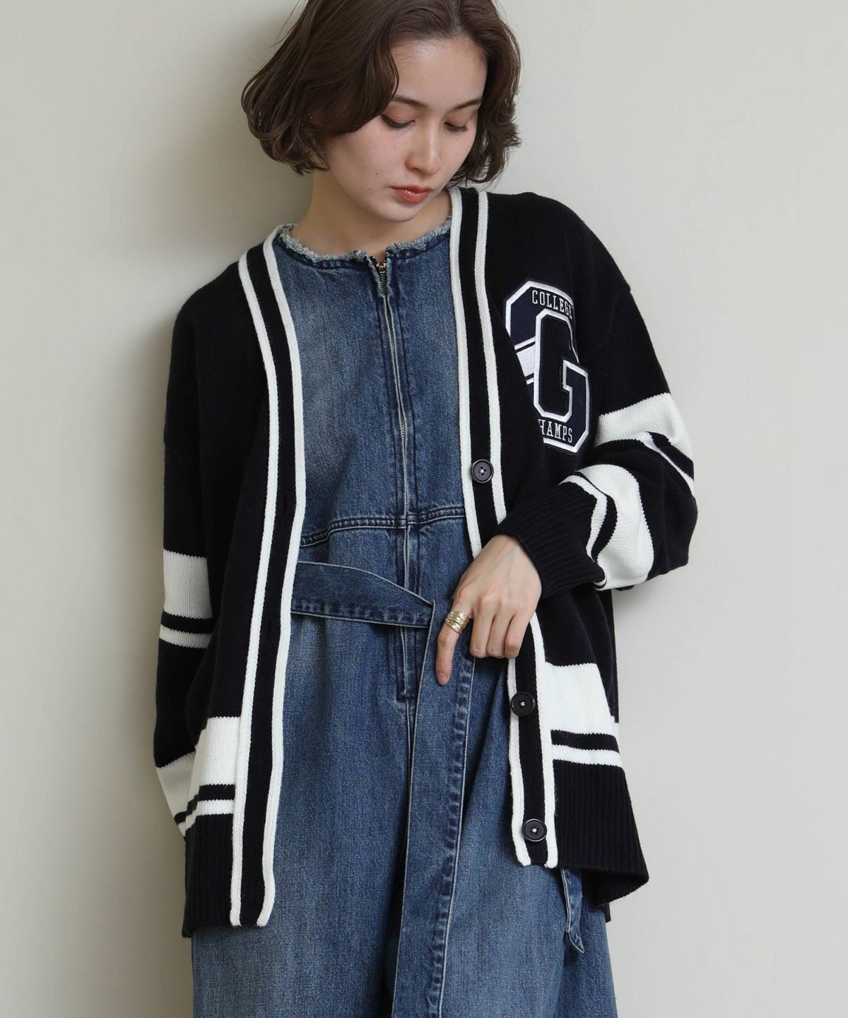 レーヨン混ニュアンス釦カーディガン
