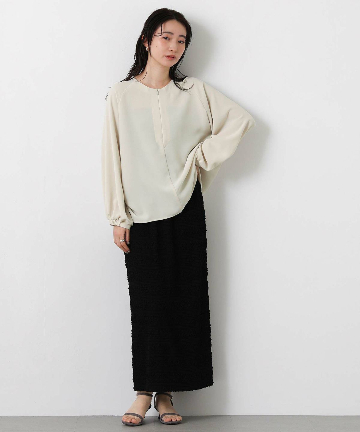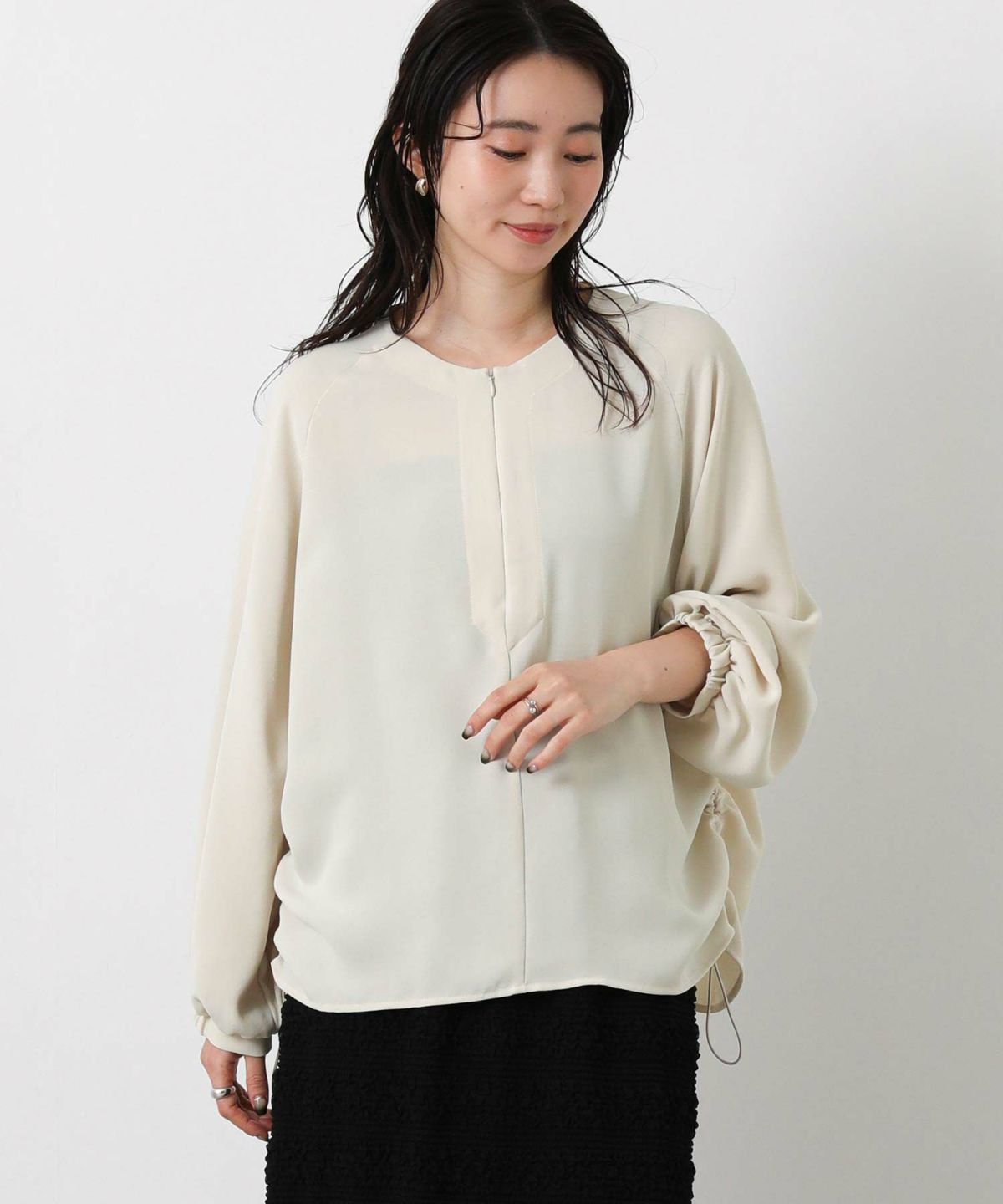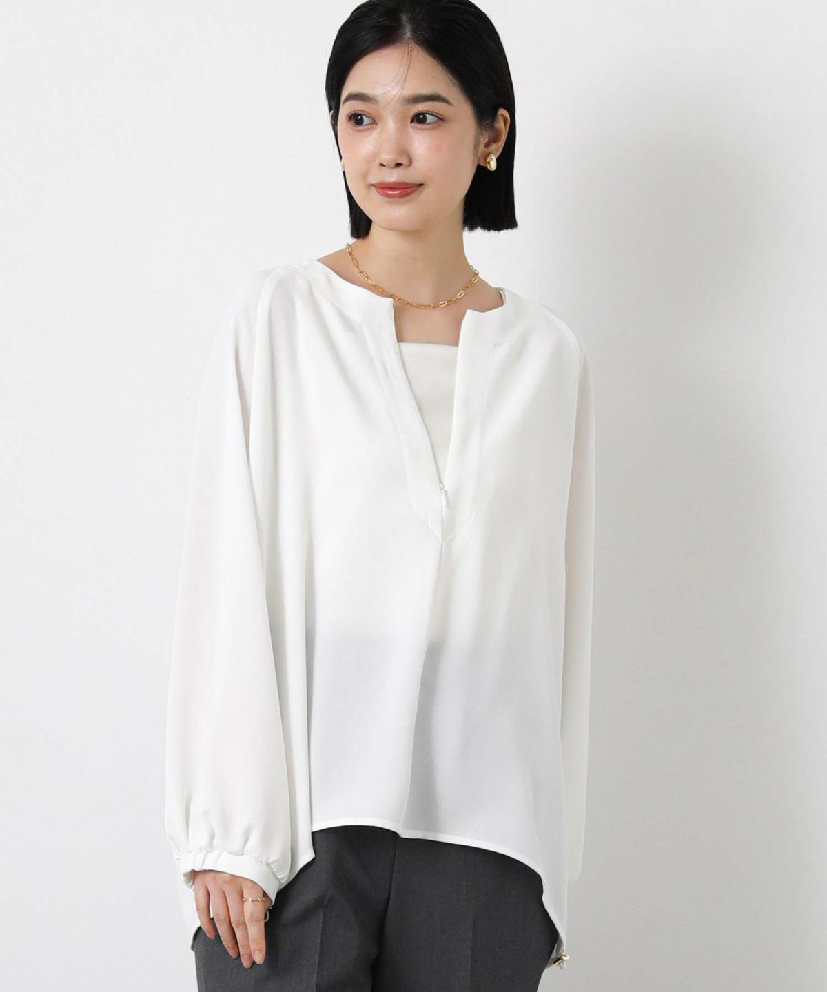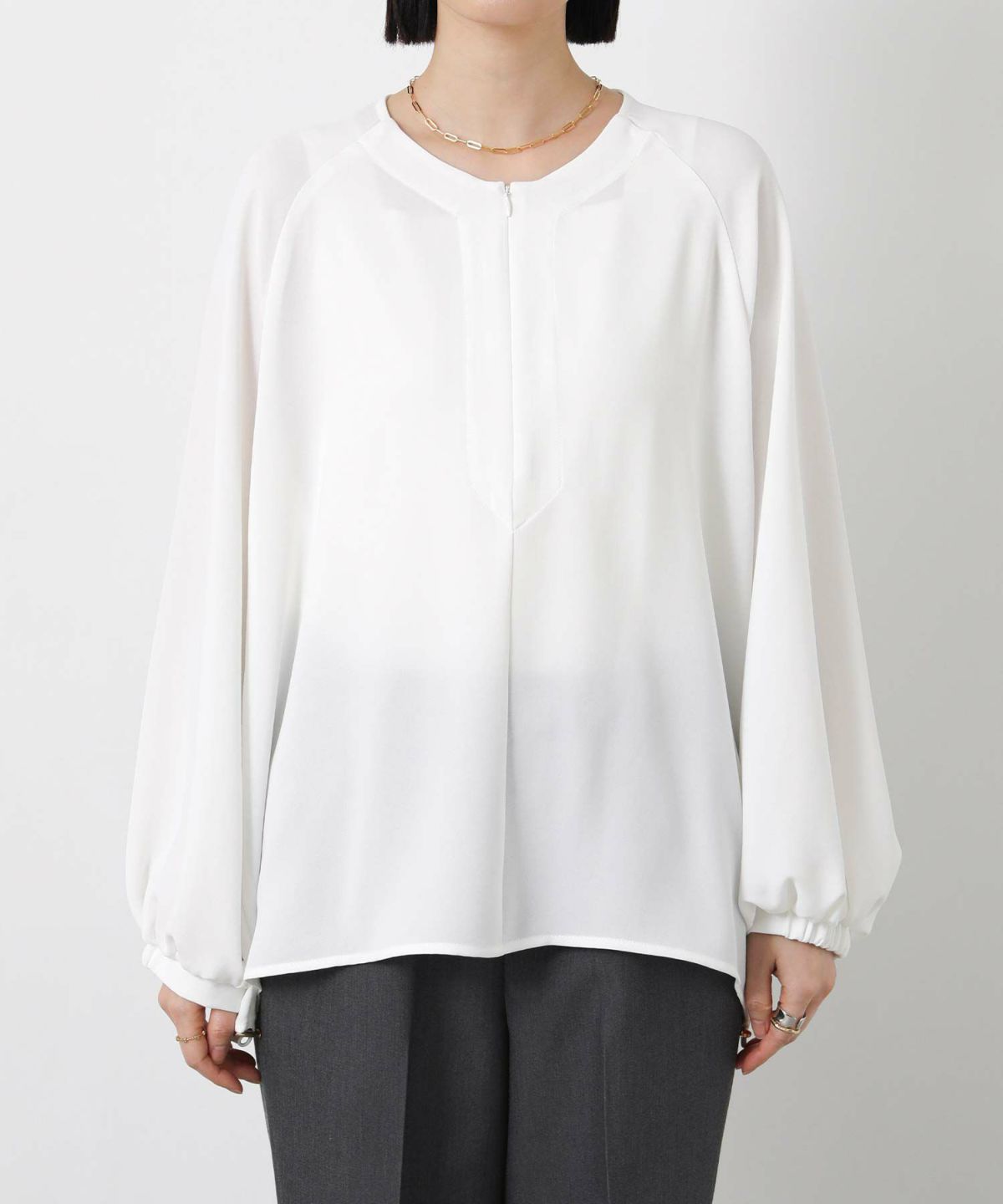 コンシールスキッパーネックブラウス