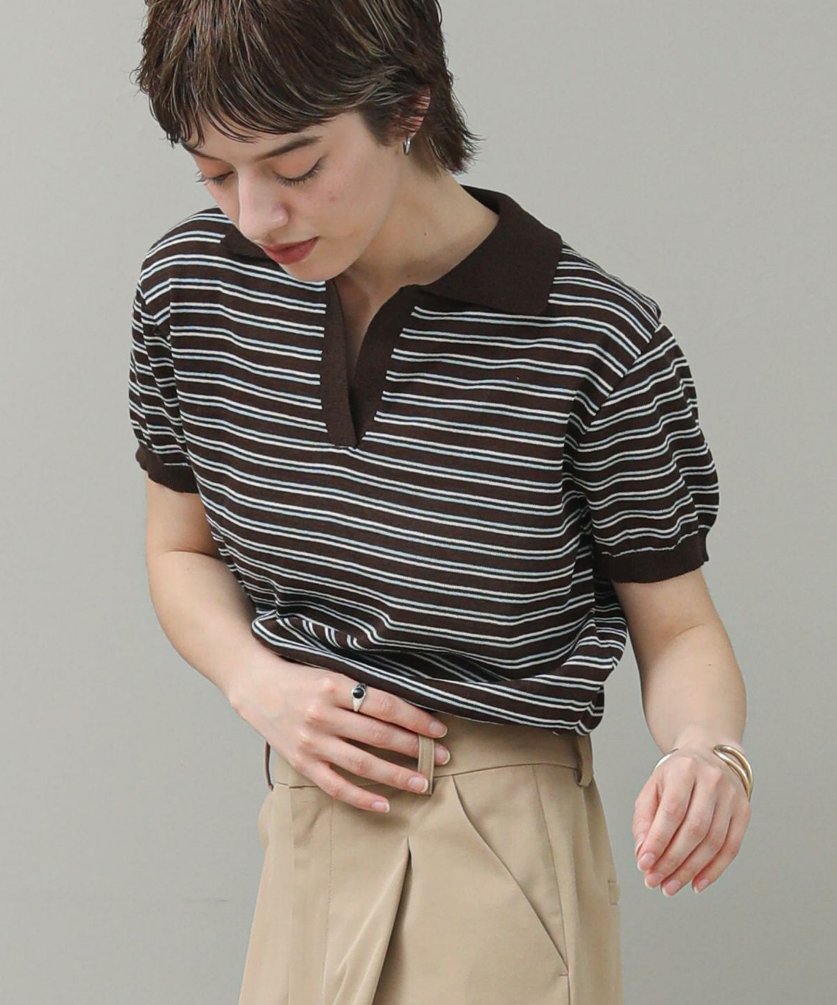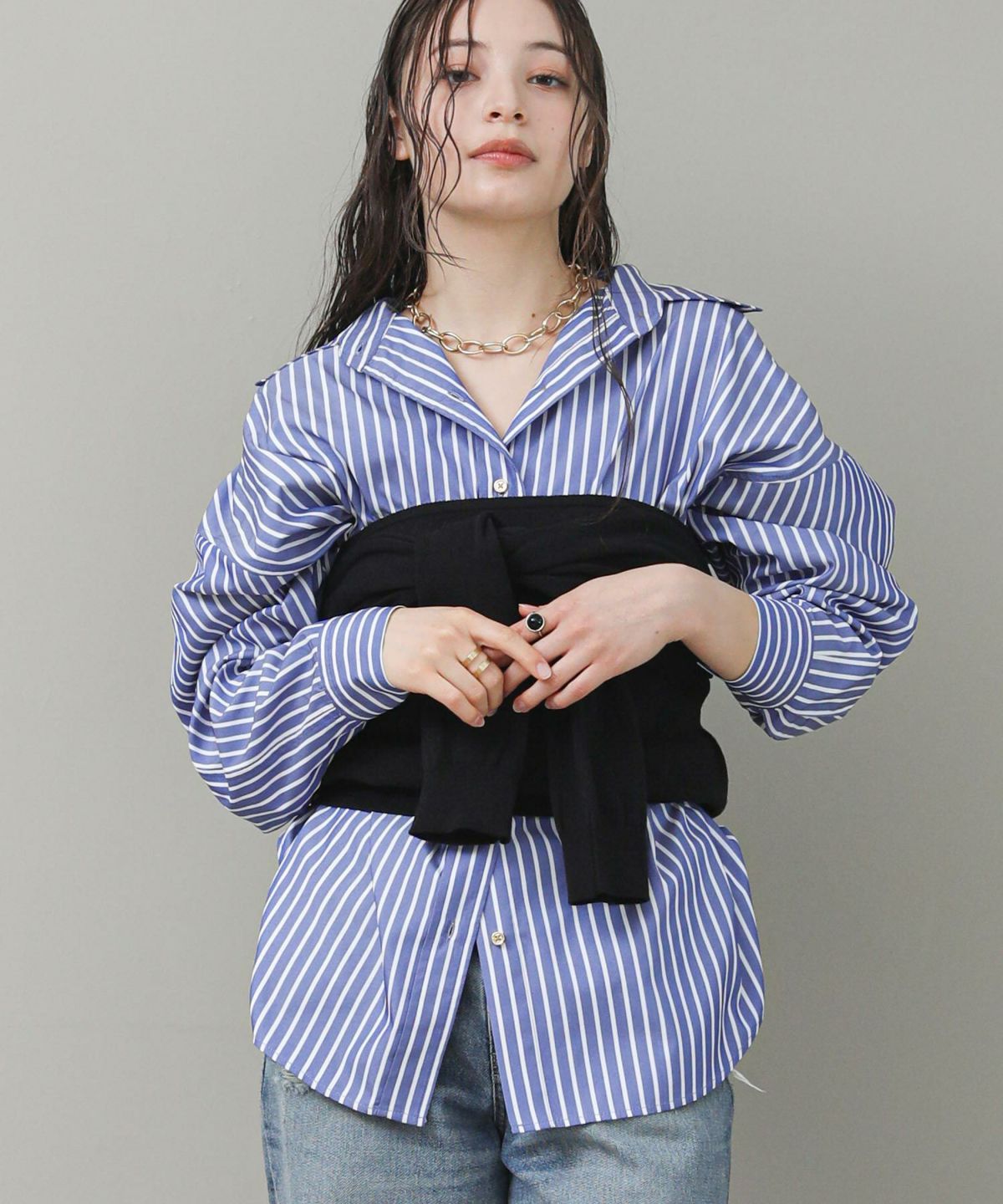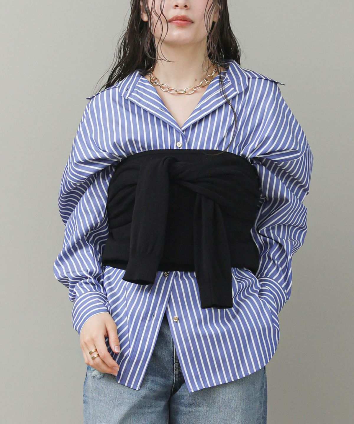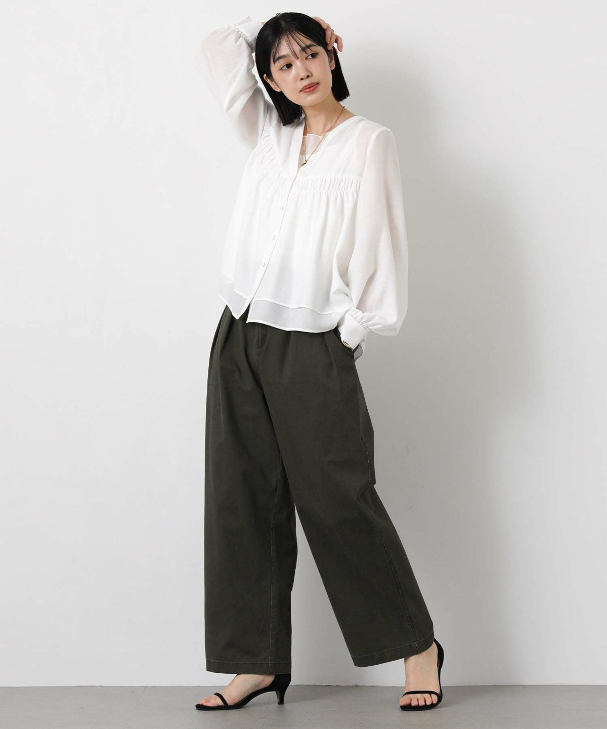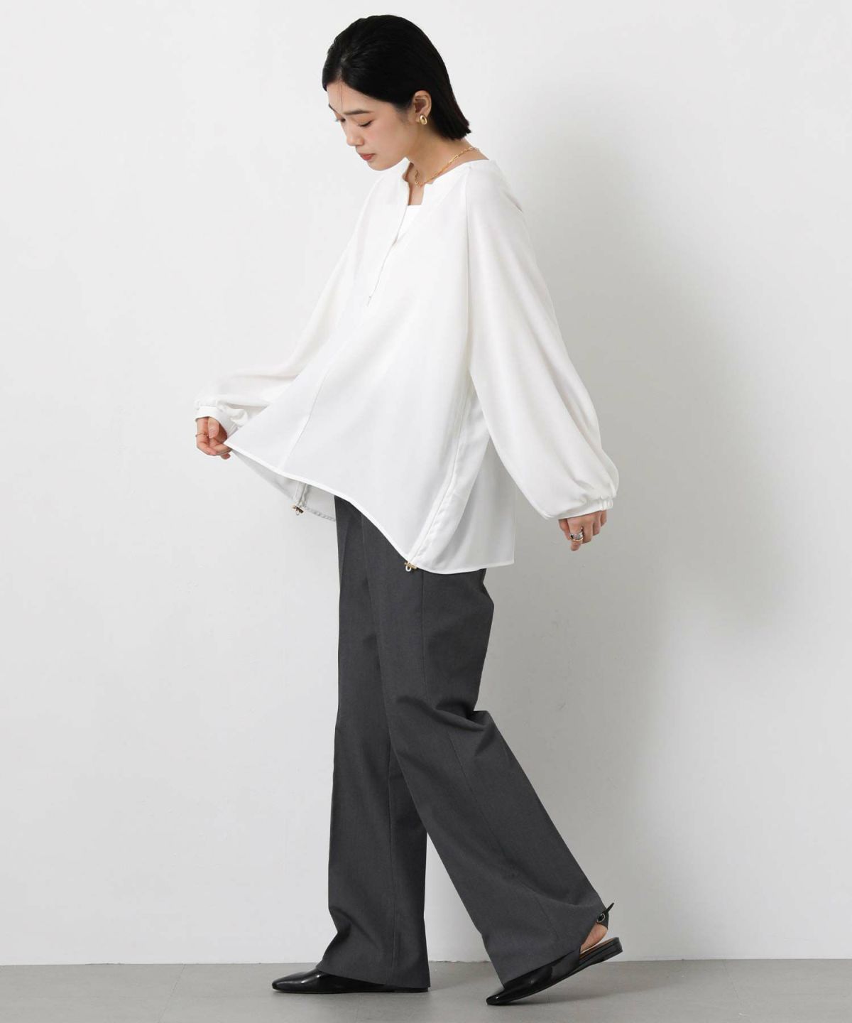 コンシールスキッパーネックブラウス