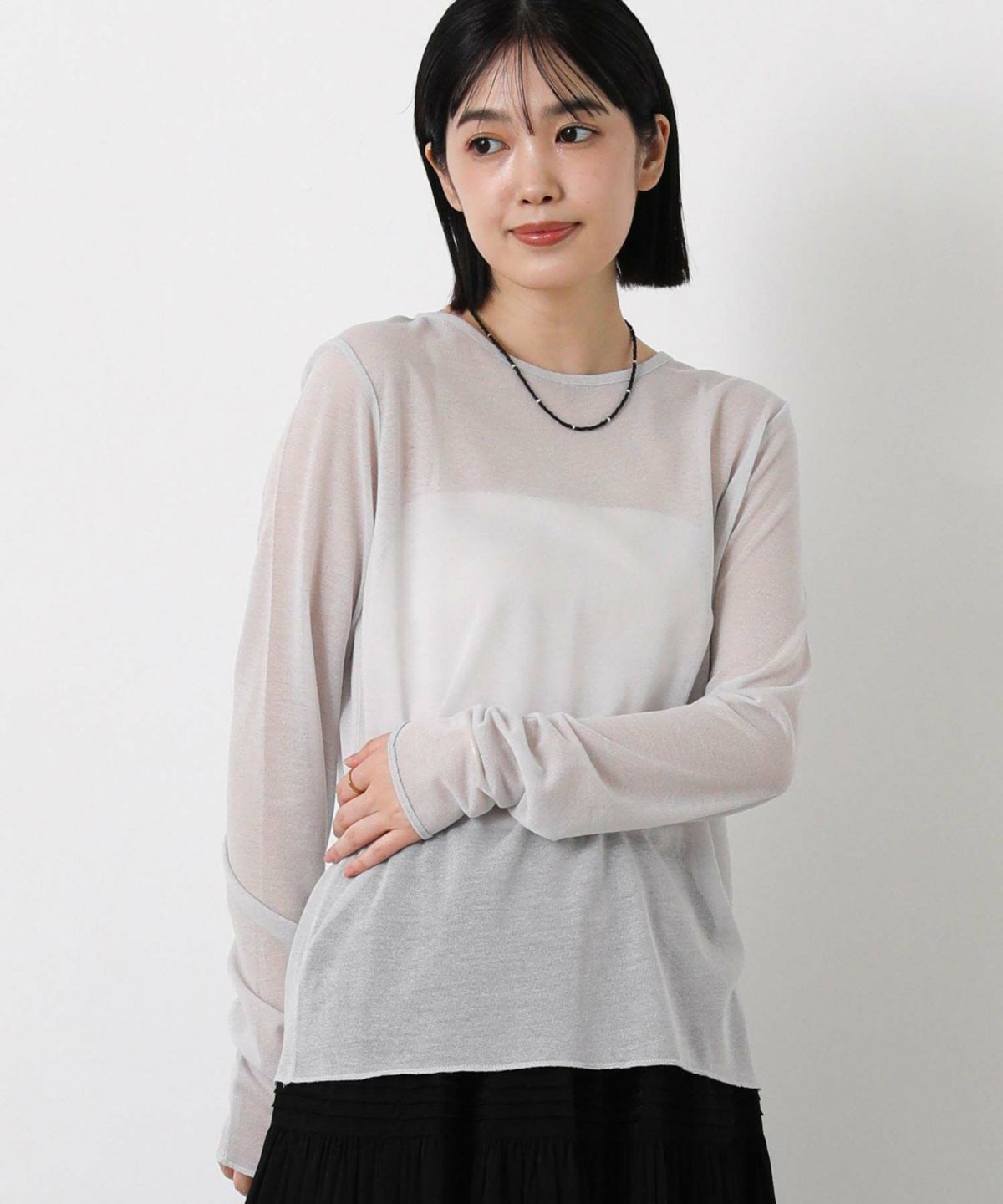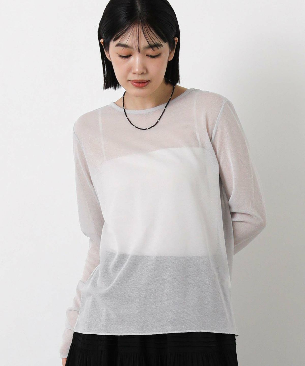 綿シアーボートネックトップス