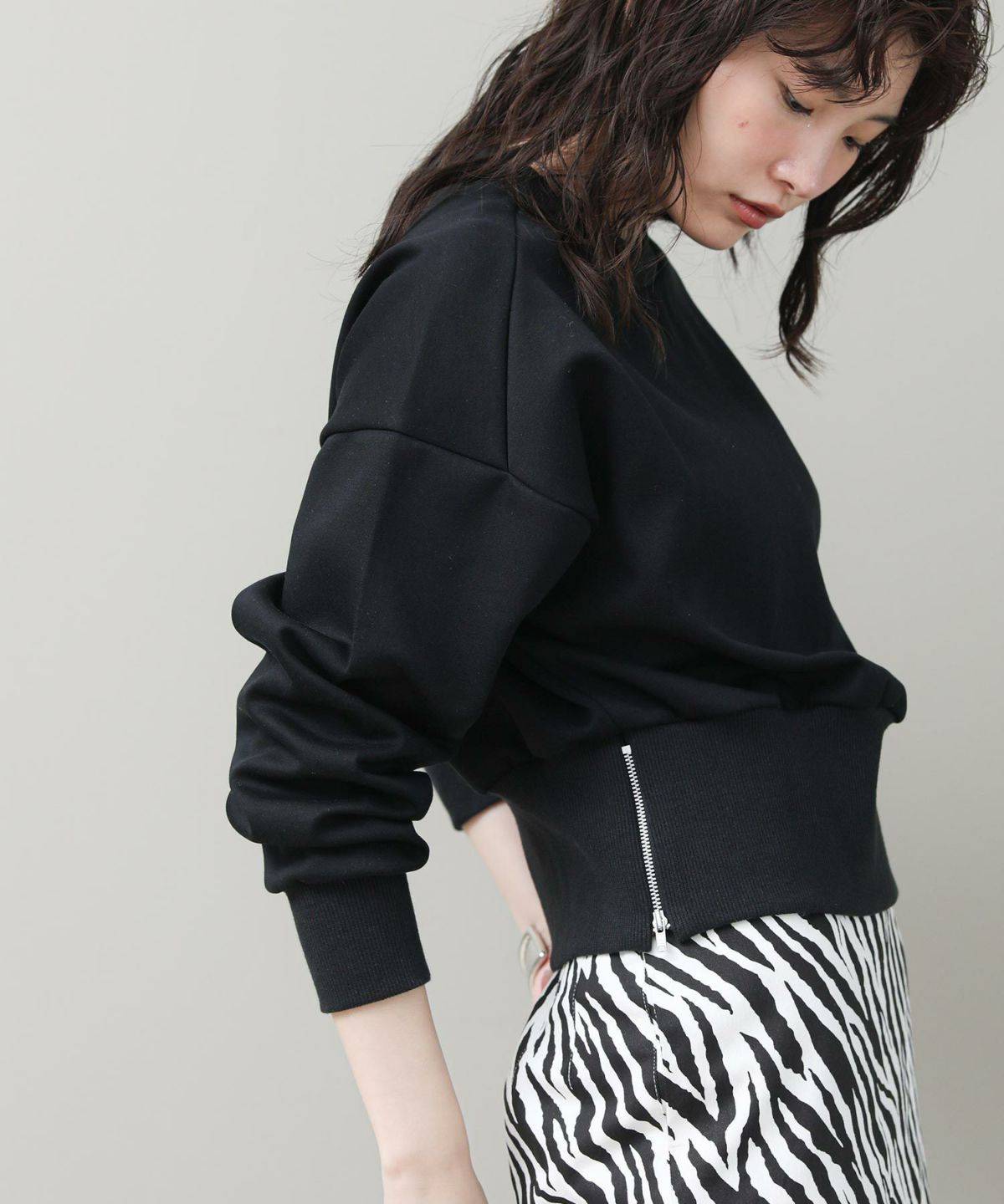 ダンボール裾ZIPプルオーバー