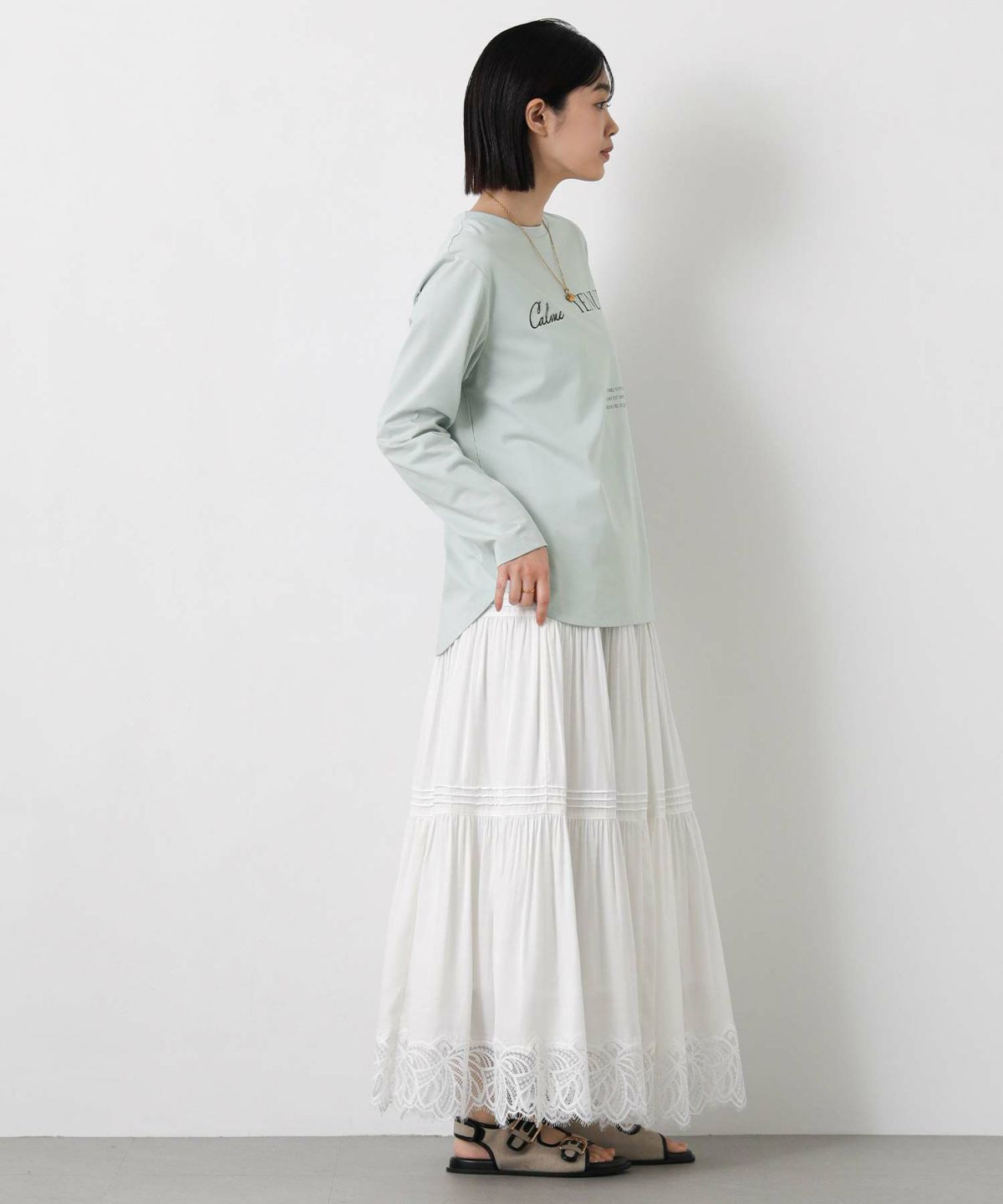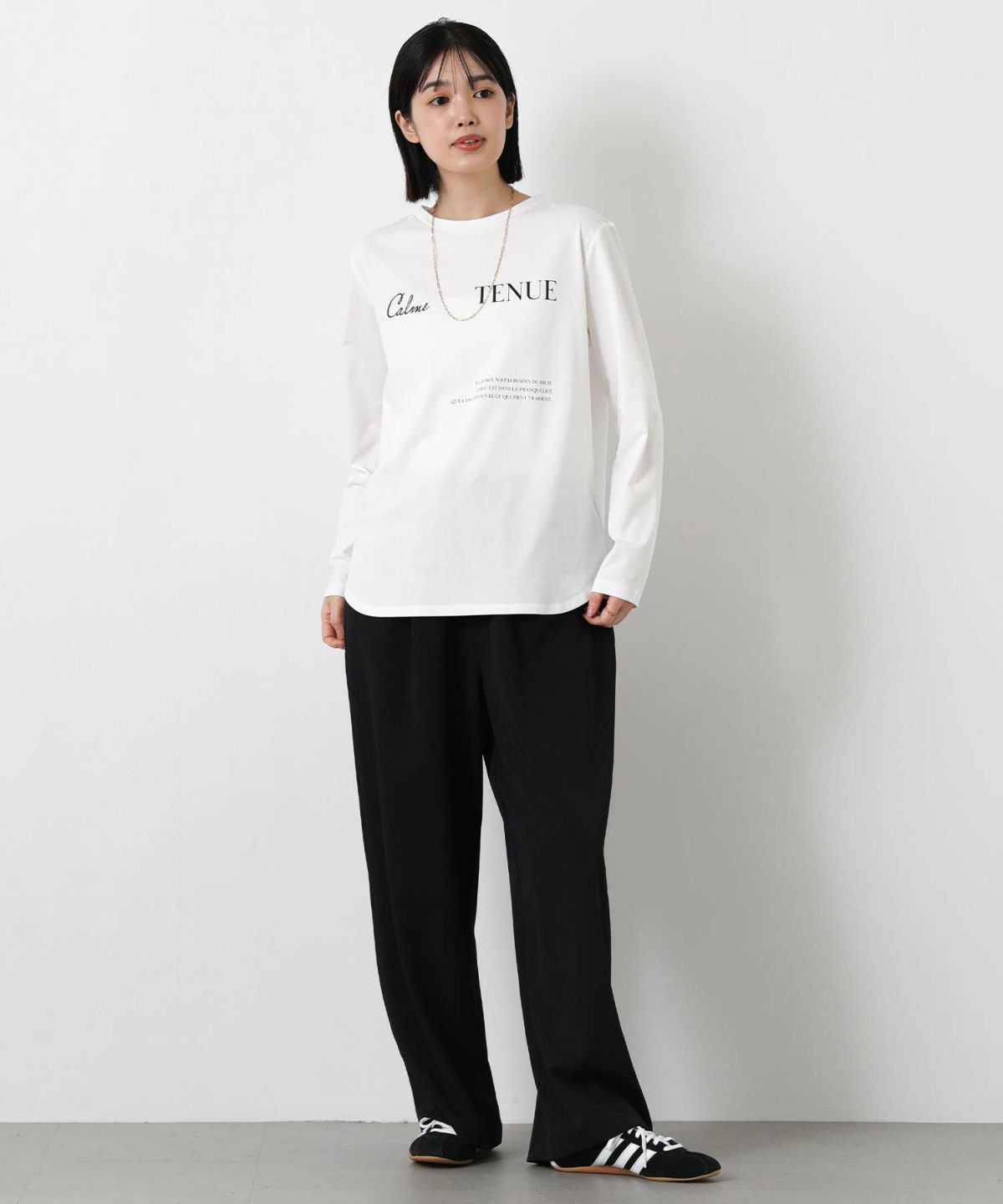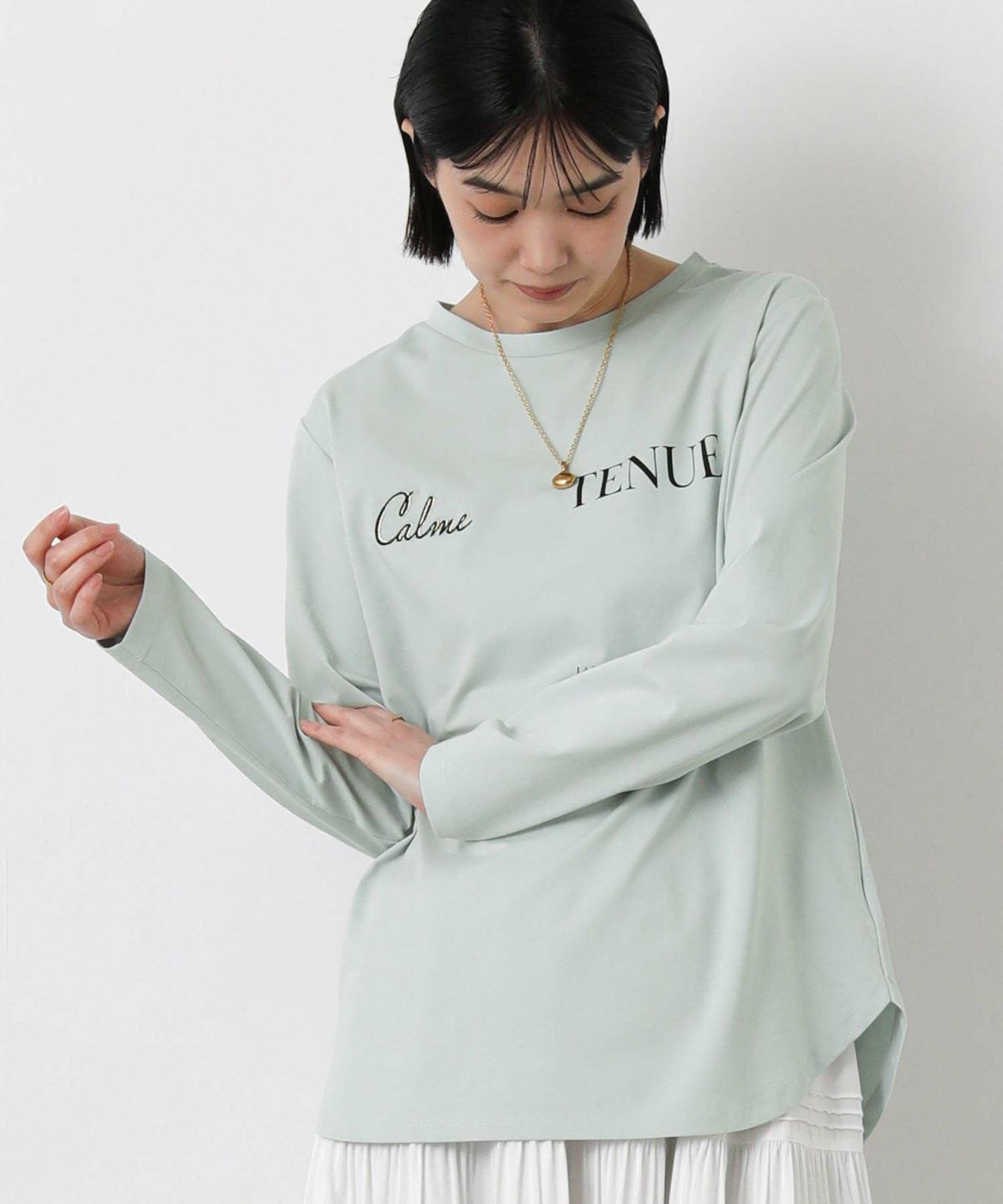 Calme刺繍クルーネックロンT