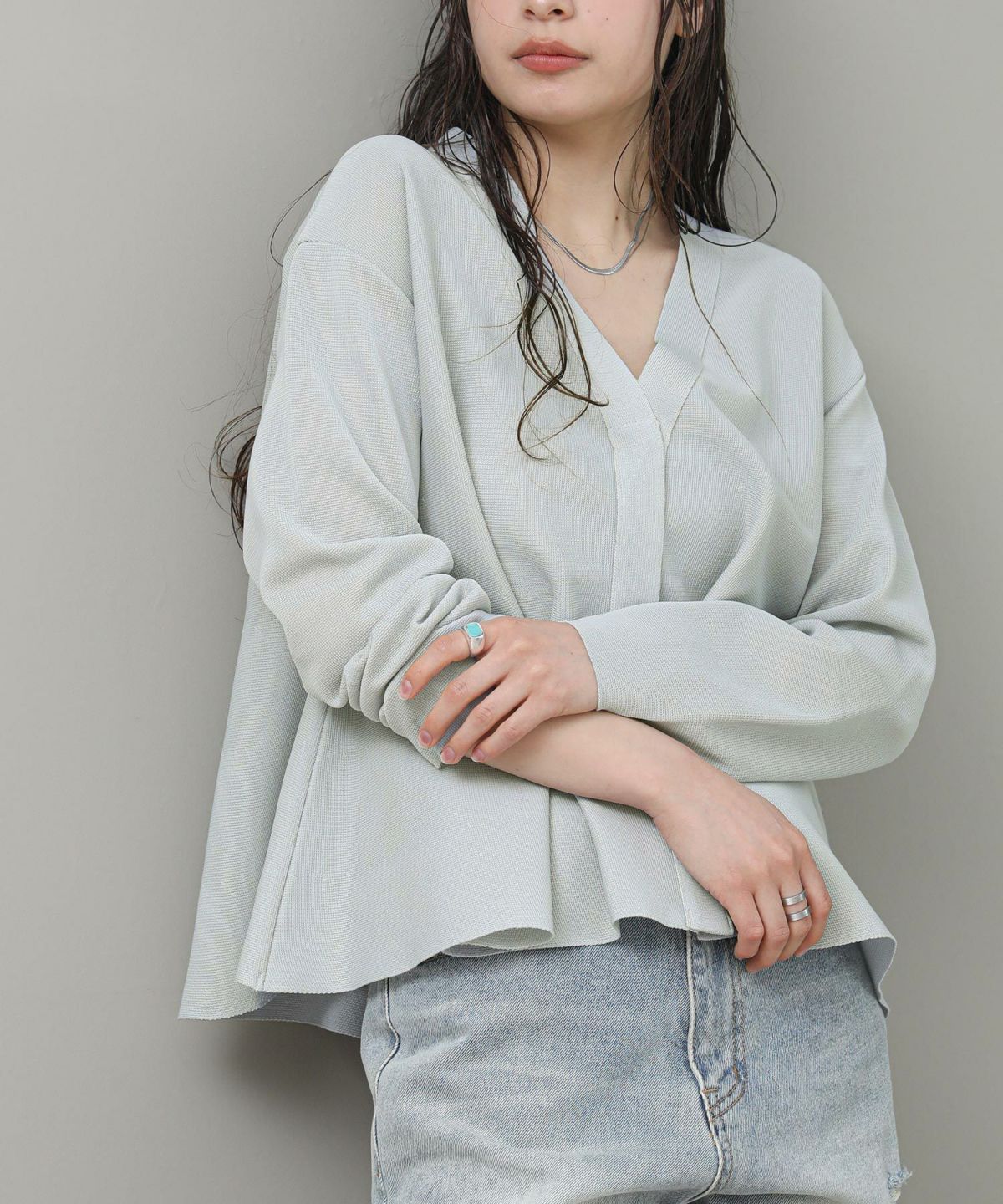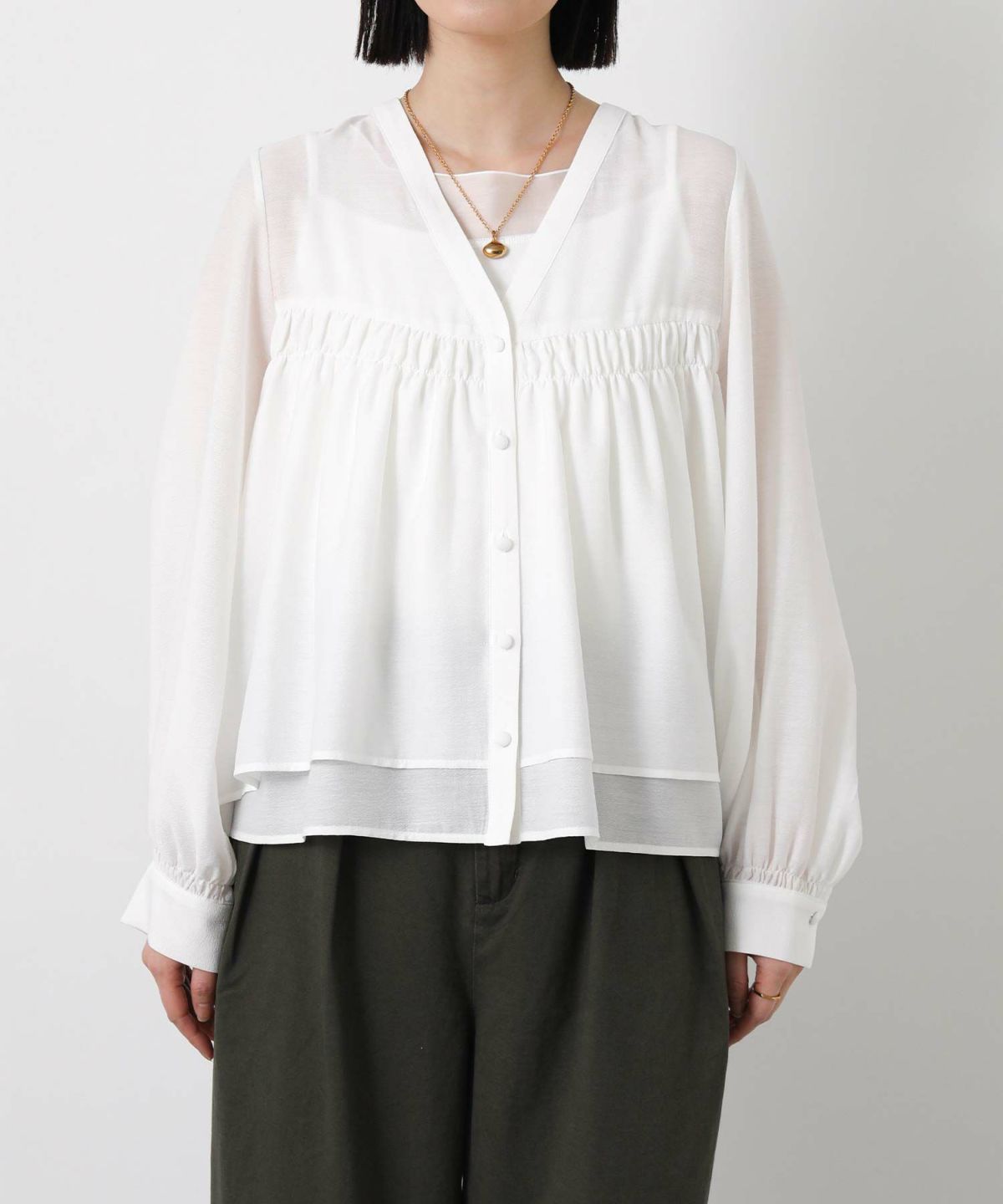 シアーVネックAラインブラウス
