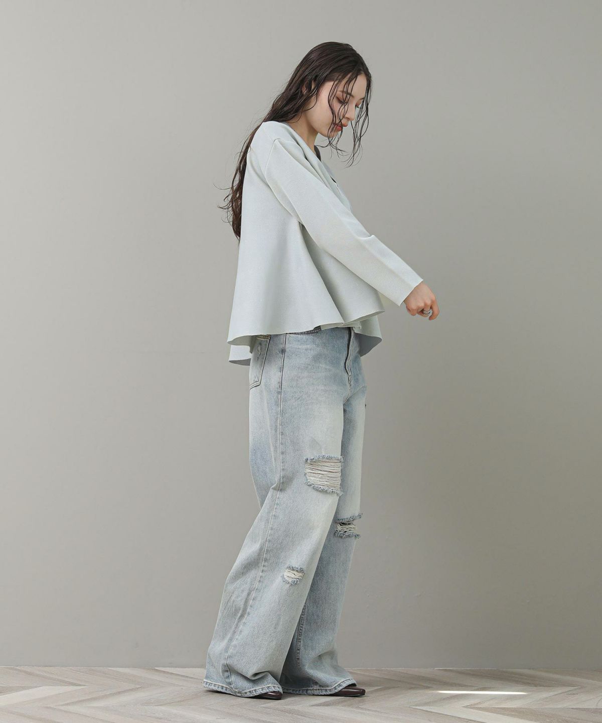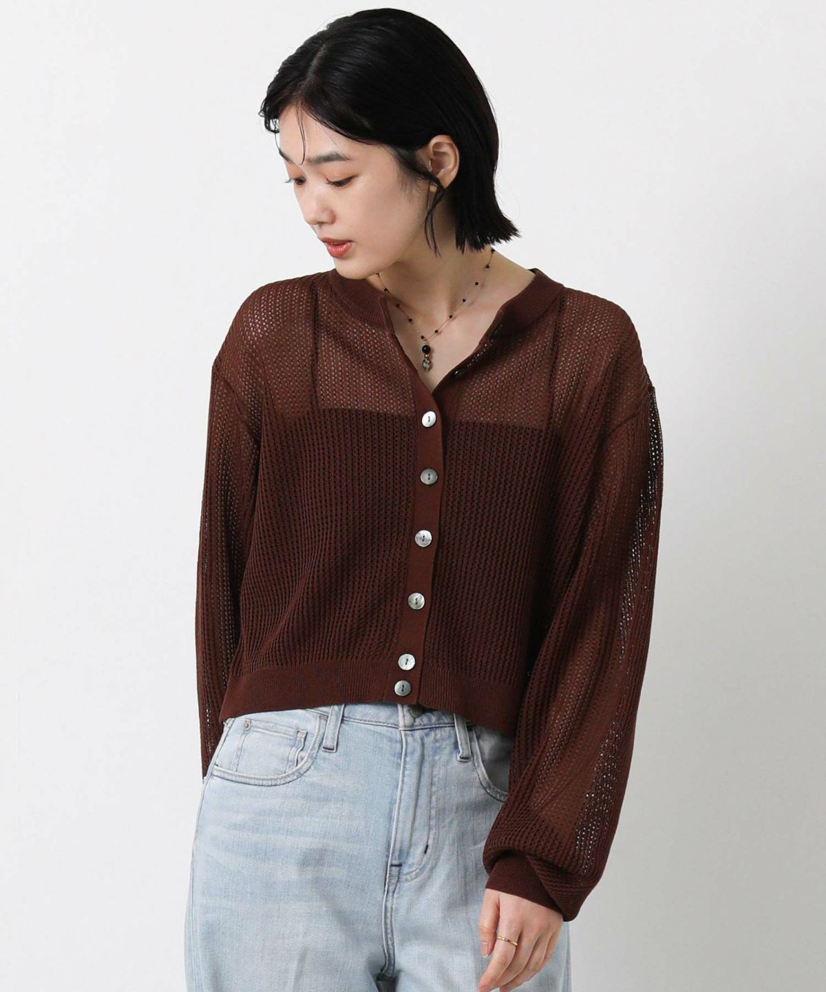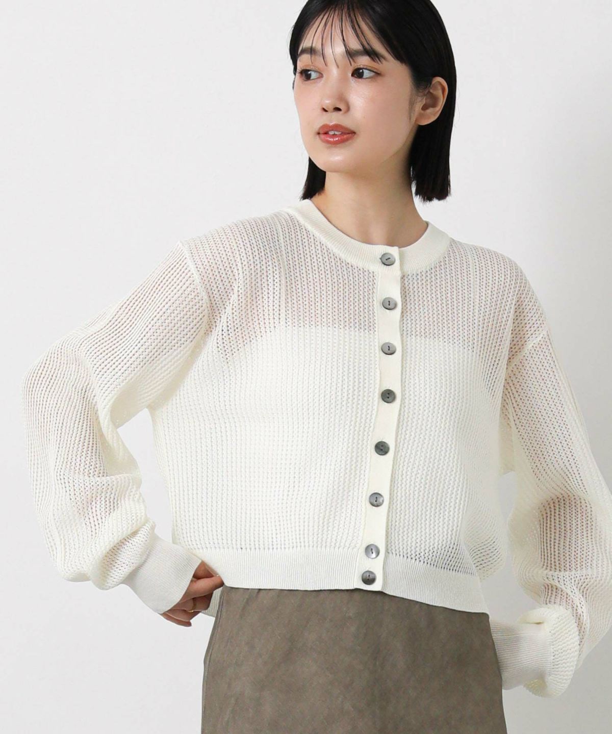 メッシュクルーパフカーディガン