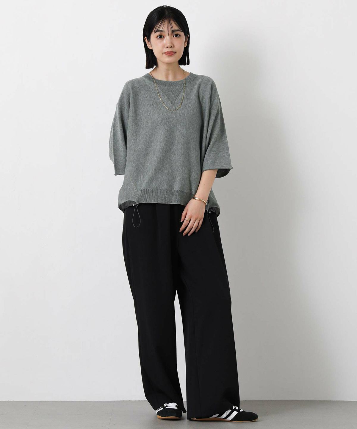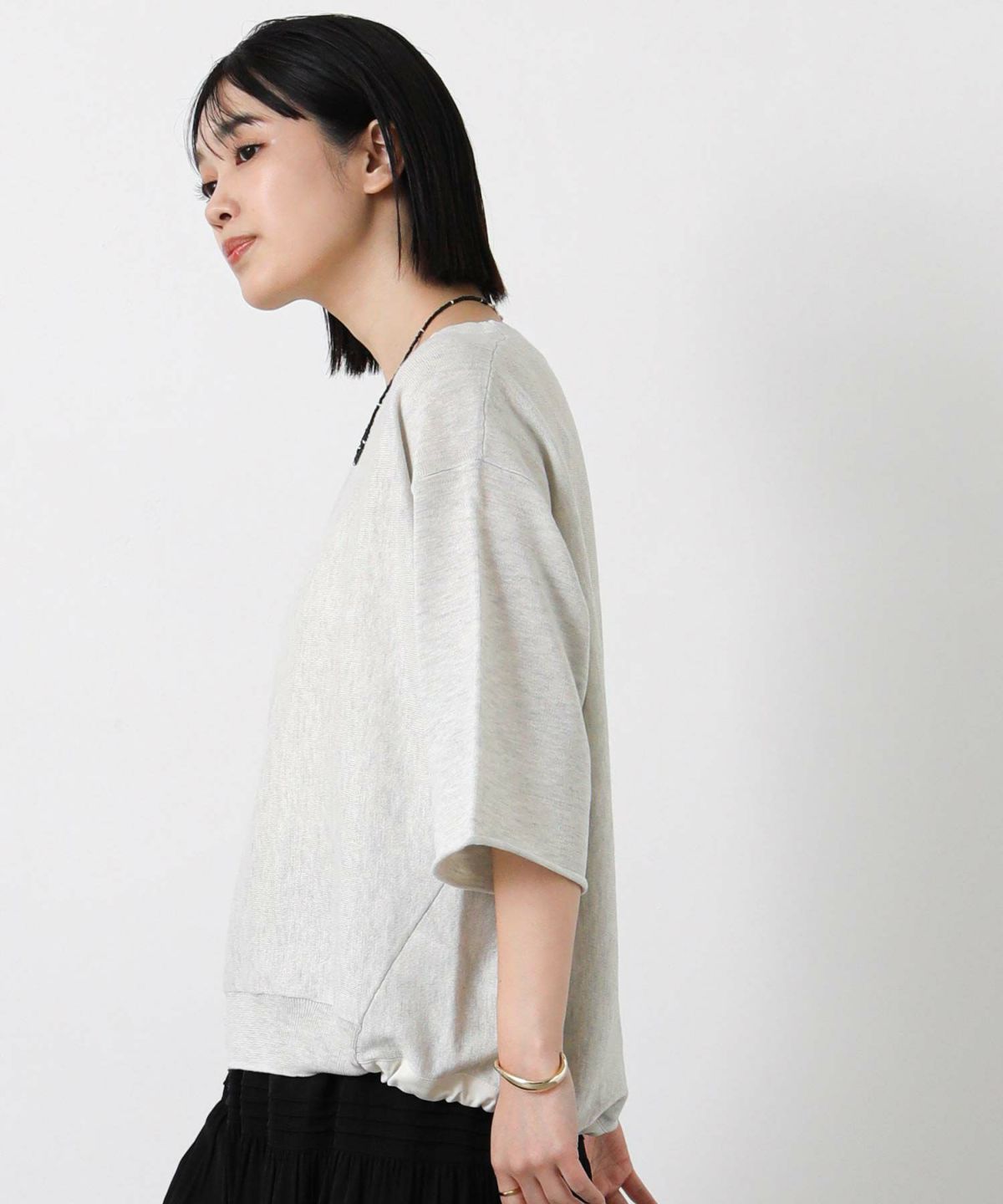 スウェットライク5分袖ニット