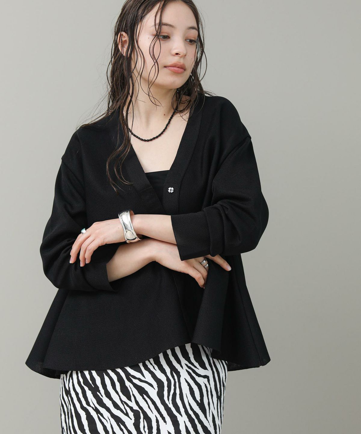 ペプラム引き返し編カーディガン
