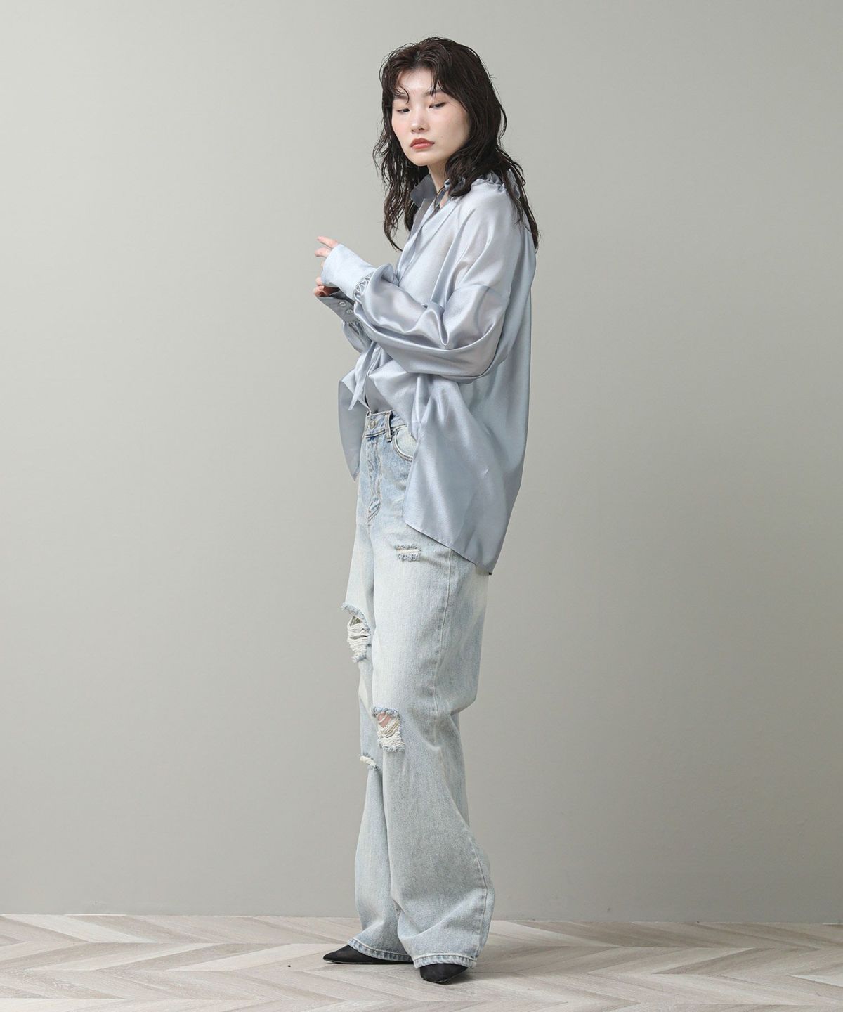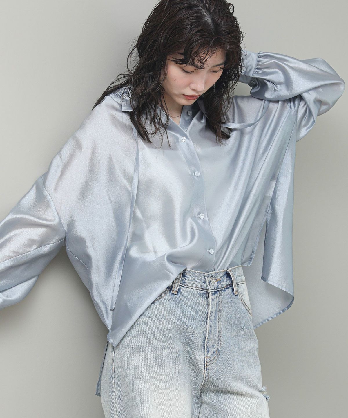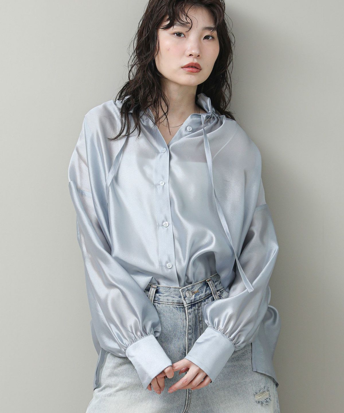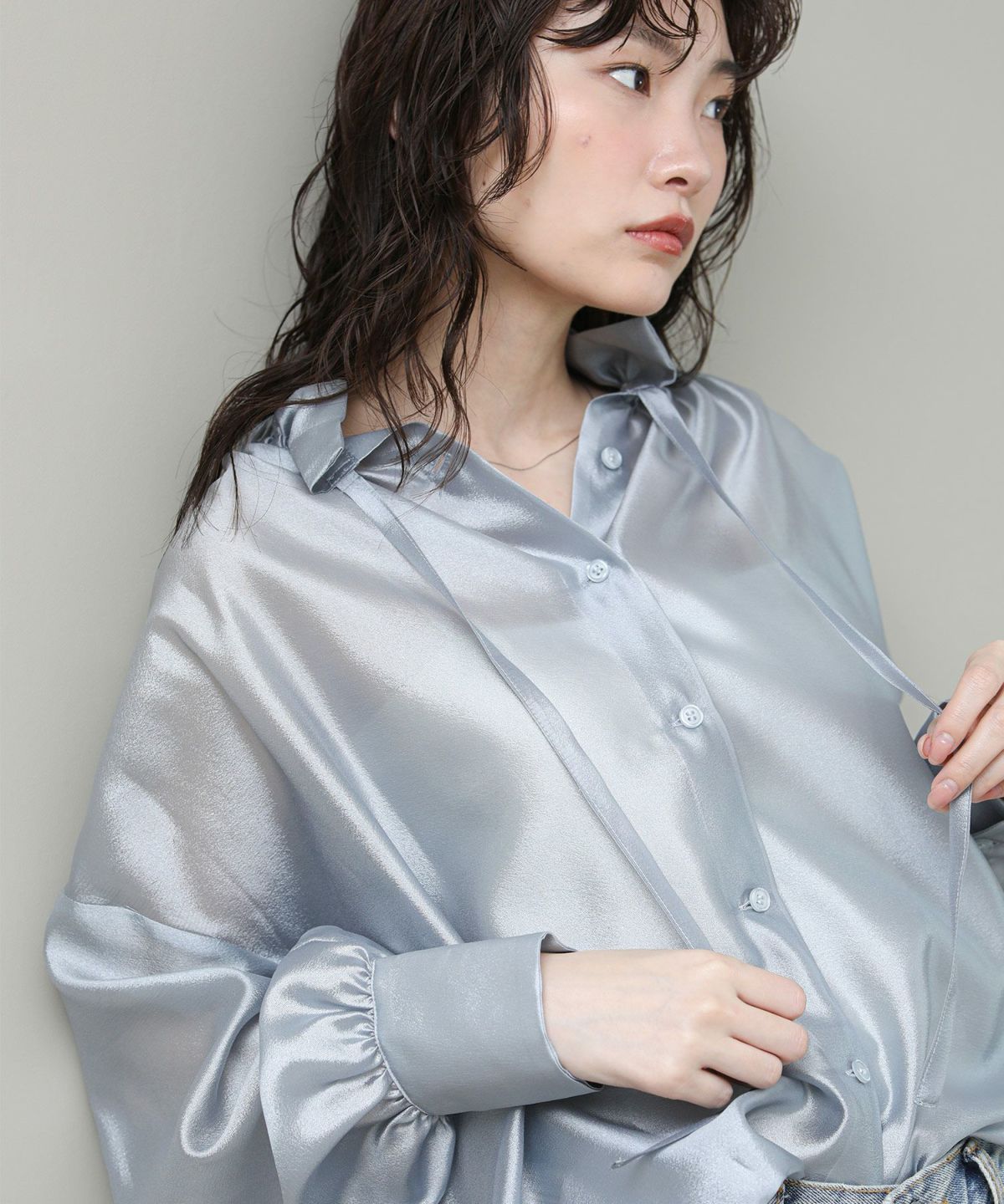 LUキュプラノースリブラウス