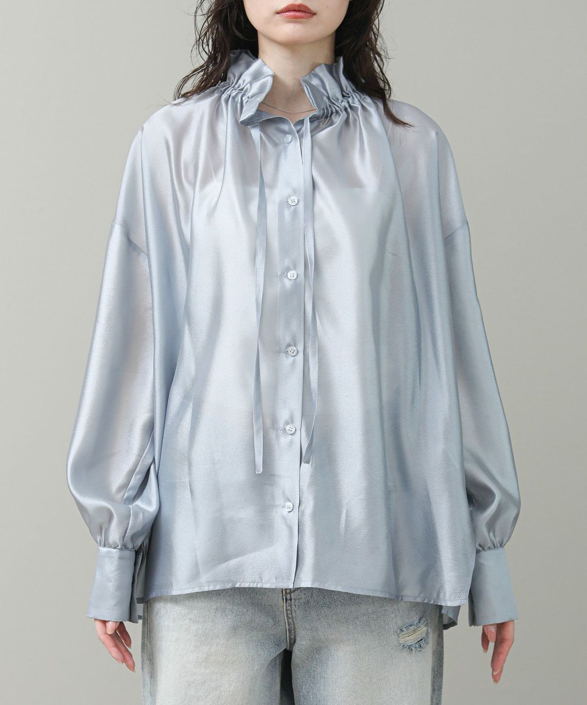 スタンドフリルブラウス