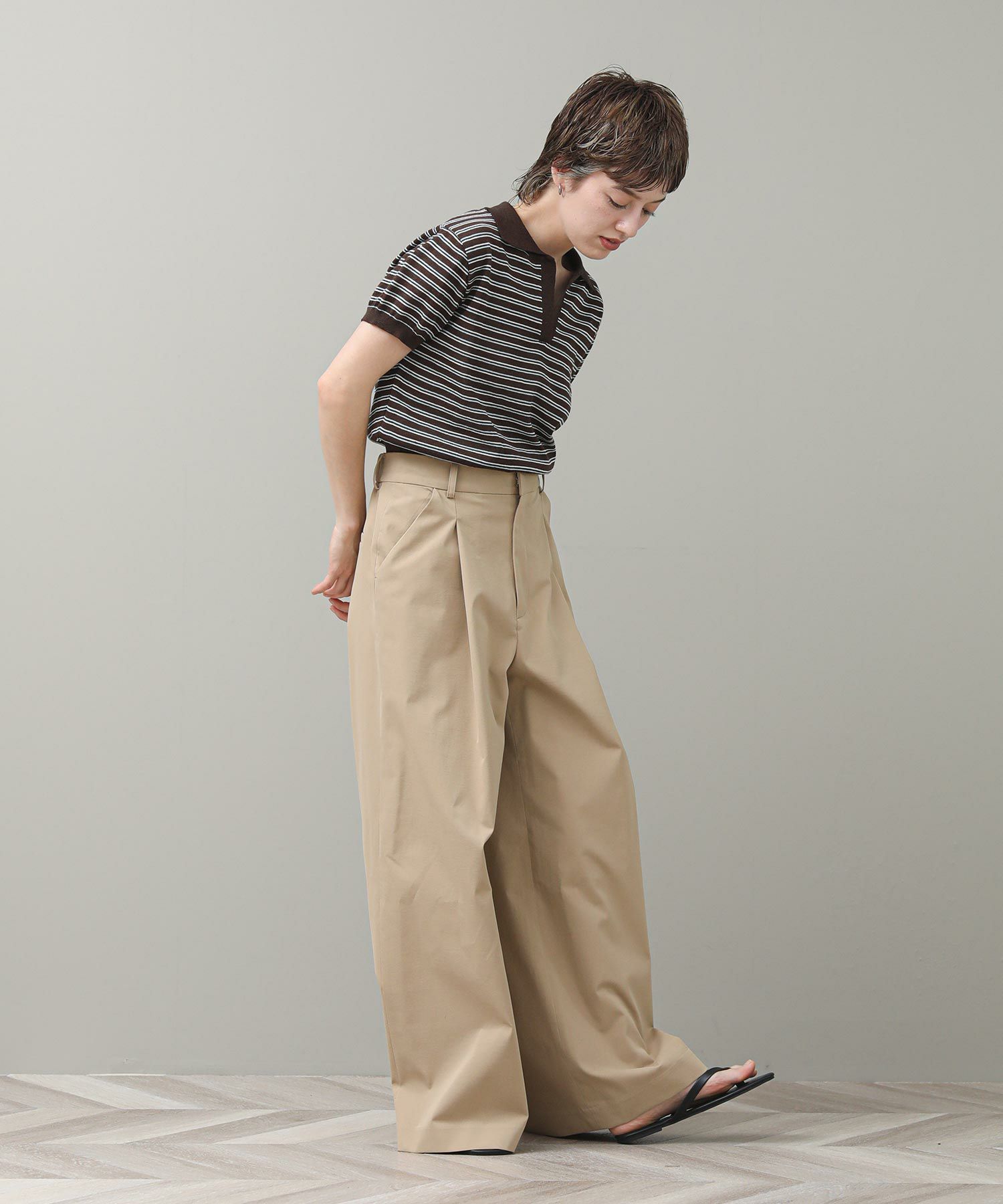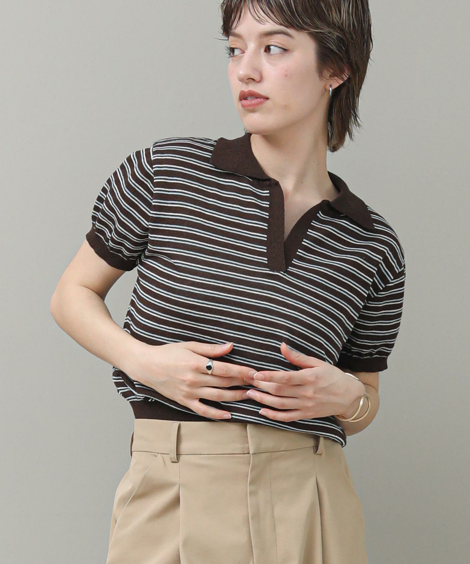 ポロカラーとコンパクトなシルエットがトレンド感のある1着です。軽やかな素材感で盛夏でもストレスなく着ていただけます。ワイドパンツやデニムでメンズライクな着こなしもおすすめ。