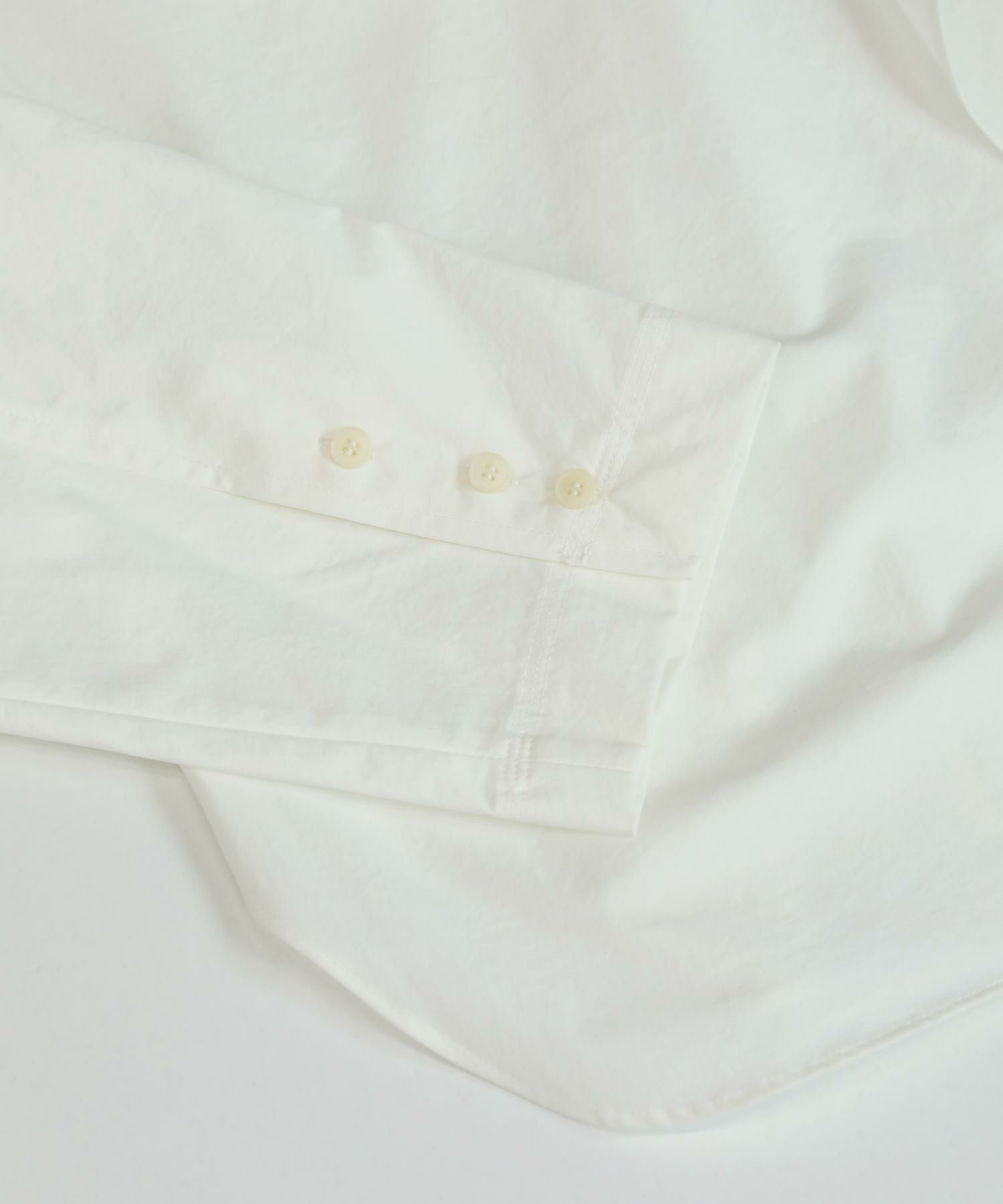 シワになりづらい、マットな風合いが魅力のシャツ生地を使用したブラウス。