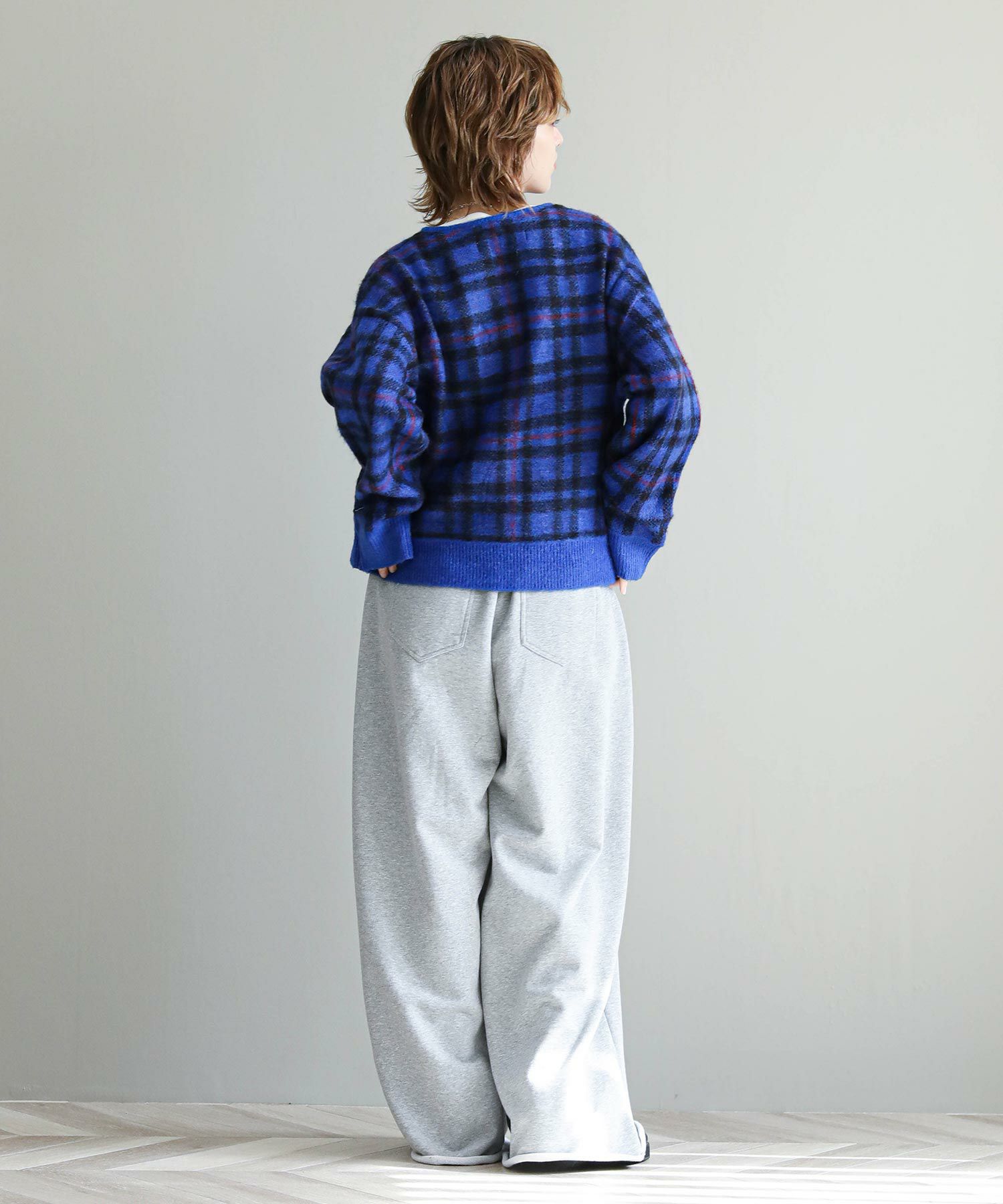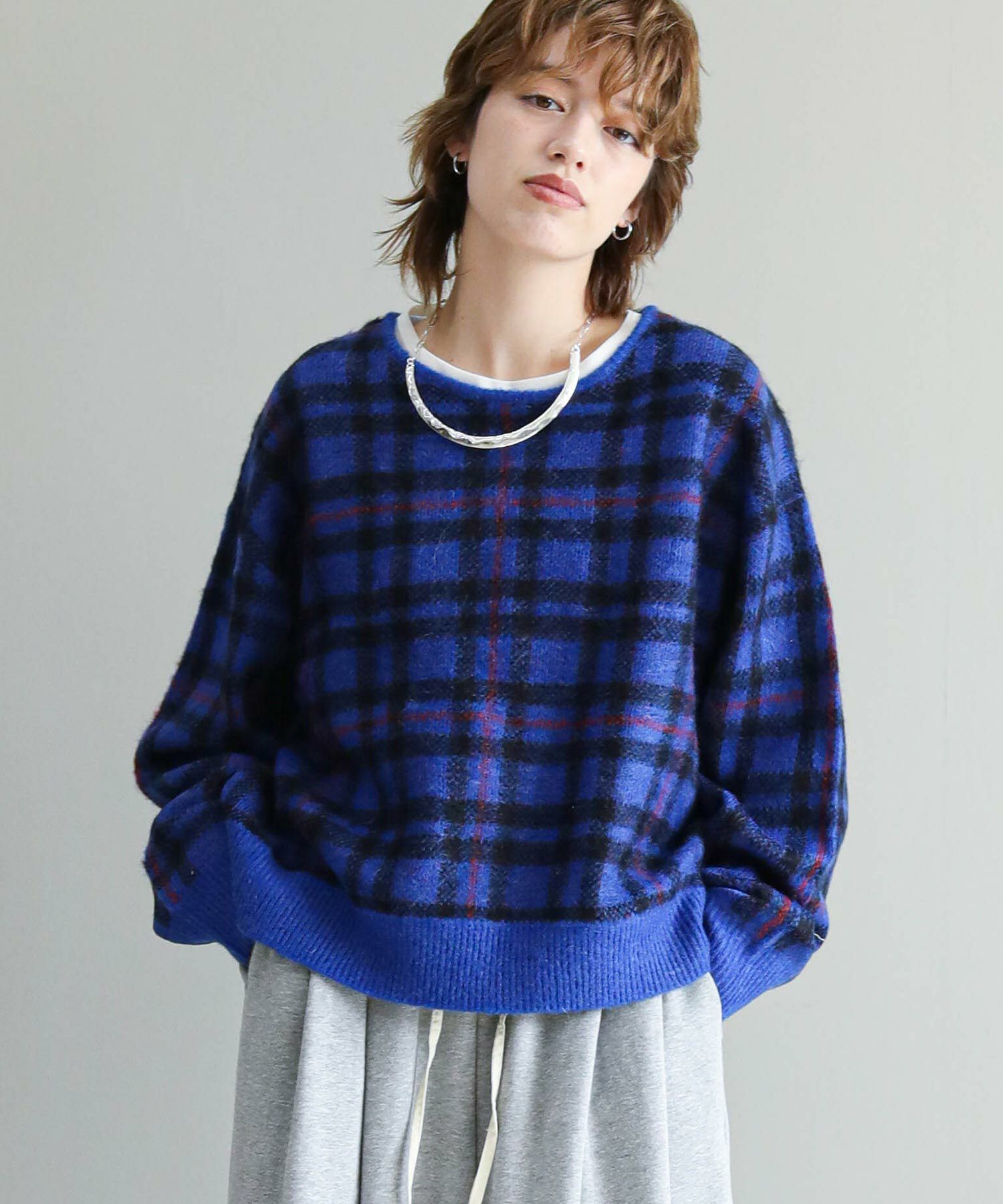 モヘアとウールの上質な光沢と柔らかな風合いが魅力。7ゲージの心地よい肉厚感とダブルジャガードによる表情豊かなチェック柄。また、手洗いも可能でデザイン性と機能性を両立した他にないアイテムです。スラックスやレザーボトムなどと合わせるとトレンドライクな着こなしに。