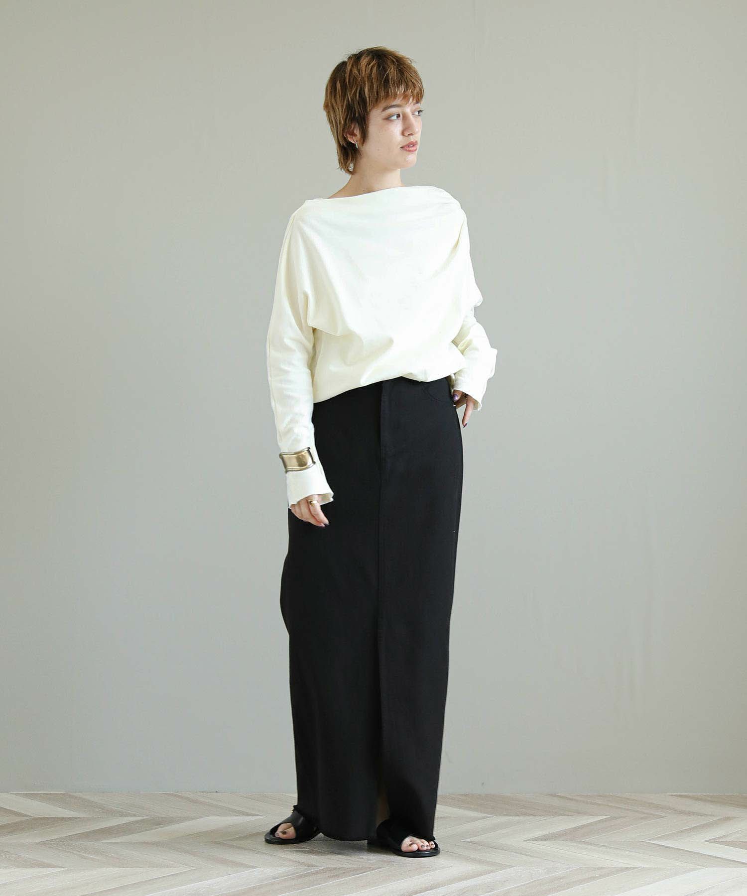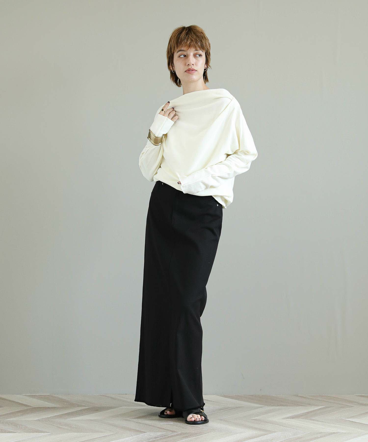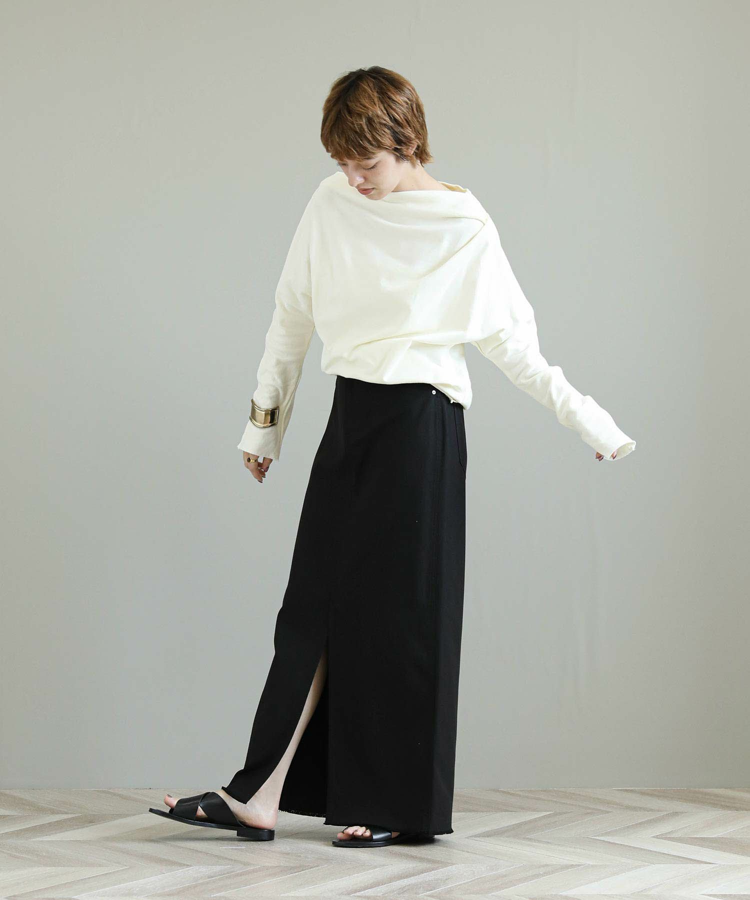 裾や袖をカットオフにしている事でロングスリーブながら軽やかな印象。