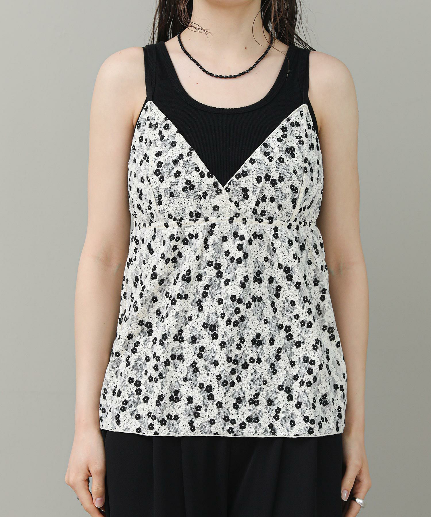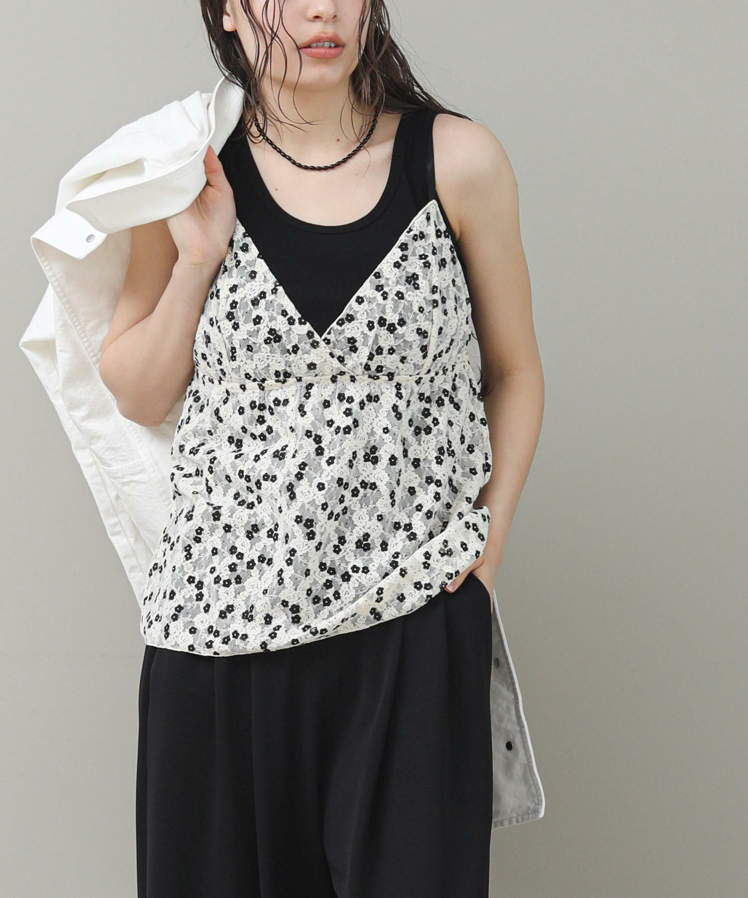 トレンドのレースもprovokeらしい個性がプラされた1着です。ジャケットのインナーや、ニットやTシャツとレイヤードするのもおすすめ。寒い時期から春の気分を楽しめるアイテムです。