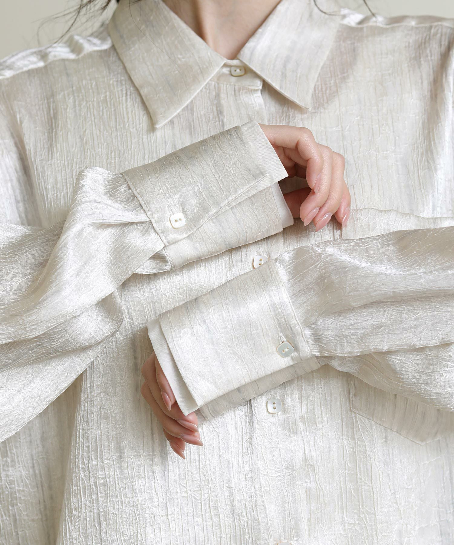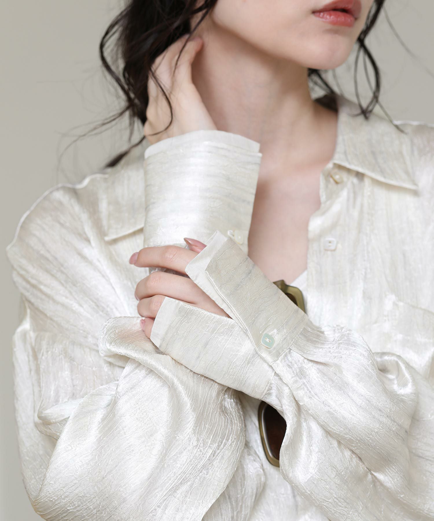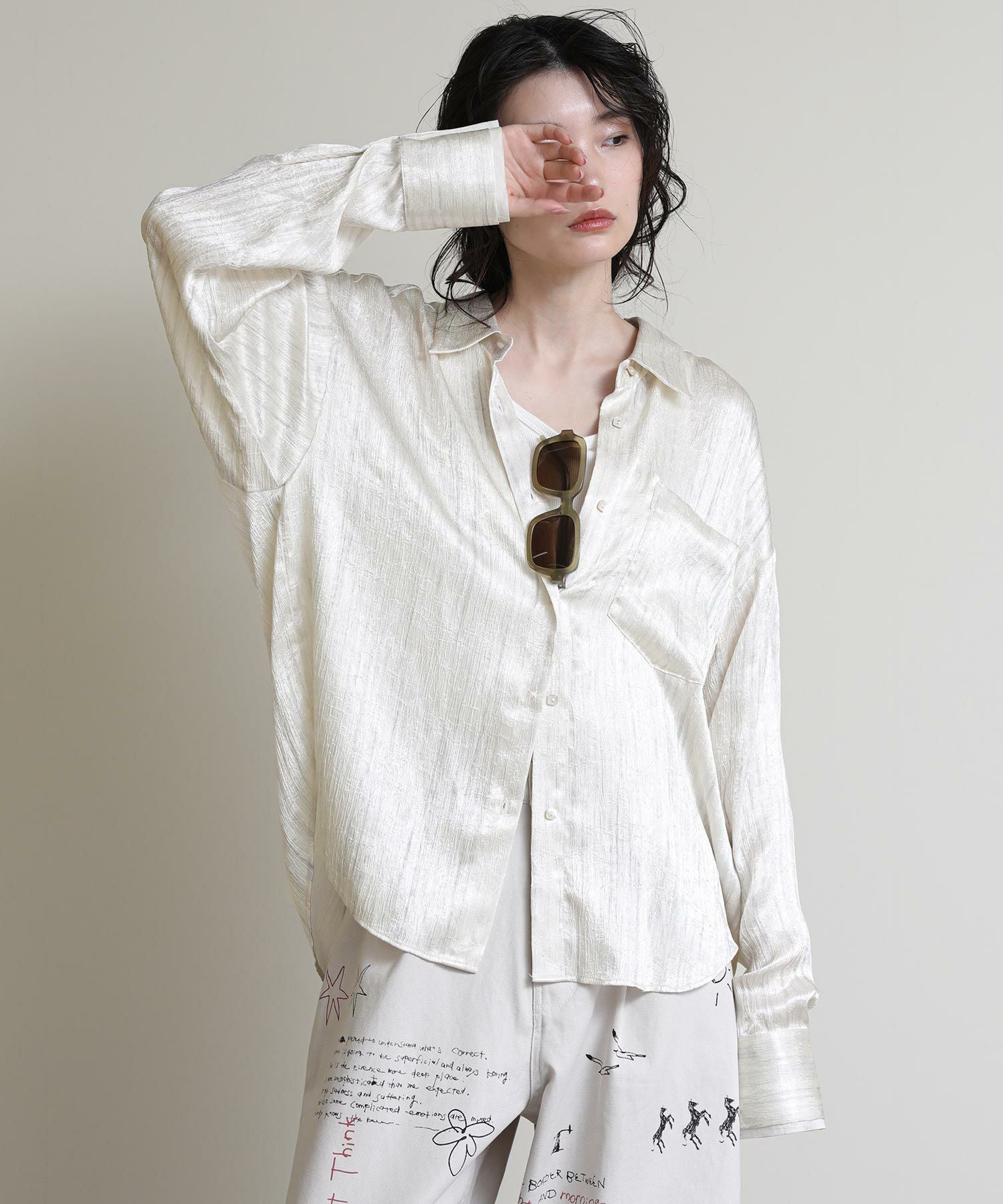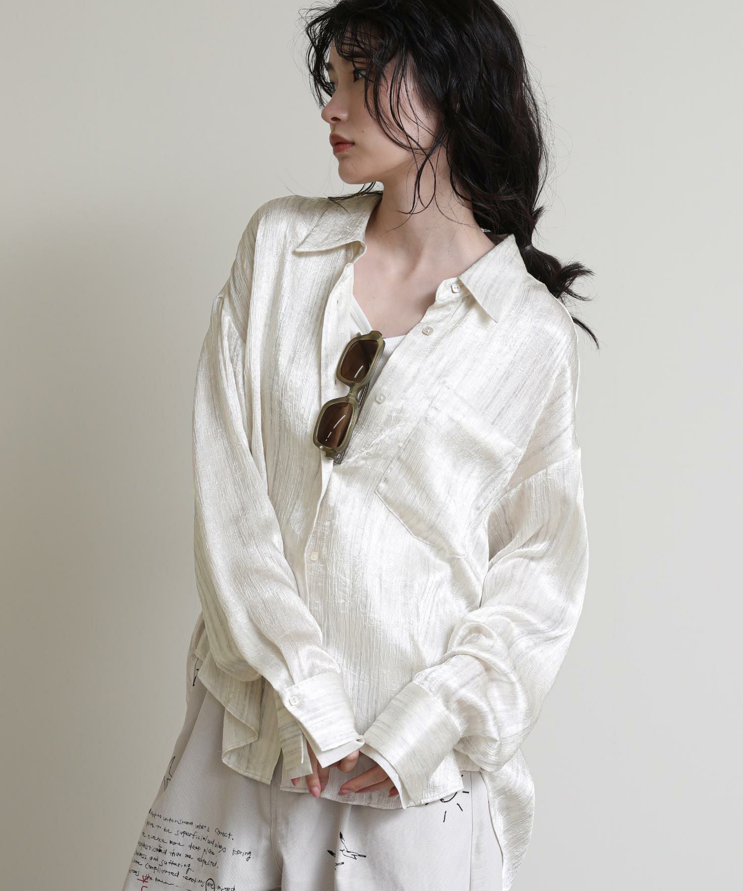 自然なシワ加工を施したワッシャーサテンシャツ。