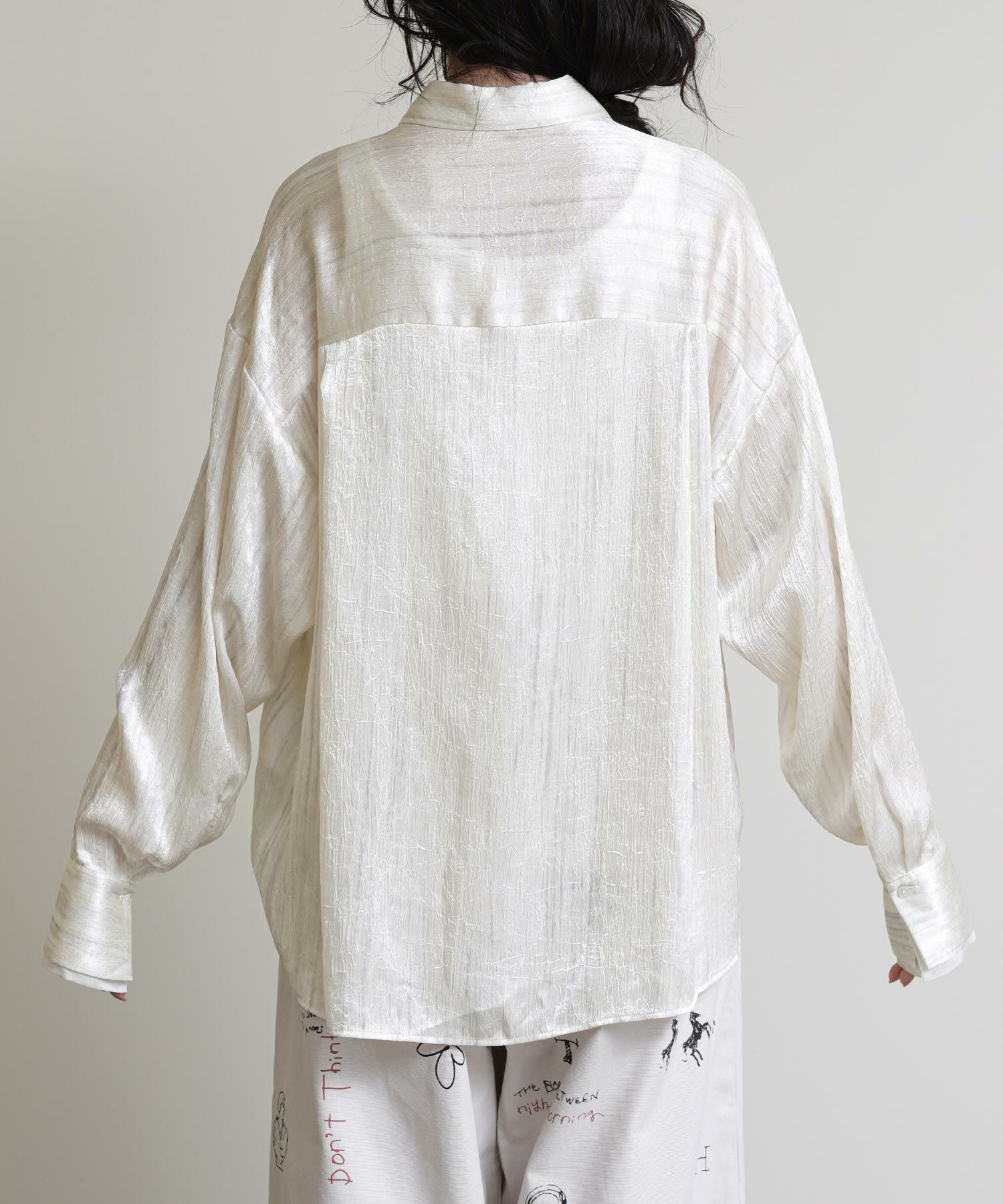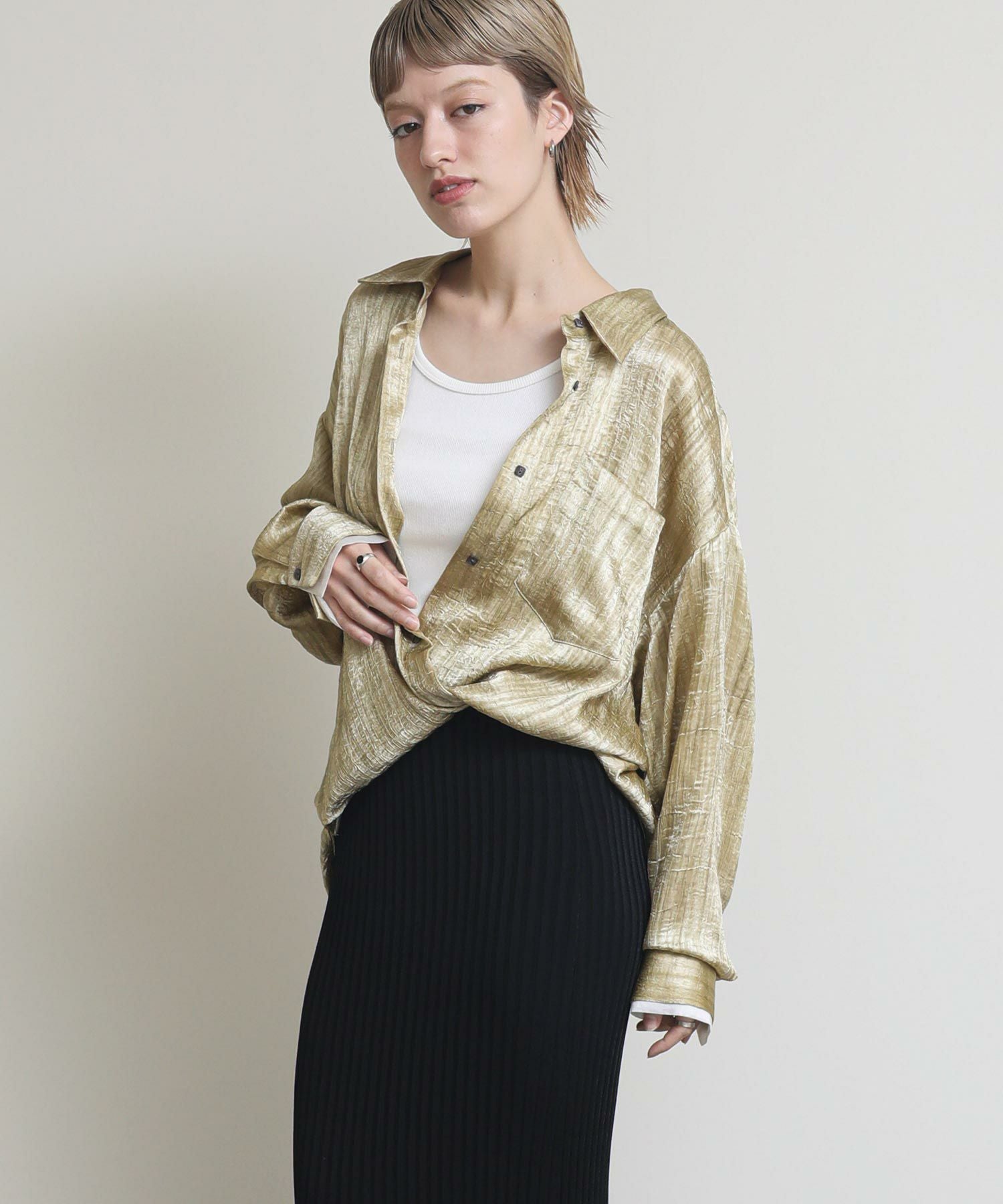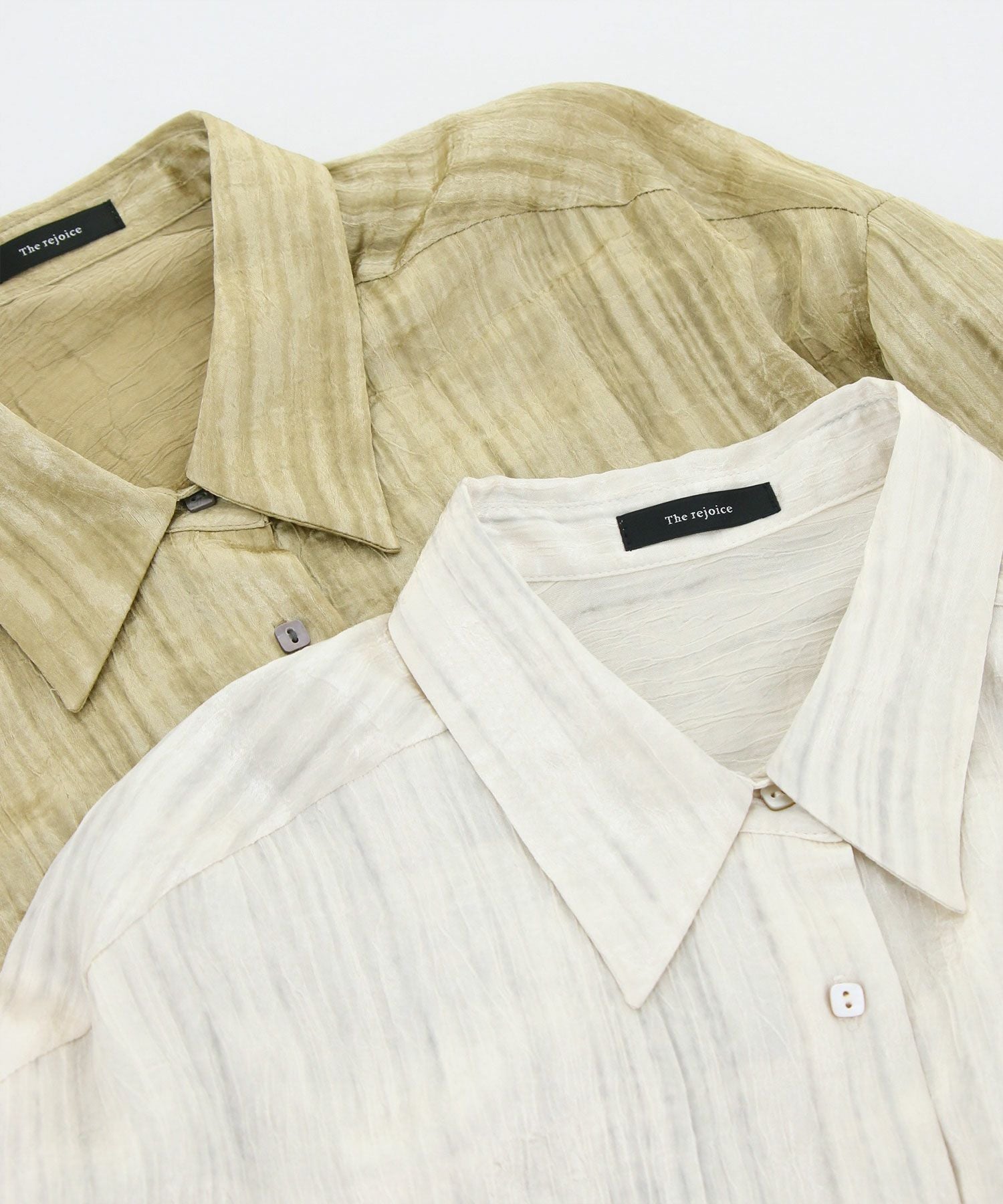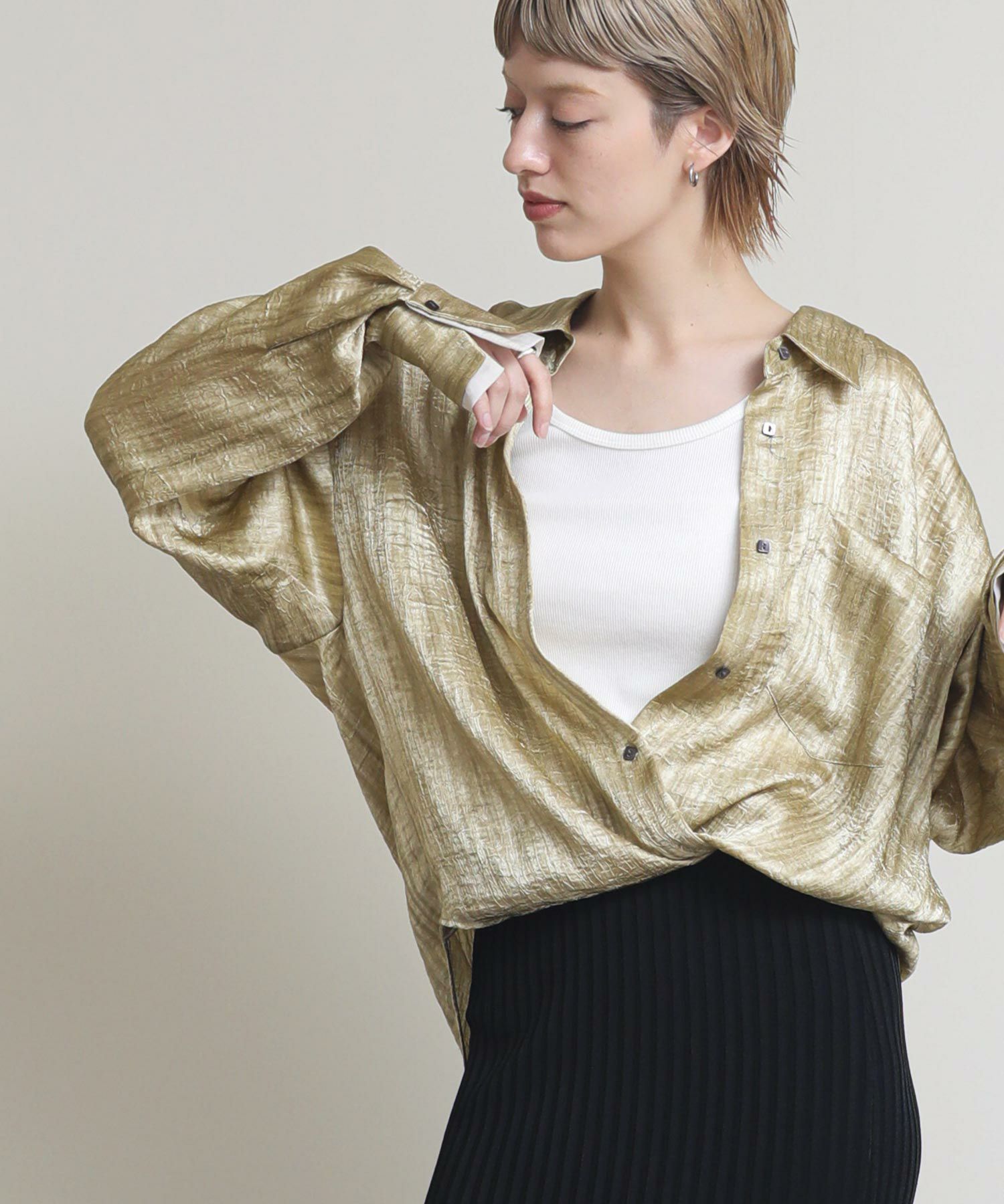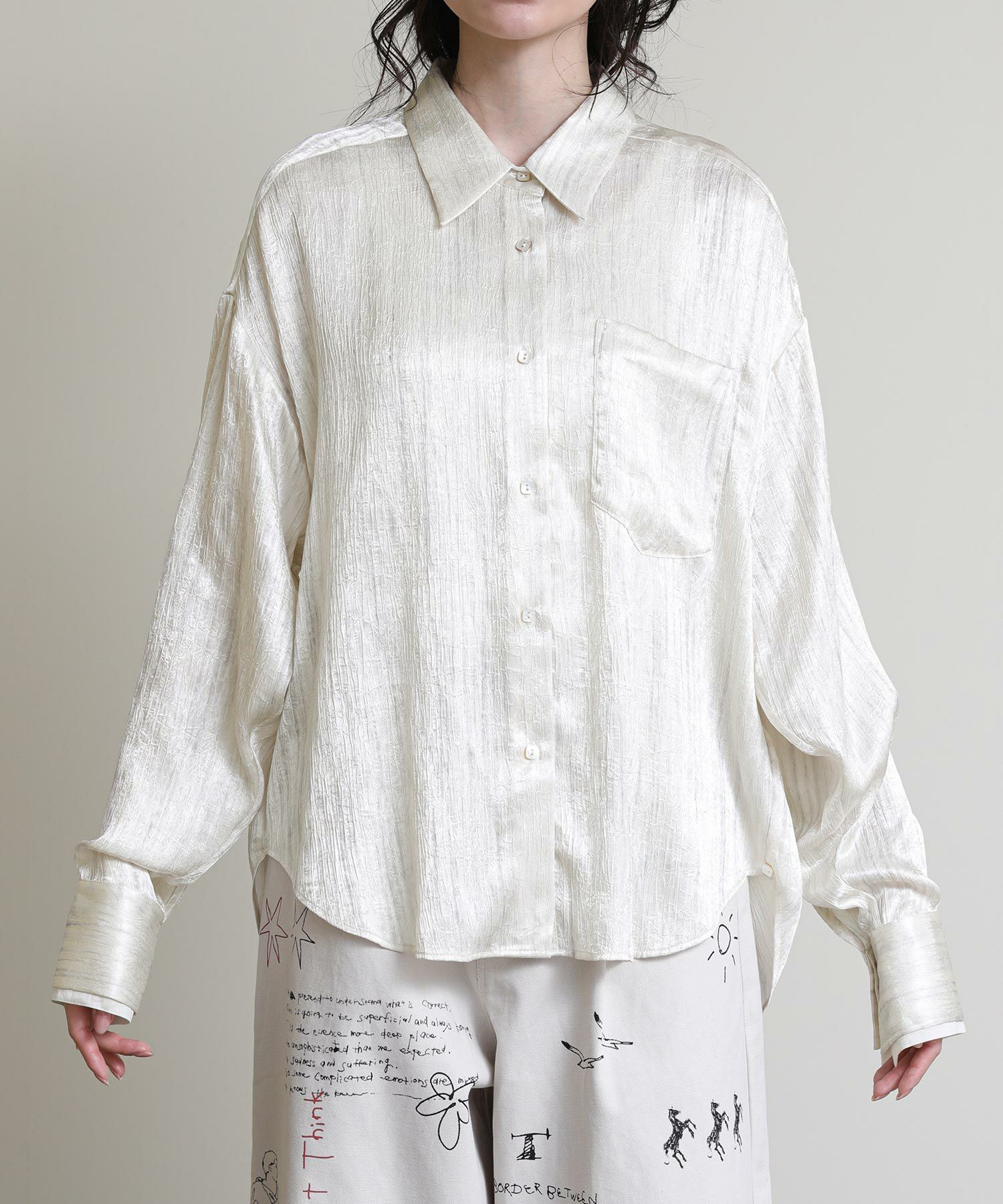 自然なシワ加工を施したワッシャーサテンシャツ。