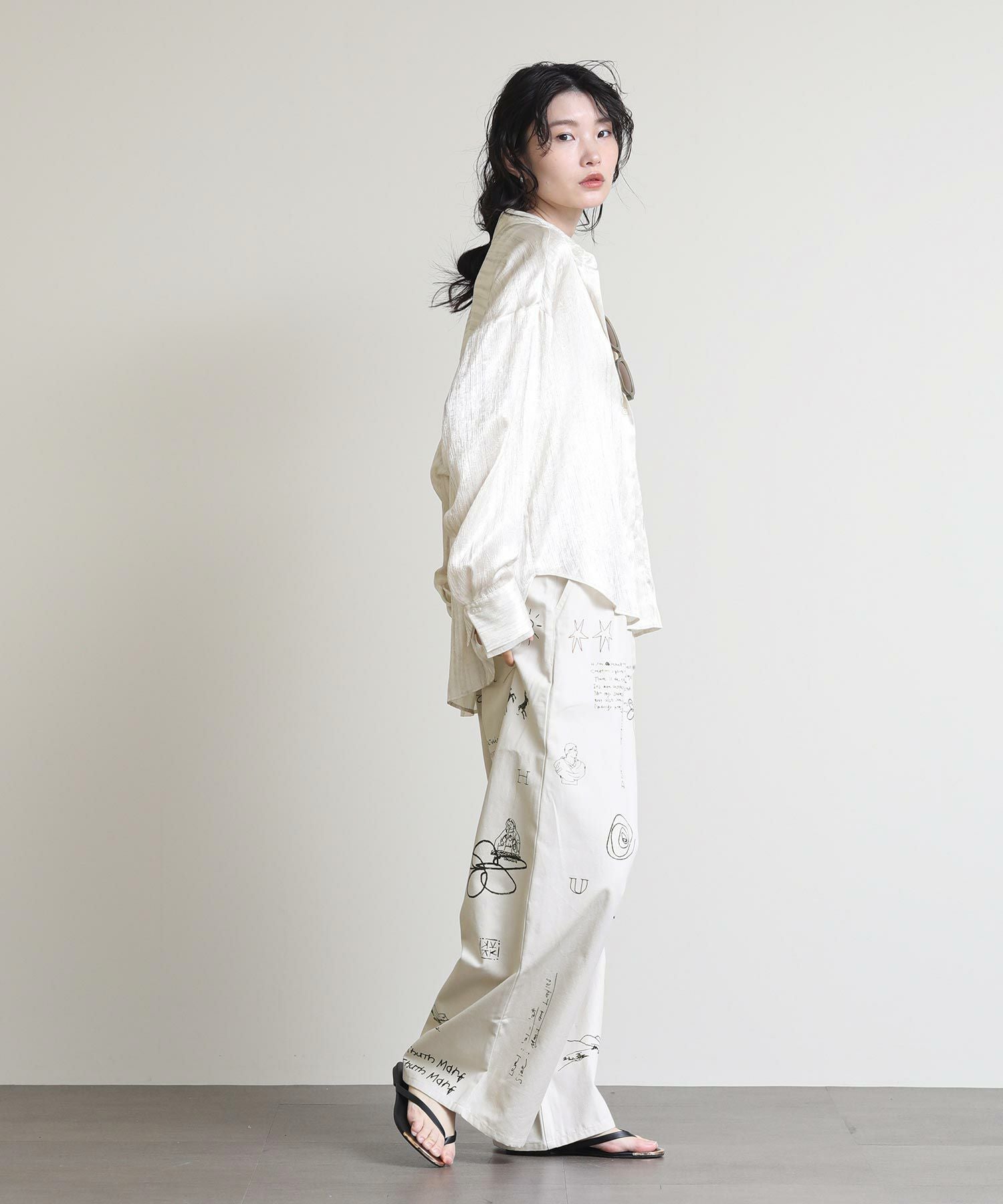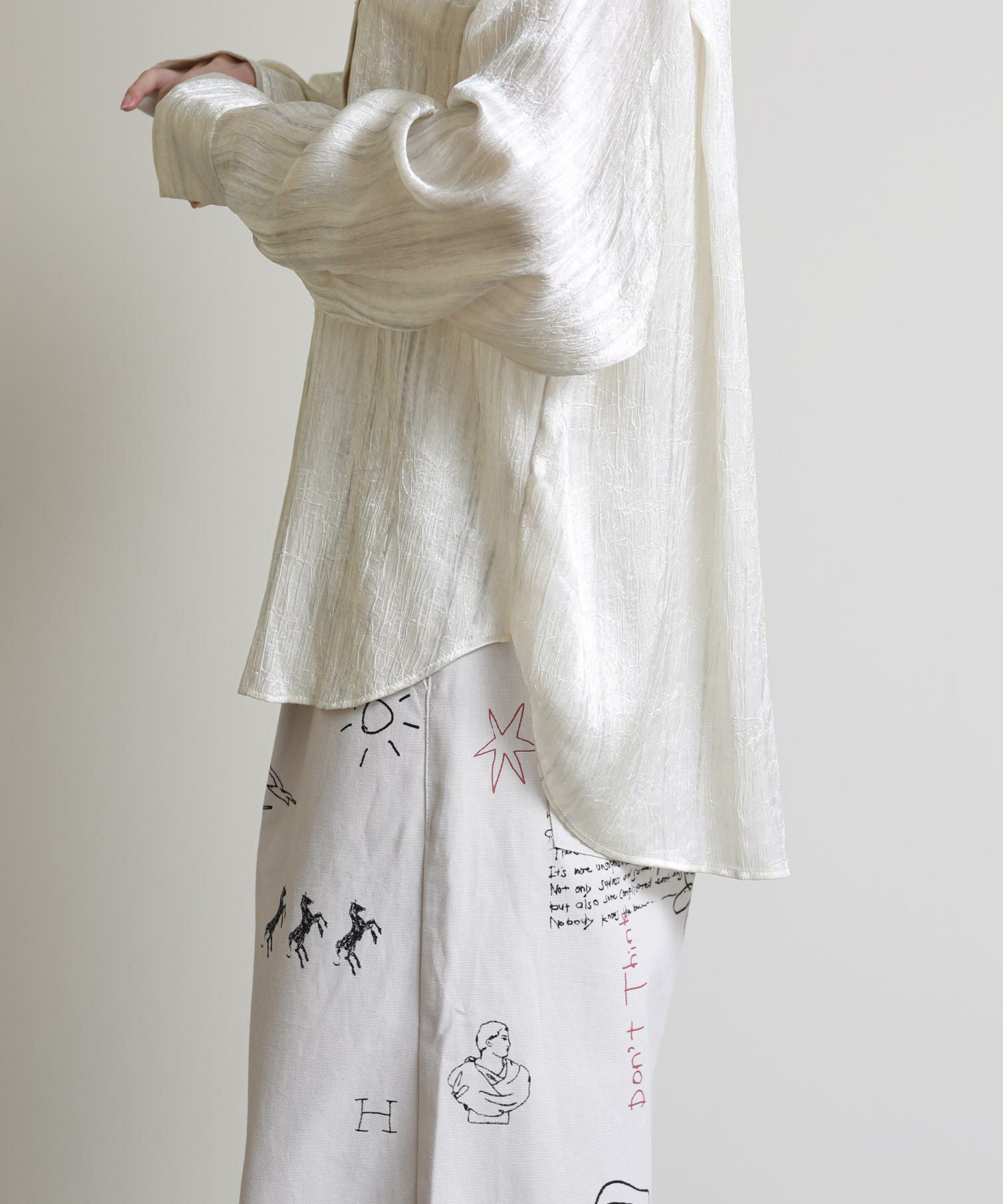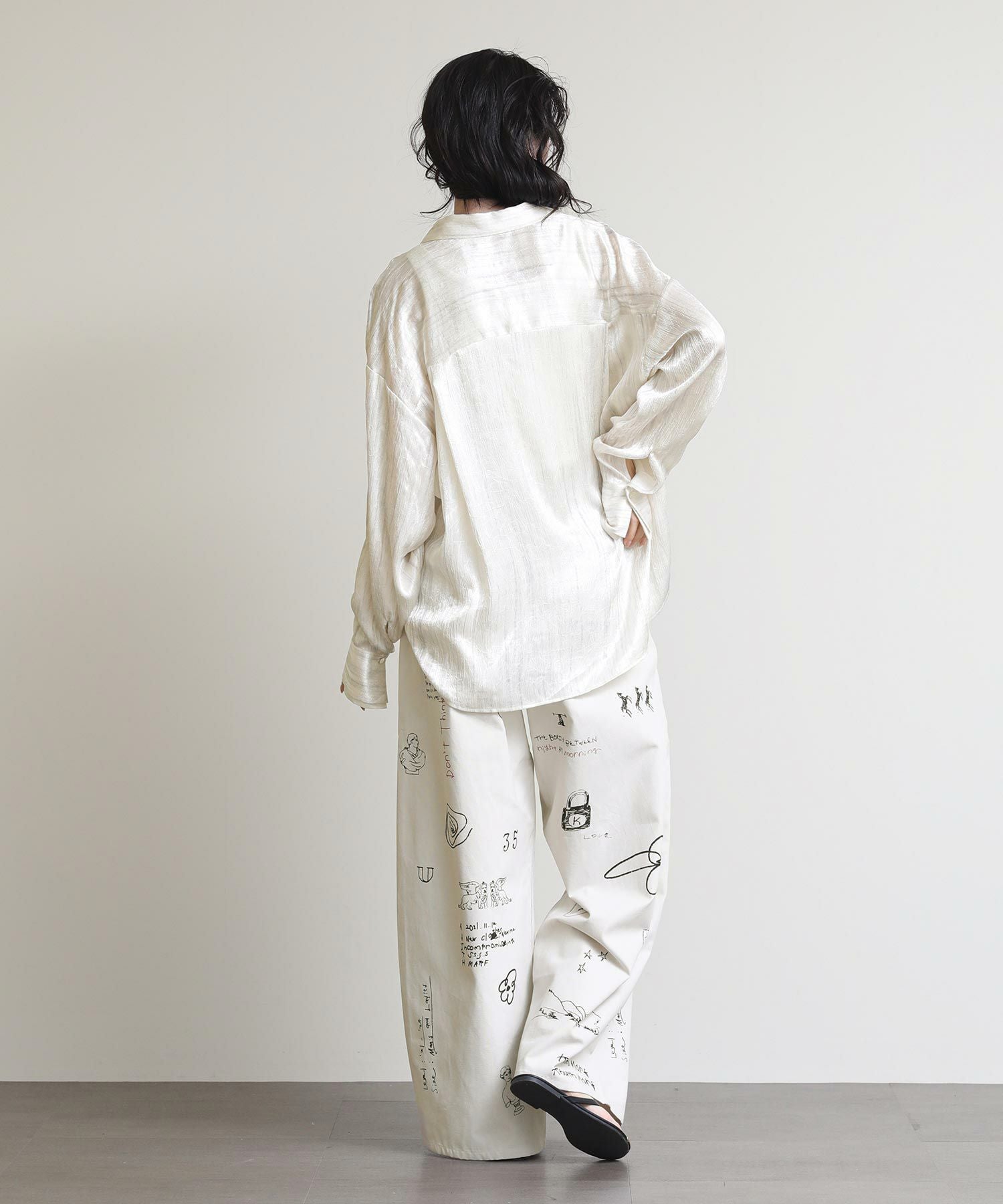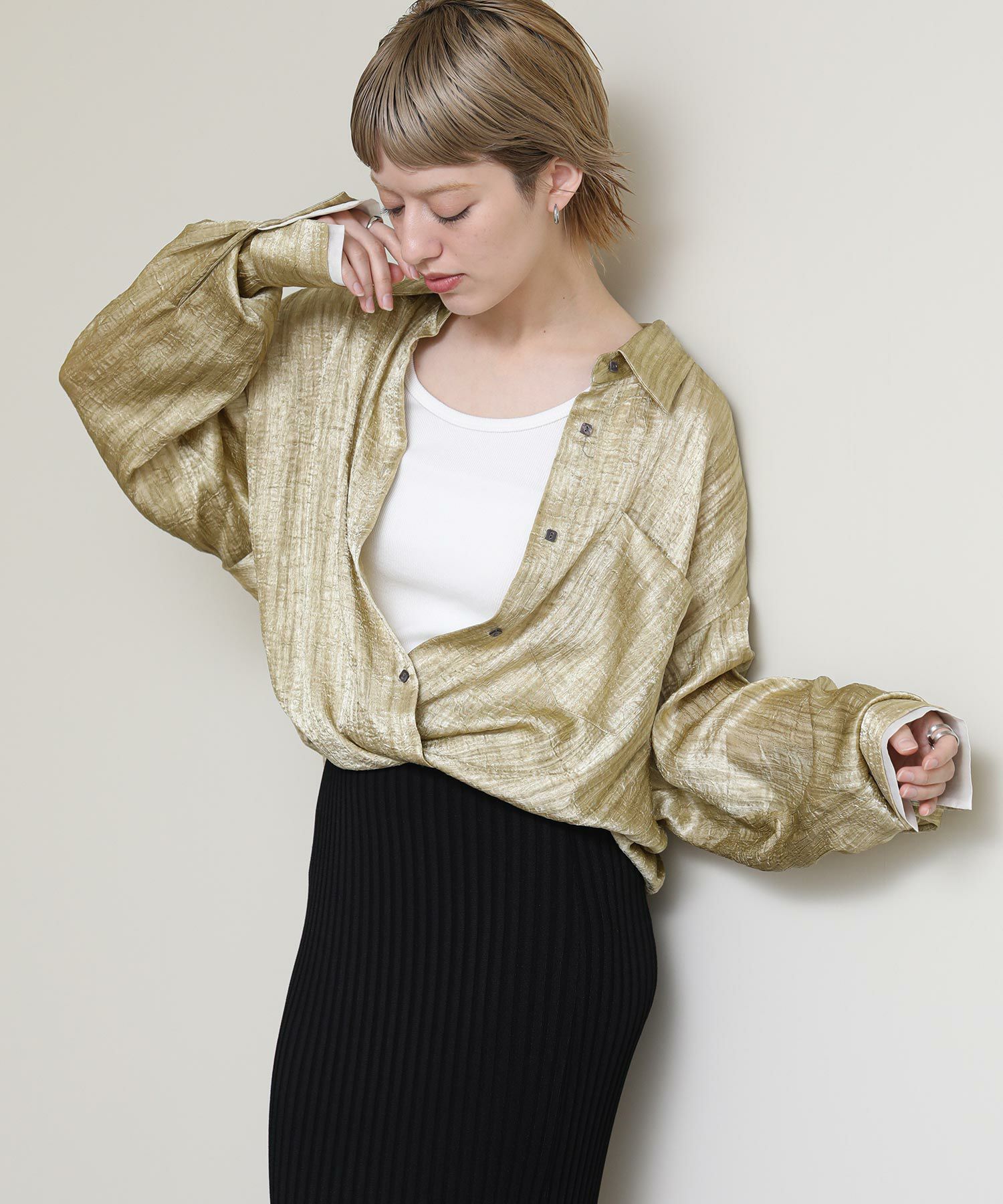自然なシワ加工を施したワッシャーサテンシャツ。