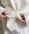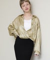 ムラ染めのようなカラーとツヤのある光沢感が、一枚で大人ムードのあるコーディネートに。スクエアのシェルボタンが可愛く、カシュクールにもなる2WAY仕様。2枚仕立てのカフスでメリハリのあるシルエットになっています。