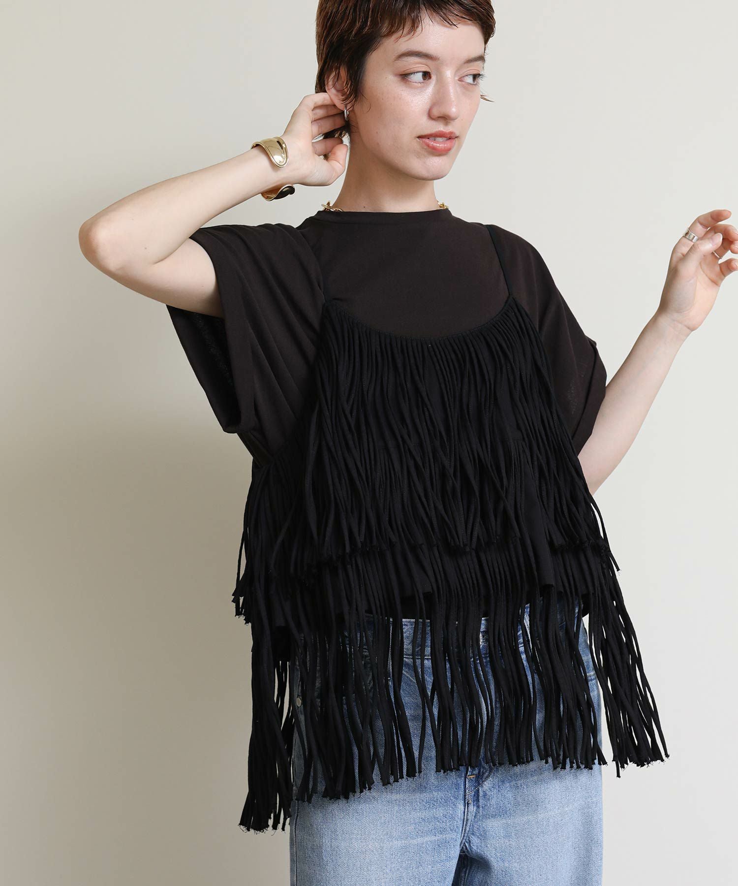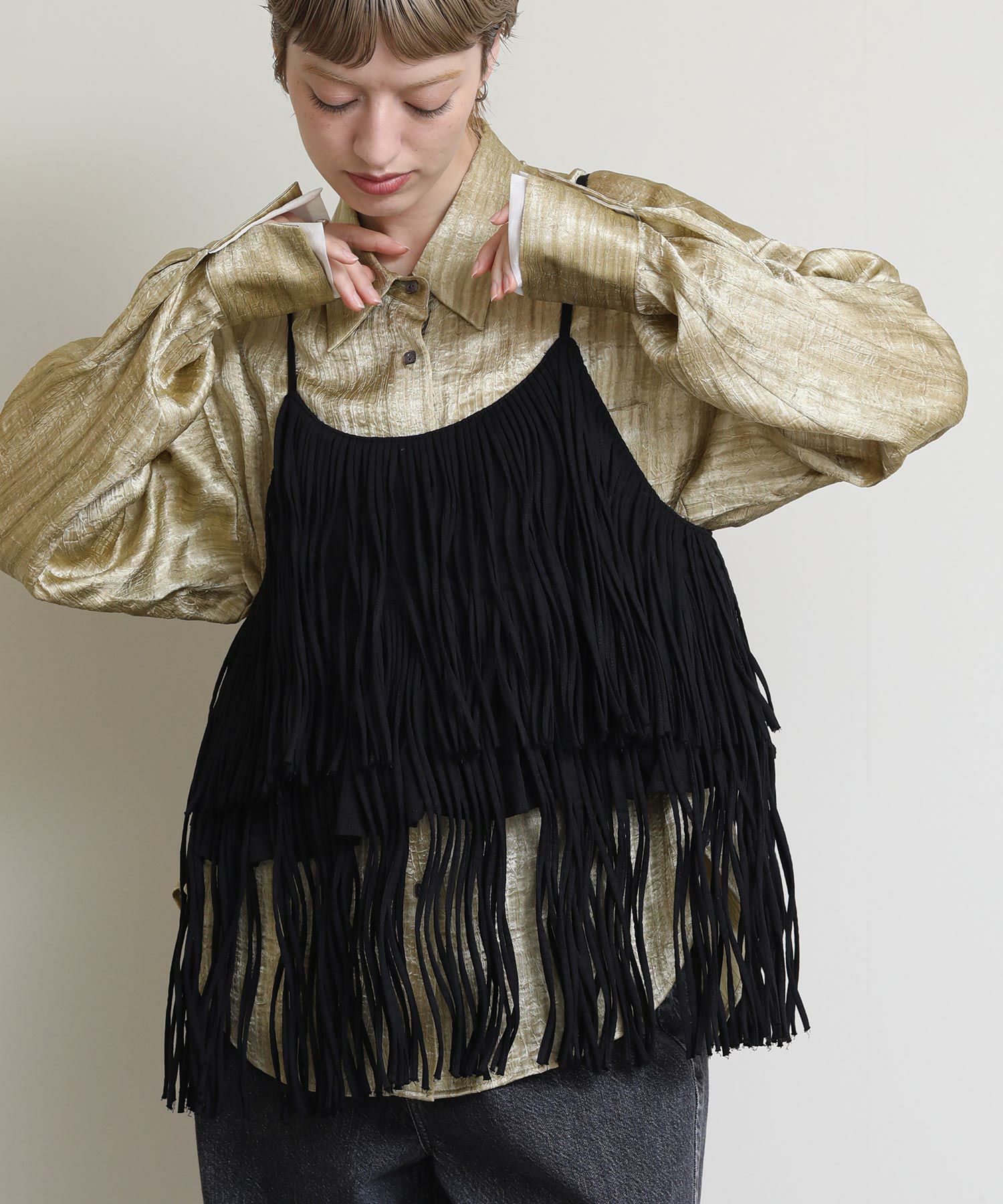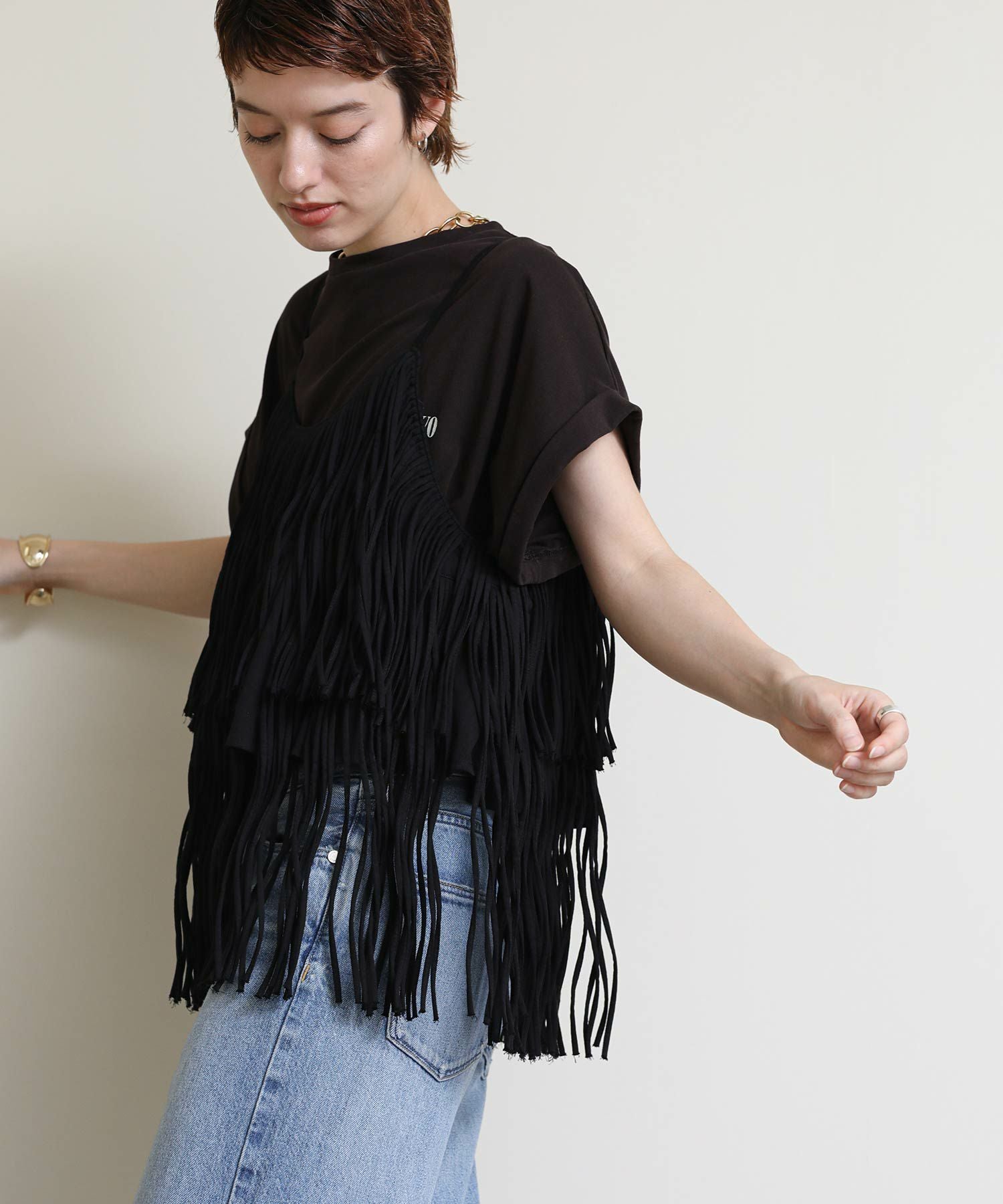 一枚でおしゃれになるフリンジキャミ。