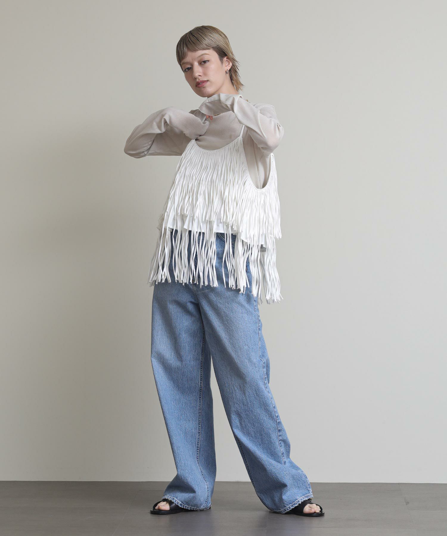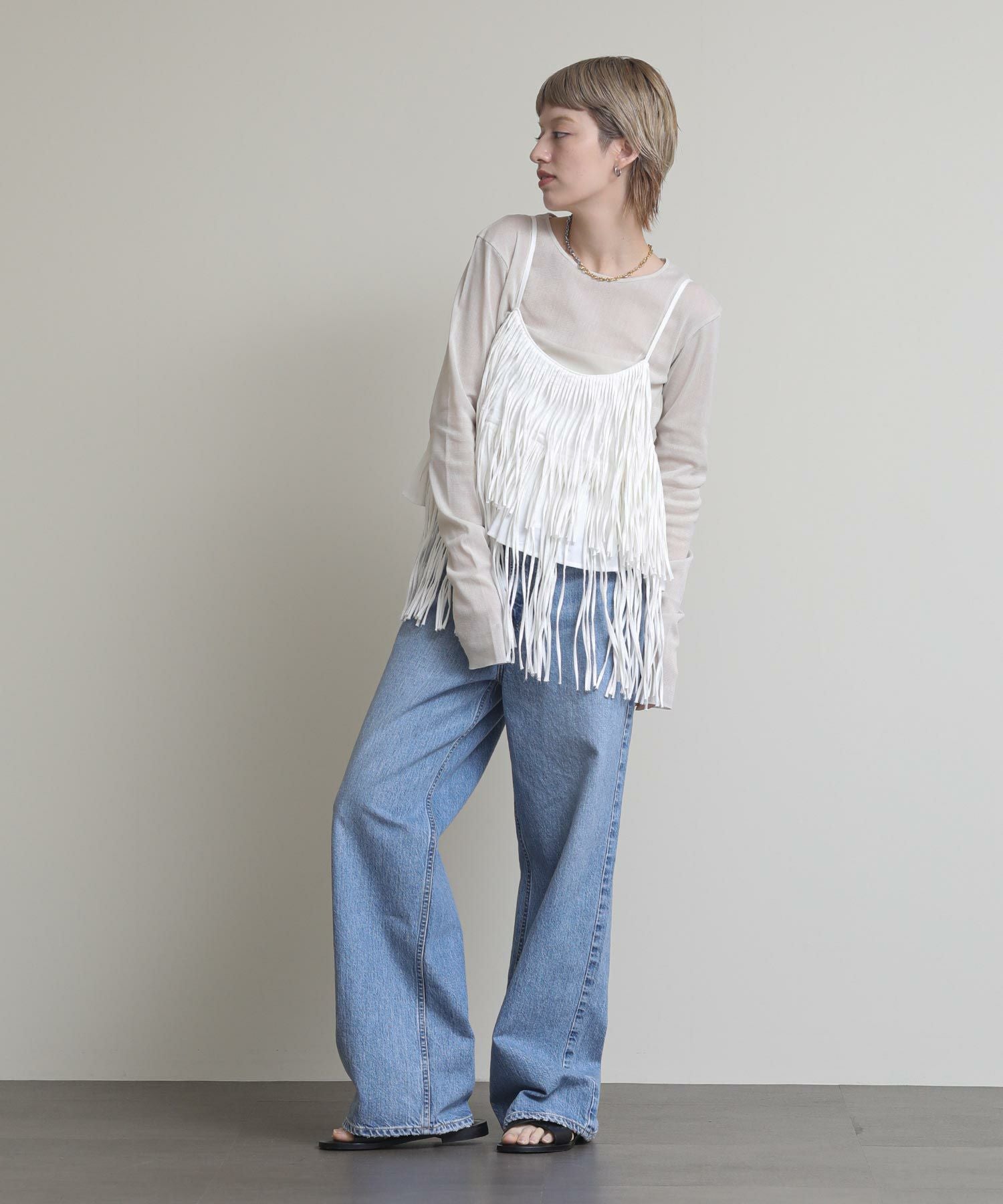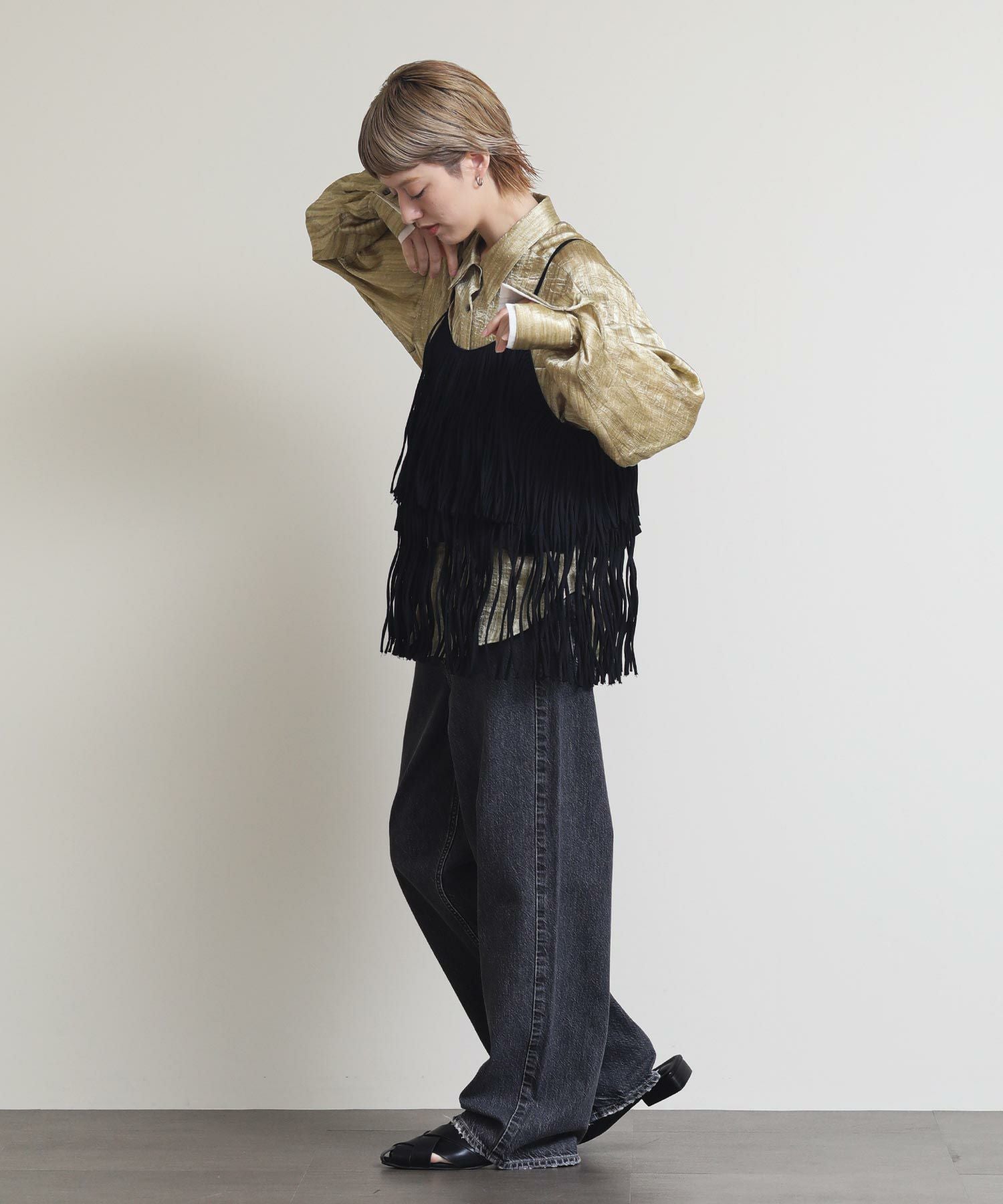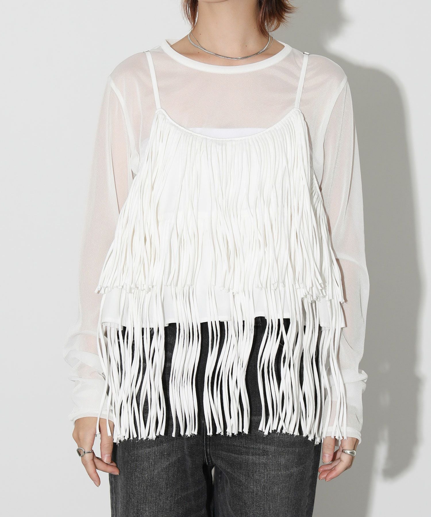 一枚でおしゃれになるフリンジキャミ。