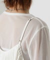 コットンの布から1本1本縫製をして紐を作り縫い付けていくアイテム。紐をジャスターで肩紐の長さ調節可能です。1枚で着たり、Tシャツなどとレイヤードしてもおしゃれなスタイリングに仕上がるアイテム。