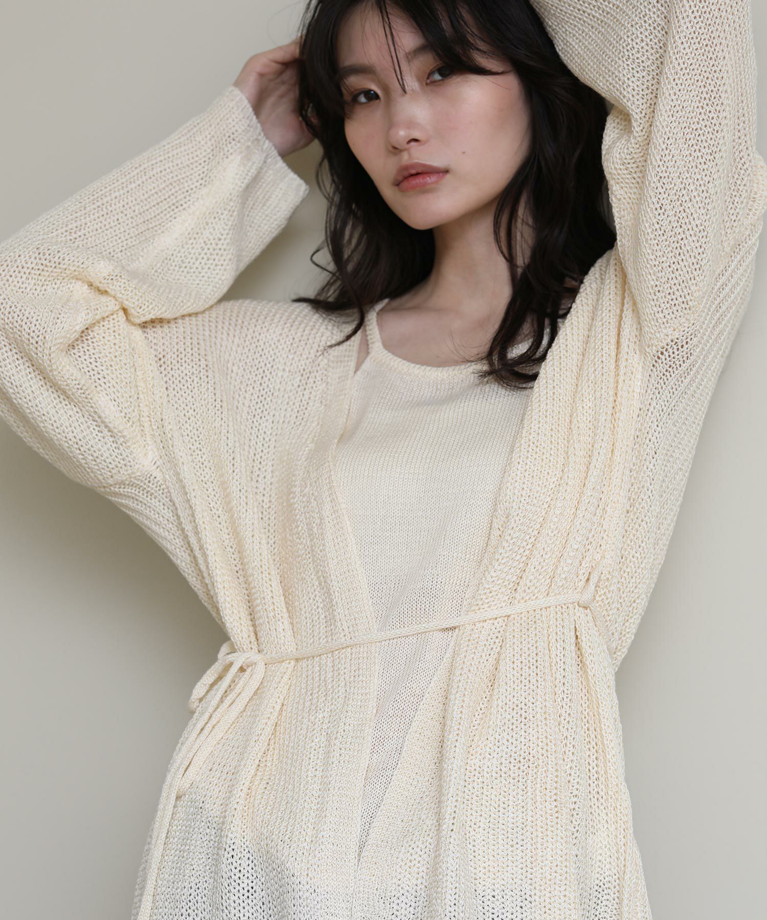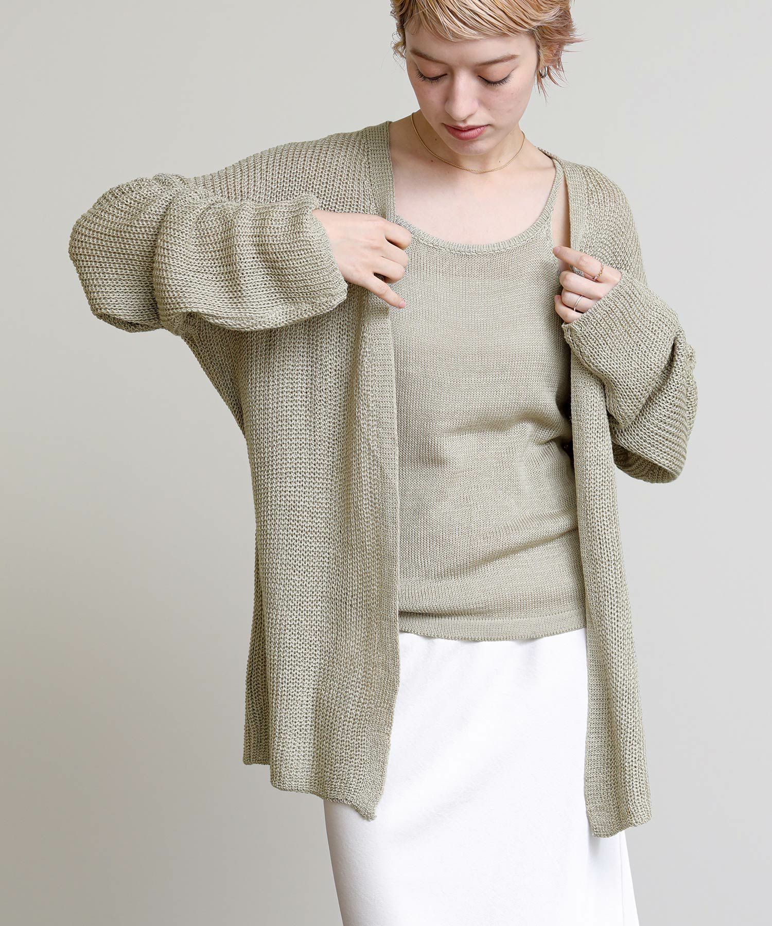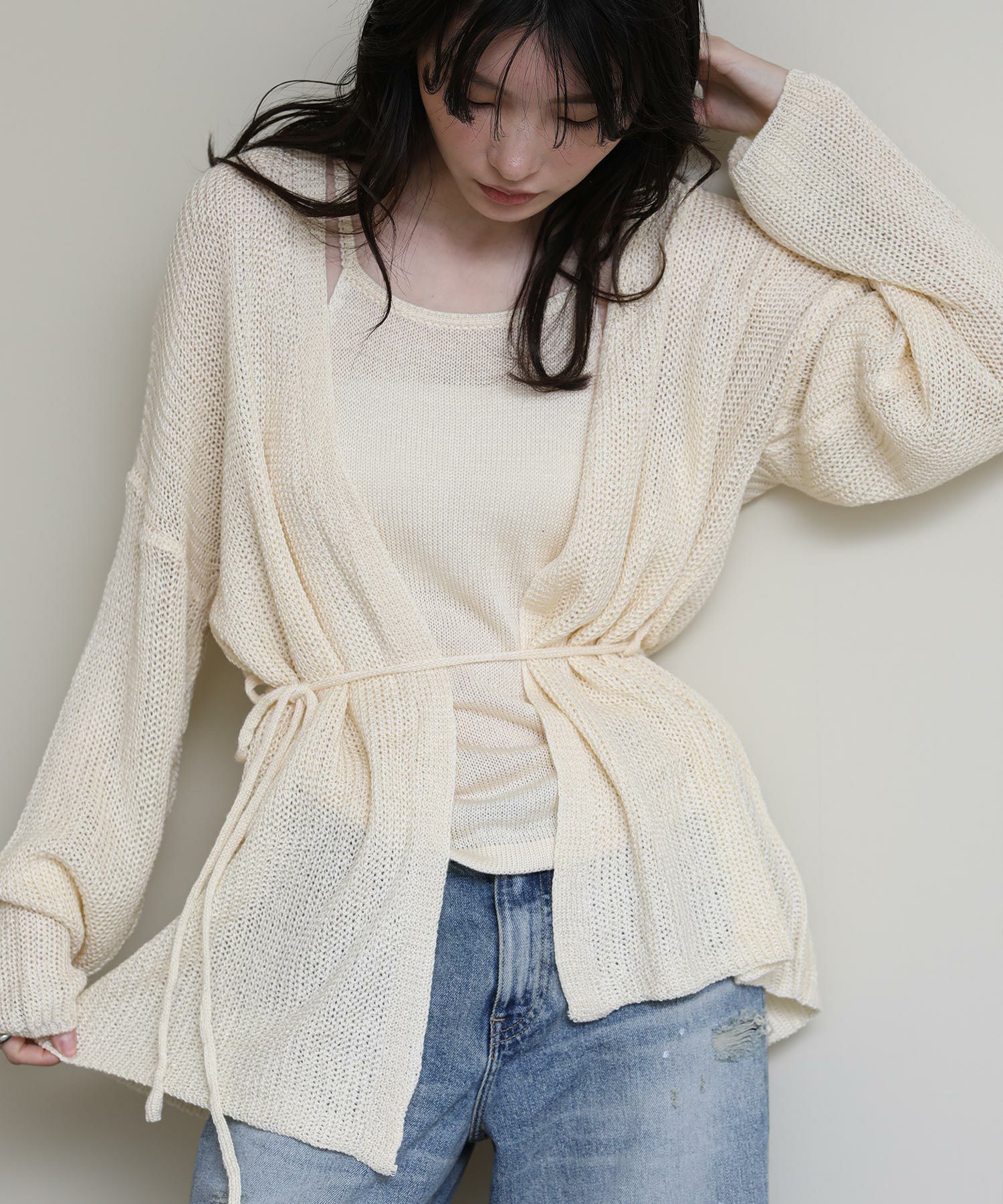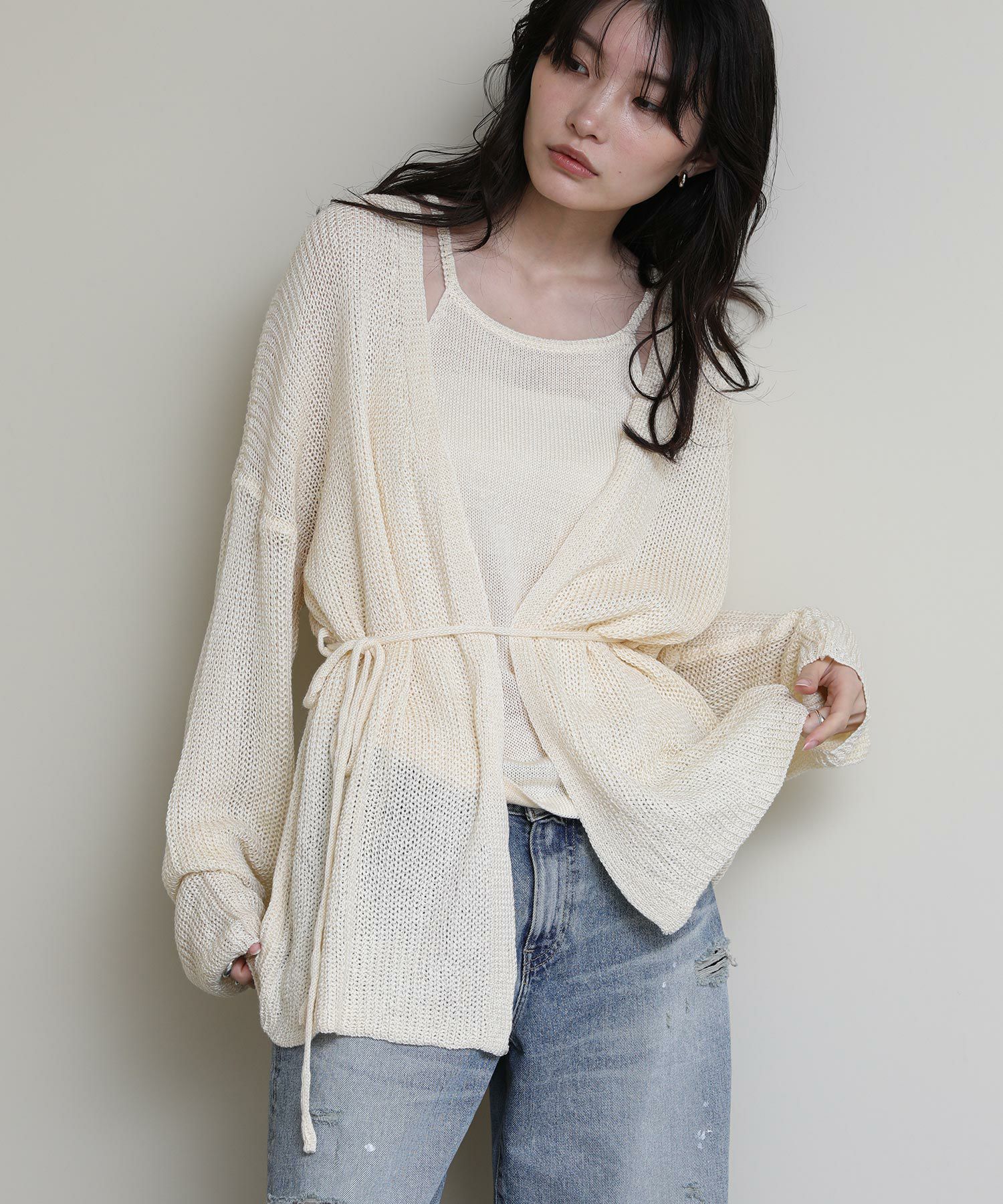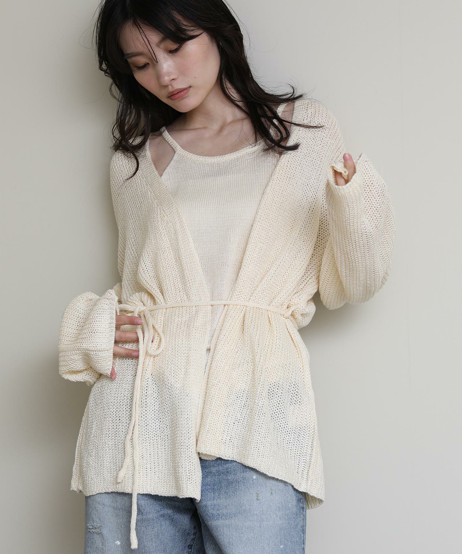 ニットのキャミソールとカーディガンがセットになったアイテム。