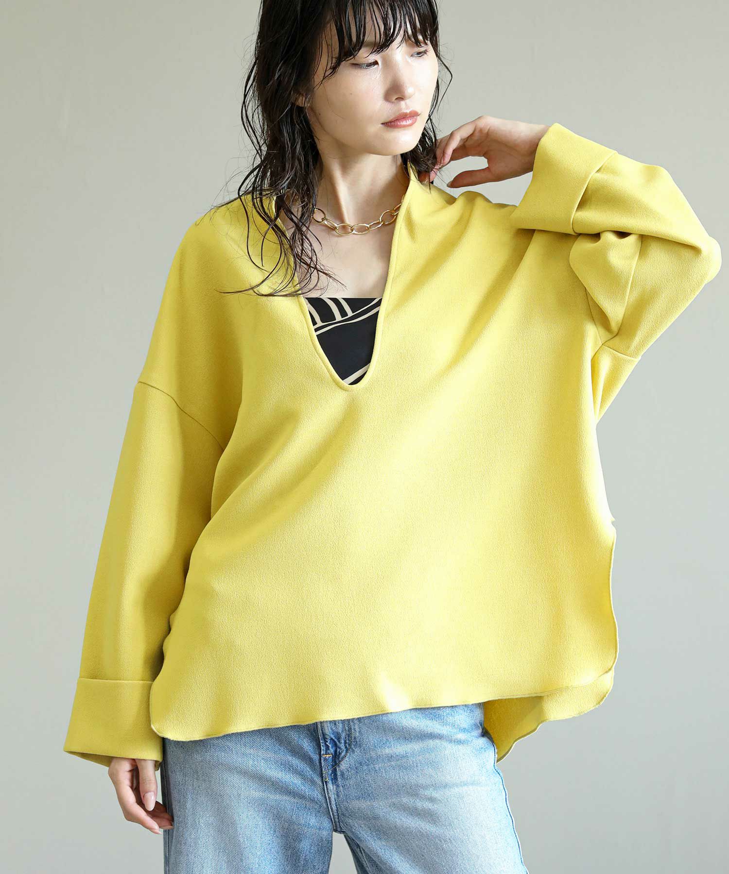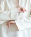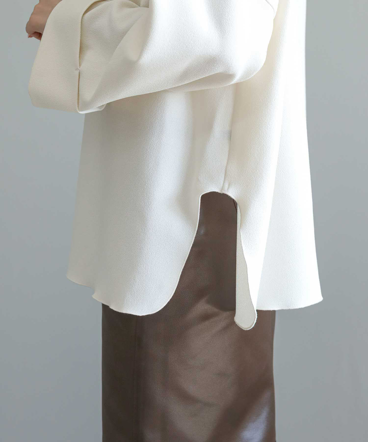 滑らかな落ち感のあるアムンゼン素材を使用したスリットブラウス。